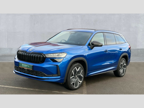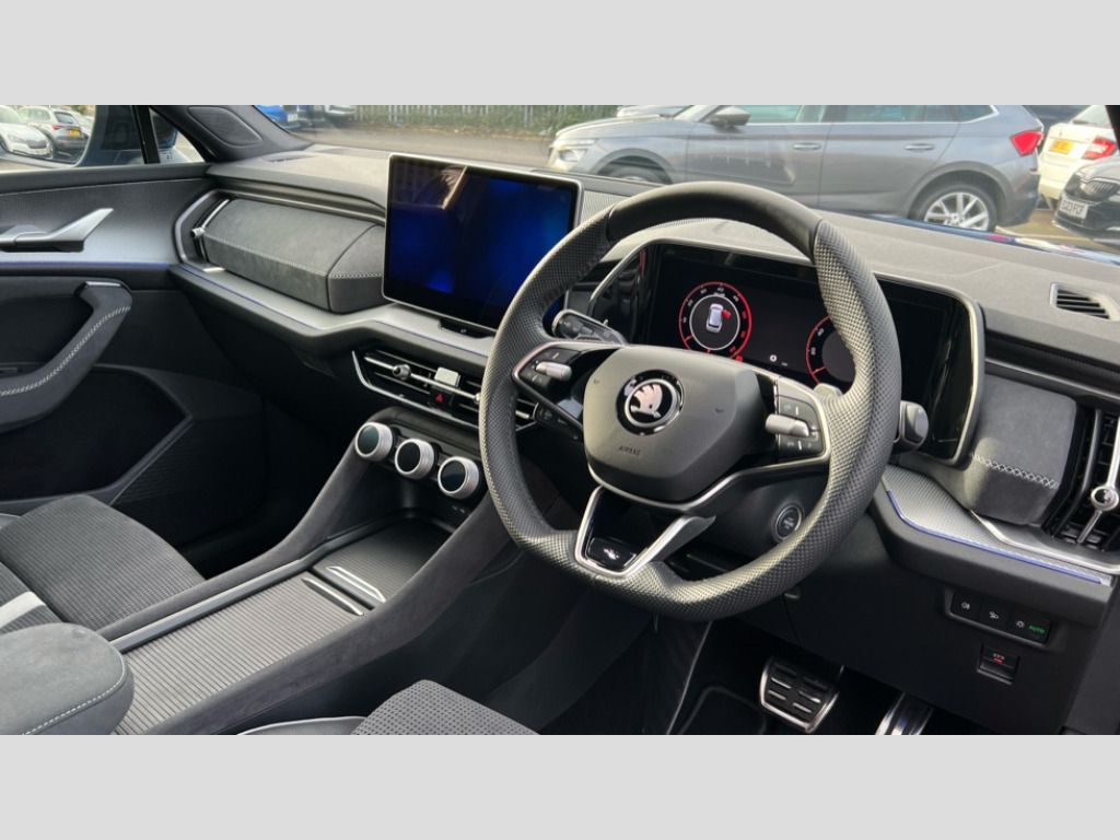 Skoda Kodiaq 2.0 TDI 193 SportLine 4X4 5dr DSG [7 Seat] 13" satellite navigation touchscreen display, Blind spot detection with door exit warning, Bluetooth system, ChatGPT functionality, Driver alert with fatigue sensor, Driver drowsiness alert system, Dry display cleaner, e call+, Front cross traffic assist, Lane assist, Off road modes, PAS, Rear traffic assist, Tailgate unlocking from outside, Traffic sign recognition, USB C Port x 2 in front centre console, Virtual Cockpit - 10.25" digital display, Voice control system, Wireless charging for two smartphones (15W) with cooling function, Wireless SmartLink for Apple CarPlay and Android Auto, Dynamic chassis control with drive mode select, Stop/start function, 2x USB-C in the rear, DAB Digital radio, Aero front windscreen wipers with intermittent function, Auto dimming rear view mirror, AWL (all weather lighting) and all weather light with cornering function, Black diffuser and decorative tailpipe with a unique dark chrome finish, Black sports styling including front grille and window surrounds, Black wheel arch surrounds, Body colour door handles, Cornering light and poor weather light, Electric folding /adjustable/separted heated/folding door mirrors, auto dimming with boarding sports and memory function, Electric front and rear windows, Front and rear sports bumpers including lower rear chrome strip, Gloss black door mirrors, Heat insulating glass in windshield, Heated rear window, Ice scraper in fuel tank cap, Invisible tailpipe, LED daytime running lights, LED rear fog light, LED third brake light in rear spoiler, Light assistant with automatic headlight control and coming home feature, Logo projection in door mirrors, Privacy glass, Rear side wing doors, Rear spoiler, Rear window wiper, Red decorative strip between rear LED lights, Safety reflectors on front and rear doors, Sportline badge on front fenders, Tailgate lettering in Black, Window control switches with black trim, Windscreen wipers with rain sensor, Without engine designation, 1.5l bottle holder points in all door, 12V socket in boot, 1x centre rear reading light, 2 seat bench in 3rd row, 3 configurable smart dials with 32mm coloured display, 3 seat bench in 2nd row, 4 foldable roof handles with rear coat hooks, Aluminium pedals, Ambient interior lighting - Dashboard, front-door stowage compartments, front and rear door panels and footwell lighting, Automatic gear selector on steering wheel, Chrome interior door handles, Driver/front passenger reading lights, Fabric headlining, Fixed bench 40:60:40 split folding backrests, Front and rear floor mats, Front centre armrest with jumbo box storage compartment, cup holder and 12V socket, Front courtesy lights, Front sports comfort seats, Height adjustable front headrests, Interior black decorative trims, Isofix child seat fittings in outer middle row rear seats and front passenger with top tether, Manually adjustable steering column, Pollen filter, Rear centre armrest with cupholders, Rear seat boot backrest release, Retractable luggage compartment cover, Single front passenger seat, Sliding trunk cover, Small Bags on the inner sides of the front backrests, Storage pocket including mobile phone pockets on the backs of the front seats, Sunvisors with illuminated vanity mirrors, Three rear height adjustable headrests, Ticket holder on A Pillar, Tri zone climate control, Umbrella in door panel x1 made from sustainable materials, Upper and lower glovebox with card holder and coin compartment, USB C port by rear view mirror for charging only (15W), Acoustic package - Kodiaq, Performance package - Kodiaq, Sportline design selection pack - Kodiaq, Auto door release and activation of warning lights in the event of an accident, Driver and front passenger airbag with knee airbag and front passenger airbag deactivation, Electric child locks, Electronic parking brake, ESC (incl. ABS+EMD+MSR+ASR+EDL+HBA+DSR+RBS+ESBS+MCB+TSA+XDS), Front assist with braking reaction to vehicles, pedestrians and cyclists, Front disc brakes, Fuel cut off safety device, Height adjustable front 3 point seatbelts + pretensioners, Hill hold control, Junction assist with automatic emergency braking, Rear disc brakes, Safety vest holder in door, Seat belt reminder for all seats, Three point rear seat belts, Two tone horn, Tyre pressure monitor, Alarm with interior monitoring and tilt sensor with safe function, Anti-theft wheel bolts, Immobiliser, Remote central locking with 2 keys, 20" Rila anthacite polished alloy wheel with black matte aero covers, Breakdown kit