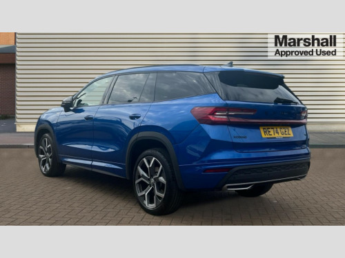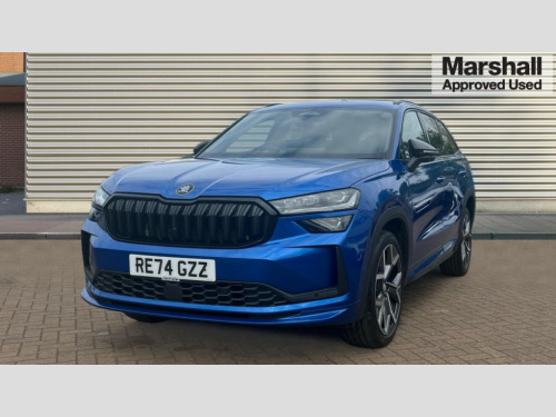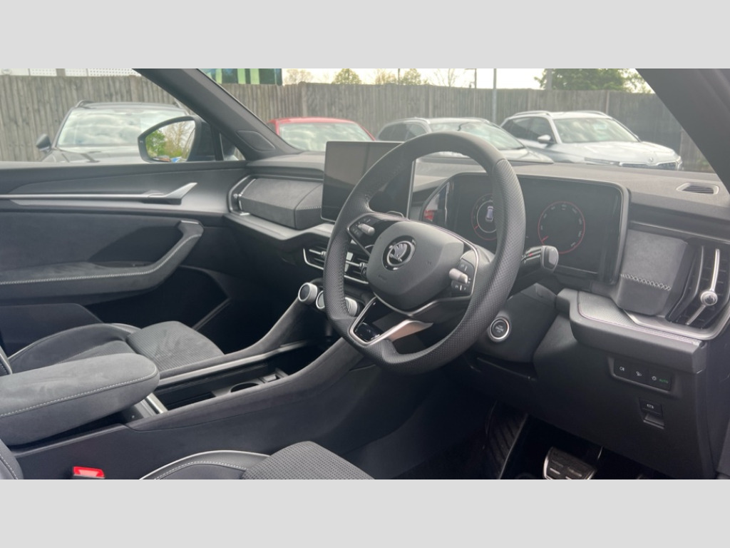 Skoda Kodiaq 2.0 TDI 193 SportLine 4X4 5dr DSG [7 Seat] 13" satellite navigation touchscreen display, Blind spot detection with door exit warning, Bluetooth system, ChatGPT functionality, Driver alert with fatigue sensor, Driver drowsiness alert system, Dry display cleaner, e call+, Front cross traffic assist, Lane assist, Off road modes, PAS, Rear traffic assist, Tailgate unlocking from outside, Traffic sign recognition, USB C Port x 2 in front centre console, Virtual Cockpit - 10.25" digital display, Voice control system, Wireless charging for two smartphones (15W) with cooling function, Wireless SmartLink for Apple CarPlay and Android Auto, Dynamic chassis control with drive mode select, Stop/start function, 2x USB-C in the rear, DAB Digital radio, Aero front windscreen wipers with intermittent function, Auto dimming rear view mirror, AWL (all weather lighting) and all weather light with cornering function, Black diffuser and decorative tailpipe with a unique dark chrome finish, Black sports styling including front grille and window surrounds, Black wheel arch surrounds, Body colour door handles, Cornering light and poor weather light, Electric folding /adjustable/separted heated/folding door mirrors, auto dimming with boarding sports and memory function, Electric front and rear windows, Front and rear sports bumpers including lower rear chrome strip, Gloss black door mirrors, Heat insulating glass in windshield, Heated rear window, Ice scraper in fuel tank cap, Invisible tailpipe, LED daytime running lights, LED rear fog light, LED third brake light in rear spoiler, Light assistant with automatic headlight control and coming home feature, Logo projection in door mirrors, Privacy glass, Rear side wing doors, Rear spoiler, Rear window wiper, Red decorative strip between rear LED lights, Safety reflectors on front and rear doors, Sportline badge on front fenders, Tailgate lettering in Black, Window control switches with black trim, Windscreen wipers with rain sensor, Without engine designation, 1.5l bottle holder points in all door, 12V socket in boot, 1x centre rear reading light, 2 seat bench in 3rd row, 3 configurable smart dials with 32mm coloured display, 3 seat bench in 2nd row, 4 foldable roof handles with rear coat hooks, Aluminium pedals, Ambient interior lighting - Dashboard, front-door stowage compartments, front and rear door panels and footwell lighting, Automatic gear selector on steering wheel, Chrome interior door handles, Driver/front passenger reading lights, Fabric headlining, Fixed bench 40:60:40 split folding backrests, Front and rear floor mats, Front centre armrest with jumbo box storage compartment, cup holder and 12V socket, Front courtesy lights, Front sports comfort seats, Height adjustable front headrests, Interior black decorative trims, Isofix child seat fittings in outer middle row rear seats and front passenger with top tether, Manually adjustable steering column, Pollen filter, Rear centre armrest with cupholders, Rear seat boot backrest release, Retractable luggage compartment cover, Single front passenger seat, Sliding trunk cover, Small Bags on the inner sides of the front backrests, Storage pocket including mobile phone pockets on the backs of the front seats, Sunvisors with illuminated vanity mirrors, Three rear height adjustable headrests, Ticket holder on A Pillar, Tri zone climate control, Umbrella in door panel x1 made from sustainable materials, Upper and lower glovebox with card holder and coin compartment, USB C port by rear view mirror for charging only (15W), Acoustic package - Kodiaq, Performance package - Kodiaq, Sportline design selection pack - Kodiaq, Auto door release and activation of warning lights in the event of an accident, Driver and front passenger airbag with knee airbag and front passenger airbag deactivation, Electric child locks, Electronic parking brake, ESC (incl. ABS+EMD+MSR+ASR+EDL+HBA+DSR+RBS+ESBS+MCB+TSA+XDS), Front assist with braking reaction to vehicles, pedestrians and cyclists, Front disc brakes, Fuel cut off safety device, Height adjustable front 3 point seatbelts + pretensioners, Hill hold control, Junction assist with automatic emergency braking, Rear disc brakes, Safety vest holder in door, Seat belt reminder for all seats, Three point rear seat belts, Two tone horn, Tyre pressure monitor, Alarm with interior monitoring and tilt sensor with safe function, Anti-theft wheel bolts, Immobiliser, Remote central locking with 2 keys, 20" Rila anthacite polished alloy wheel with black matte aero covers, Breakdown kit
