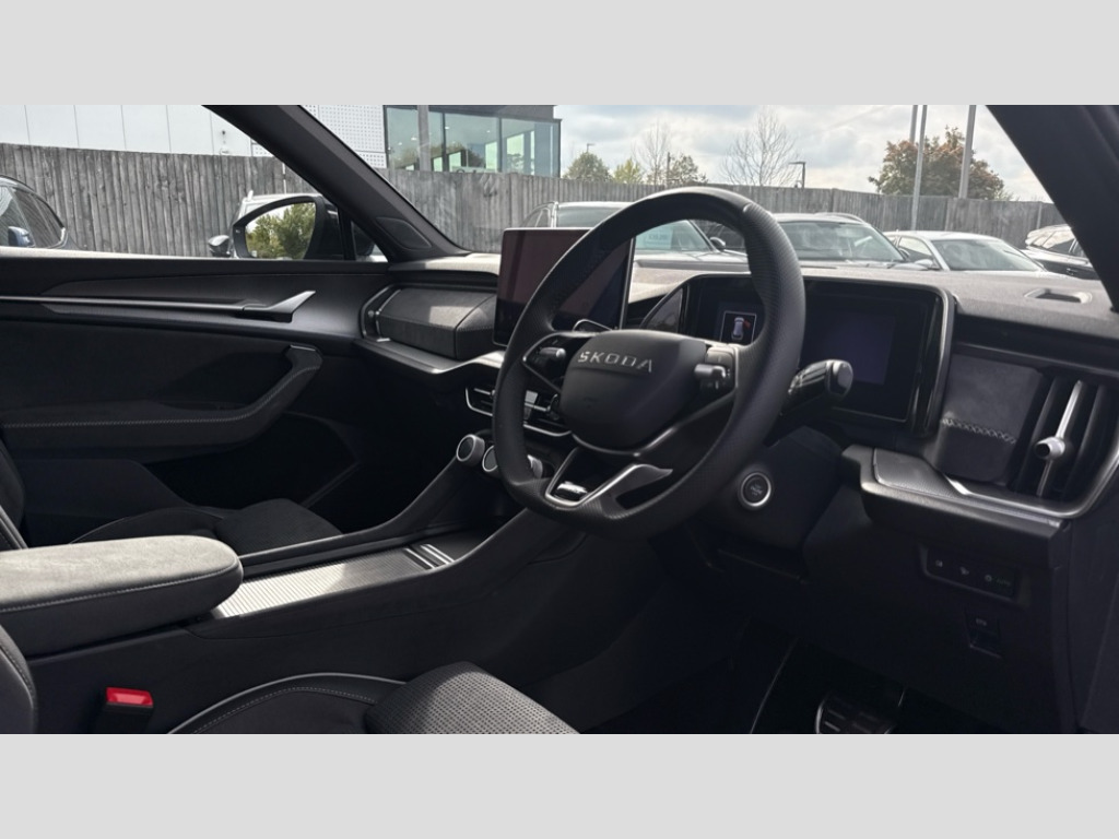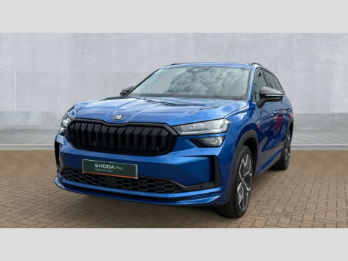 Skoda Kodiaq 2.0 TDI 193 SportLine 4X4 5dr DSG [7 Seat] 13" satellite navigation touchscreen display, Blind spot detection with door exit warning, Bluetooth system, ChatGPT functionality, Driver alert - Fatigue and drowsiness monitor, Dry display cleaner, Emergency call, Front and rear parking sensors, Front cross traffic assist, Lane assist, Off road modes, PAS, Rear traffic assist, Tailgate unlocking from outside, Traffic sign recognition, USB C Port x 2 in front centre console, Virtual Cockpit - 10.25" digital display, Voice control system, Wireless charging for two smartphones (15W) with cooling function, Wireless SmartLink for Apple CarPlay and Android Auto, Stop/start function, 2x USB-C in the rear, DAB Digital radio, Aero front windscreen wipers with intermittent function, Auto dimming rear view mirror, AWL (all weather lighting) and all weather light with cornering function, Black diffuser and decorative tailpipe with a unique dark chrome finish, Black roof rails, Black sports styling including front grille and window surrounds, Black wheel arch surrounds, Body colour door handles, Cornering light and poor weather light, Electric folding /adjustable/separted heated/folding door mirrors, auto dimming with boarding sports and memory function, Electric front and rear windows, Exterior black decorative trims, Front and rear sports bumpers including lower rear chrome strip, Gloss black door mirrors, Gloss black window frame and D pillar, Heat insulating glass in windshield, Heated rear window, Ice scraper in fuel tank cap, LED daytime running lights, LED third brake light in rear spoiler, Light assistant with automatic headlight control and coming home feature, Logo projection in door mirrors, Privacy glass, Rear roof spoiler, Rear side wing doors, Rear window wiper, Red decorative strip between rear LED lights, Safety reflectors on front and rear doors, Sportline badge on front fenders, Tailgate lettering in Black, Unique dark chrome design logo on alloy wheels, Window control switches with black trim, Windscreen wipers with rain sensor, Without engine designation, 1.5l bottle holder points in all door, 1x centre rear reading light, 2 seat bench in 3rd row, 3 configurable smart dials with 32mm coloured display, 3 seat bench in 2nd row, 4 foldable roof handles with rear coat hooks, Aluminium pedals, Ambient interior lighting - Dashboard, front-door stowage compartments, front and rear door panels and footwell lighting, Automatic gear selector on steering column, Chrome interior door handles, Driver/front passenger reading lights, Fabric headlining, Fixed bench 40:60:40 split folding backrests, Front and rear floor mats, Front centre armrest with jumbo box storage compartment, cup holder and 12V socket, Front sport seats, Height adjustable front headrests, Interior black decorative trims, Isofix child seat fittings in outer middle row rear seats and front passenger with top tether, Manually adjustable steering column, Pollen filter, Rear centre armrest with cupholders, Rear seat boot backrest release, Single front passenger seat, Skoda lettering on steering wheel, Storage pocket including mobile phone pockets on the backs of the front seats, Sunvisors with illuminated vanity mirrors, Three rear height adjustable headrests, Ticket holder on A Pillar, Tri zone climate control, Umbrella in door panel x1 made from sustainable materials, Upper and lower glovebox with card holder and coin compartment, USB C port by rear view mirror for charging only (15W), Acoustic package - Kodiaq, Performance package - Kodiaq, Sportline design selection pack - Kodiaq, Auto door release and activation of warning lights in the event of an accident, Driver and front passenger airbag with knee airbag and front passenger airbag deactivation, Electric child locks, Electronic parking brake, ESC (incl. ABS+EMD+MSR+ASR+EDL+HBA+DSR+RBS+ESBS+MCB+TSA+XDS), Front assist with braking reaction to vehicles, pedestrians and cyclists, Front disc brakes, Fuel cut off safety device, Height adjustable front 3 point seatbelts + pretensioners, Hill hold assist, Junction assist with automatic emergency braking, Rear disc brakes, Safety vest holder in door, Seat belt reminder for all seats, Three point rear seat belts, Two tone horn, Tyre pressure monitor, Alarm with interior monitoring and tilt sensor with safe function, Anti-theft wheel bolts, Immobiliser, Remote central locking with 2 keys, 20" Rila anthacite polished alloy wheel with black matte aero covers