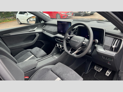Skoda Kodiaq 2.0 TDI 193 SportLine 4X4 5dr DSG [7 Seat] 13" satellite navigation touchscreen display, Blind spot detection with door exit warning, Bluetooth system, ChatGPT functionality, Driver alert - Fatigue and drowsiness monitor, Dry display cleaner, Emergency call, Front and rear parking sensors, Front cross traffic assist, Lane assist, Off road modes, PAS, Rear traffic assist, Tailgate unlocking from outside, Traffic sign recognition, USB C Port x 2 in front centre console, Virtual Cockpit - 10.25" digital display, Voice control system, Wireless charging for two smartphones (15W) with cooling function, Wireless SmartLink for Apple CarPlay and Android Auto, Stop/start function, 2x USB-C in the rear, DAB Digital radio, Aero front windscreen wipers with intermittent function, Auto dimming rear view mirror, AWL (all weather lighting) and all weather light with cornering function, Black diffuser and decorative tailpipe with a unique dark chrome finish, Black roof rails, Black sports styling including front grille and window surrounds, Black wheel arch surrounds, Body colour door handles, Cornering light and poor weather light, Electric folding /adjustable/separted heated/folding door mirrors, auto dimming with boarding sports and memory function, Electric front and rear windows, Exterior black decorative trims, Front and rear sports bumpers including lower rear chrome strip, Gloss black door mirrors, Gloss black window frame and D pillar, Heat insulating glass in windshield, Heated rear window, Ice scraper in fuel tank cap, LED daytime running lights, LED third brake light in rear spoiler, Light assistant with automatic headlight control and coming home feature, Logo projection in door mirrors, Privacy glass, Rear roof spoiler, Rear side wing doors, Rear window wiper, Red decorative strip between rear LED lights, Safety reflectors on front and rear doors, Sportline badge on front fenders, Tailgate lettering in Black, Unique dark chrome design logo on alloy wheels, Window control switches with black trim, Windscreen wipers with rain sensor, Without engine designation, 1.5l bottle holder points in all door, 1x centre rear reading light, 2 seat bench in 3rd row, 3 configurable smart dials with 32mm coloured display, 3 seat bench in 2nd row, 4 foldable roof handles with rear coat hooks, Aluminium pedals, Ambient interior lighting - Dashboard, front-door stowage compartments, front and rear door panels and footwell lighting, Automatic gear selector on steering column, Chrome interior door handles, Driver/front passenger reading lights, Fabric headlining, Fixed bench 40:60:40 split folding backrests, Front and rear floor mats, Front centre armrest with jumbo box storage compartment, cup holder and 12V socket, Front sport seats, Height adjustable front headrests, Interior black decorative trims, Isofix child seat fittings in outer middle row rear seats and front passenger with top tether, Manually adjustable steering column, Pollen filter, Rear centre armrest with cupholders, Rear seat boot backrest release, Single front passenger seat, Skoda lettering on steering wheel, Storage pocket including mobile phone pockets on the backs of the front seats, Sunvisors with illuminated vanity mirrors, Three rear height adjustable headrests, Ticket holder on A Pillar, Tri zone climate control, Umbrella in door panel x1 made from sustainable materials, Upper and lower glovebox with card holder and coin compartment, USB C port by rear view mirror for charging only (15W), Acoustic package - Kodiaq, Performance package - Kodiaq, Sportline design selection pack - Kodiaq, Auto door release and activation of warning lights in the event of an accident, Driver and front passenger airbag with knee airbag and front passenger airbag deactivation, Electric child locks, Electronic parking brake, ESC (incl. ABS+EMD+MSR+ASR+EDL+HBA+DSR+RBS+ESBS+MCB+TSA+XDS), Front assist with braking reaction to vehicles, pedestrians and cyclists, Front disc brakes, Fuel cut off safety device, Height adjustable front 3 point seatbelts + pretensioners, Hill hold assist, Junction assist with automatic emergency braking, Rear disc brakes, Safety vest holder in door, Seat belt reminder for all seats, Three point rear seat belts, Two tone horn, Tyre pressure monitor, Alarm with interior monitoring and tilt sensor with safe function, Anti-theft wheel bolts, Immobiliser, Remote central locking with 2 keys, 20" Rila anthacite polished alloy wheel with black matte aero covers