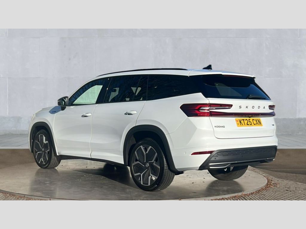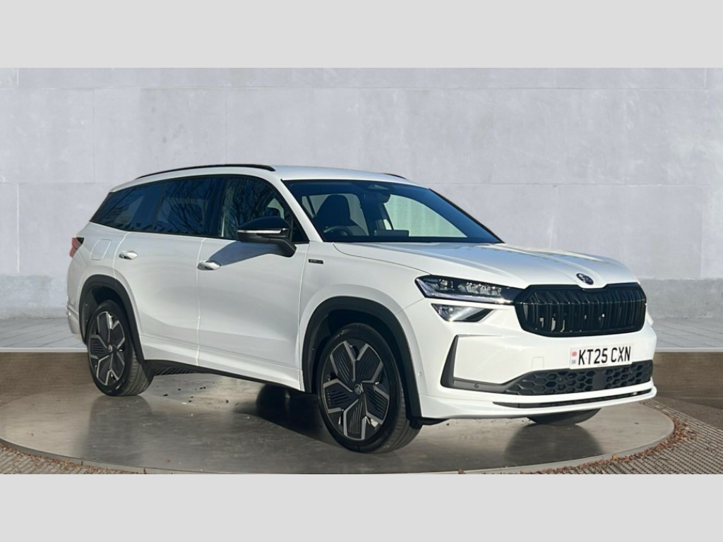 Skoda Kodiaq 2.0 TDI 193 SportLine 4X4 5dr DSG [7 Seat] 13" satellite navigation touchscreen display, Blind spot detection with door exit warning, Bluetooth system, ChatGPT functionality, Driver alert - Fatigue and drowsiness monitor, Dry display cleaner, Emergency call, Front and rear parking sensors, Front cross traffic assist, Lane assist, Off road modes, PAS, Rear traffic assist, Tailgate unlocking from outside, Traffic sign recognition, USB C Port x 2 in front centre console, Virtual Cockpit - 10.25" digital display, Voice control system, Wireless charging for two smartphones (15W) with cooling function, Wireless SmartLink for Apple CarPlay and Android Auto, Stop/start function, 2x USB-C in the rear, DAB Digital radio, Aero front windscreen wipers with intermittent function, Auto dimming rear view mirror, AWL (all weather lighting) and all weather light with cornering function, Black diffuser and decorative tailpipe with a unique dark chrome finish, Black roof rails, Black sports styling including front grille and window surrounds, Black wheel arch surrounds, Body colour door handles, Cornering light and poor weather light, Electric folding /adjustable/separted heated/folding door mirrors, auto dimming with boarding sports and memory function, Electric front and rear windows, Exterior black decorative trims, Front and rear sports bumpers including lower rear chrome strip, Gloss black door mirrors, Gloss black window frame and D pillar, Heat insulating glass in windshield, Heated rear window, Ice scraper in fuel tank cap, LED daytime running lights, LED third brake light in rear spoiler, Light assistant with automatic headlight control and coming home feature, Logo projection in door mirrors, Privacy glass, Rear roof spoiler, Rear side wing doors, Rear window wiper, Red decorative strip between rear LED lights, Safety reflectors on front and rear doors, Sportline badge on front fenders, Tailgate lettering in Black, Unique dark chrome design logo on alloy wheels, Window control switches with black trim, Windscreen wipers with rain sensor, Without engine designation, 1.5l bottle holder points in all door, 1x centre rear reading light, 2 seat bench in 3rd row, 3 configurable smart dials with 32mm coloured display, 3 seat bench in 2nd row, 4 foldable roof handles with rear coat hooks, Aluminium pedals, Ambient interior lighting - Dashboard, front-door stowage compartments, front and rear door panels and footwell lighting, Automatic gear selector on steering column, Chrome interior door handles, Driver/front passenger reading lights, Fabric headlining, Fixed bench 40:60:40 split folding backrests, Front and rear floor mats, Front centre armrest with jumbo box storage compartment, cup holder and 12V socket, Front sport seats, Height adjustable front headrests, Interior black decorative trims, Isofix child seat fittings in outer middle row rear seats and front passenger with top tether, Manually adjustable steering column, Pollen filter, Rear centre armrest with cupholders, Rear seat boot backrest release, Single front passenger seat, Skoda lettering on steering wheel, Storage pocket including mobile phone pockets on the backs of the front seats, Sunvisors with illuminated vanity mirrors, Three rear height adjustable headrests, Ticket holder on A Pillar, Tri zone climate control, Umbrella in door panel x1 made from sustainable materials, Upper and lower glovebox with card holder and coin compartment, USB C port by rear view mirror for charging only (15W), Acoustic package - Kodiaq, Performance package - Kodiaq, Sportline design selection pack - Kodiaq, Auto door release and activation of warning lights in the event of an accident, Driver and front passenger airbag with knee airbag and front passenger airbag deactivation, Electric child locks, Electronic parking brake, ESC (incl. ABS+EMD+MSR+ASR+EDL+HBA+DSR+RBS+ESBS+MCB+TSA+XDS), Front assist with braking reaction to vehicles, pedestrians and cyclists, Front disc brakes, Fuel cut off safety device, Height adjustable front 3 point seatbelts + pretensioners, Hill hold assist, Junction assist with automatic emergency braking, Rear disc brakes, Safety vest holder in door, Seat belt reminder for all seats, Three point rear seat belts, Two tone horn, Tyre pressure monitor, Alarm with interior monitoring and tilt sensor with safe function, Anti-theft wheel bolts, Immobiliser, Remote central locking with 2 keys, 20" Rila anthacite polished alloy wheel with black matte aero covers