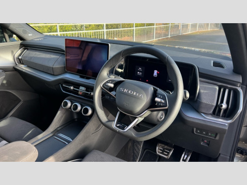 Skoda Kodiaq 2.0 TDI 193 SportLine 4X4 5dr DSG [7 Seat] 13" satellite navigation touchscreen display, Blind spot detection with door exit warning, Bluetooth system, ChatGPT functionality, Driver alert - Fatigue and drowsiness monitor, Dry display cleaner, Emergency call, Front and rear parking sensors, Front cross traffic assist, Lane assist, Off road modes, PAS, Rear traffic assist, Tailgate unlocking from outside, Traffic sign recognition, USB C Port x 2 in front centre console, Virtual Cockpit - 10.25" digital display, Voice control system, Wireless charging for two smartphones (15W) with cooling function, Wireless SmartLink for Apple CarPlay and Android Auto, Stop/start function, 2x USB-C in the rear, DAB Digital radio, Aero front windscreen wipers with intermittent function, Auto dimming rear view mirror, AWL (all weather lighting) and all weather light with cornering function, Black diffuser and decorative tailpipe with a unique dark chrome finish, Black roof rails, Black sports styling including front grille and window surrounds, Black wheel arch surrounds, Body colour door handles, Cornering light and poor weather light, Electric folding /adjustable/separted heated/folding door mirrors, auto dimming with boarding sports and memory function, Electric front and rear windows, Exterior black decorative trims, Front and rear sports bumpers including lower rear chrome strip, Gloss black door mirrors, Gloss black window frame and D pillar, Heat insulating glass in windshield, Heated rear window, Ice scraper in fuel tank cap, LED daytime running lights, LED third brake light in rear spoiler, Light assistant with automatic headlight control and coming home feature, Logo projection in door mirrors, Privacy glass, Rear roof spoiler, Rear side wing doors, Rear window wiper, Red decorative strip between rear LED lights, Safety reflectors on front and rear doors, Sportline badge on front fenders, Tailgate lettering in Black, Unique dark chrome design logo on alloy wheels, Window control switches with black trim, Windscreen wipers with rain sensor, Without engine designation, 1.5l bottle holder points in all door, 1x centre rear reading light, 2 seat bench in 3rd row, 3 configurable smart dials with 32mm coloured display, 3 seat bench in 2nd row, 4 foldable roof handles with rear coat hooks, Aluminium pedals, Ambient interior lighting - Dashboard, front-door stowage compartments, front and rear door panels and footwell lighting, Automatic gear selector on steering column, Chrome interior door handles, Driver/front passenger reading lights, Fabric headlining, Fixed bench 40:60:40 split folding backrests, Front and rear floor mats, Front centre armrest with jumbo box storage compartment, cup holder and 12V socket, Front sport seats, Height adjustable front headrests, Interior black decorative trims, Isofix child seat fittings in outer middle row rear seats and front passenger with top tether, Manually adjustable steering column, Pollen filter, Rear centre armrest with cupholders, Rear seat boot backrest release, Single front passenger seat, Skoda lettering on steering wheel, Storage pocket including mobile phone pockets on the backs of the front seats, Sunvisors with illuminated vanity mirrors, Three rear height adjustable headrests, Ticket holder on A Pillar, Tri zone climate control, Umbrella in door panel x1 made from sustainable materials, Upper and lower glovebox with card holder and coin compartment, USB C port by rear view mirror for charging only (15W), Acoustic package - Kodiaq, Performance package - Kodiaq, Sportline design selection pack - Kodiaq, Auto door release and activation of warning lights in the event of an accident, Driver and front passenger airbag with knee airbag and front passenger airbag deactivation, Electric child locks, Electronic parking brake, ESC (incl. ABS+EMD+MSR+ASR+EDL+HBA+DSR+RBS+ESBS+MCB+TSA+XDS), Front assist with braking reaction to vehicles, pedestrians and cyclists, Front disc brakes, Fuel cut off safety device, Height adjustable front 3 point seatbelts + pretensioners, Hill hold assist, Junction assist with automatic emergency braking, Rear disc brakes, Safety vest holder in door, Seat belt reminder for all seats, Three point rear seat belts, Two tone horn, Tyre pressure monitor, Alarm with interior monitoring and tilt sensor with safe function, Anti-theft wheel bolts, Immobiliser, Remote central locking with 2 keys, 20" Rila anthacite polished alloy wheel with black matte aero covers