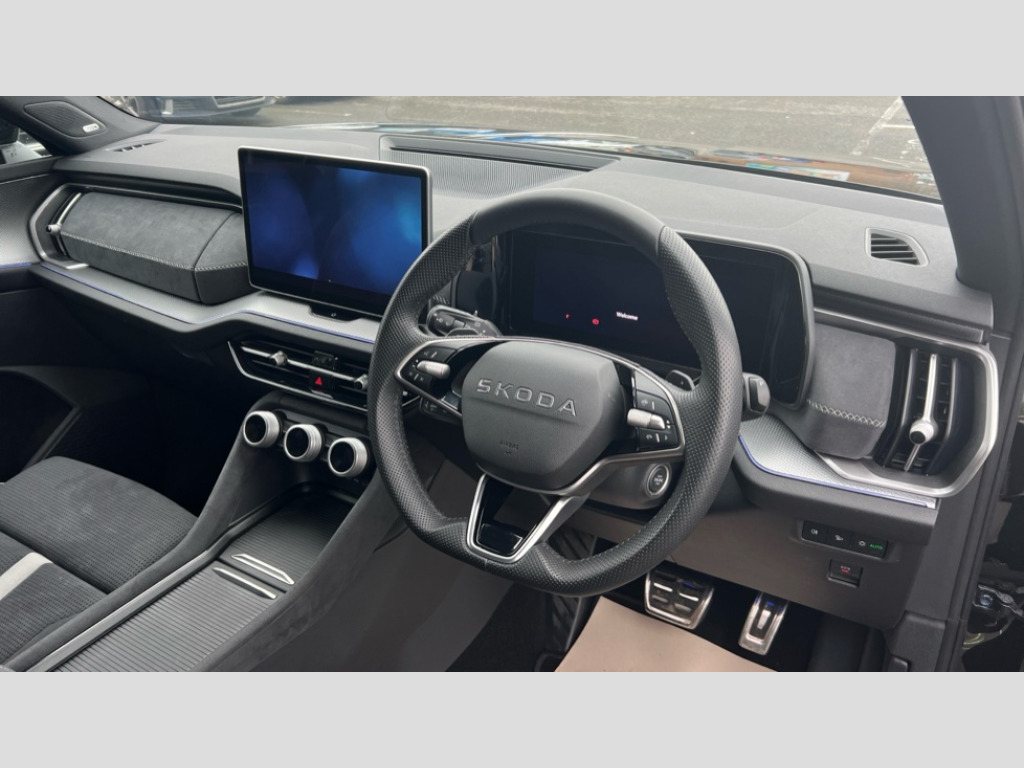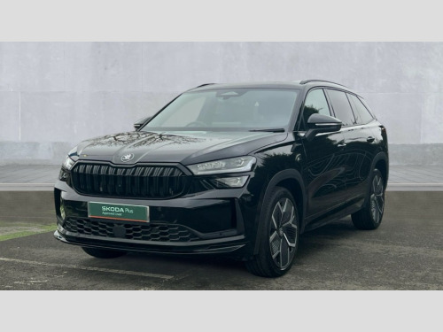 Skoda Kodiaq 2.0 TDI 193 SportLine 4X4 5dr DSG [7 Seat] 13" satellite navigation touchscreen display, Blind spot detection with door exit warning, Bluetooth system, ChatGPT functionality, Driver alert - Fatigue and drowsiness monitor, Dry display cleaner, Emergency call, Front and rear parking sensors, Front cross traffic assist, Lane assist, Off road modes, PAS, Rear traffic assist, Tailgate unlocking from outside, Traffic sign recognition, USB C Port x 2 in front centre console, Virtual Cockpit - 10.25" digital display, Voice control system, Wireless charging for two smartphones (15W) with cooling function, Wireless SmartLink for Apple CarPlay and Android Auto, Stop/start function, 2x USB-C in the rear, DAB Digital radio, Aero front windscreen wipers with intermittent function, Auto dimming rear view mirror, AWL (all weather lighting) and all weather light with cornering function, Black diffuser and decorative tailpipe with a unique dark chrome finish, Black roof rails, Black sports styling including front grille and window surrounds, Black wheel arch surrounds, Body colour door handles, Cornering light and poor weather light, Electric folding /adjustable/separted heated/folding door mirrors, auto dimming with boarding sports and memory function, Electric front and rear windows, Exterior black decorative trims, Front and rear sports bumpers including lower rear chrome strip, Gloss black door mirrors, Gloss black window frame and D pillar, Heat insulating glass in windshield, Heated rear window, Ice scraper in fuel tank cap, LED daytime running lights, LED third brake light in rear spoiler, Light assistant with automatic headlight control and coming home feature, Logo projection in door mirrors, Privacy glass, Rear roof spoiler, Rear side wing doors, Rear window wiper, Red decorative strip between rear LED lights, Safety reflectors on front and rear doors, Sportline badge on front fenders, Tailgate lettering in Black, Unique dark chrome design logo on alloy wheels, Window control switches with black trim, Windscreen wipers with rain sensor, Without engine designation, 1.5l bottle holder points in all door, 1x centre rear reading light, 2 seat bench in 3rd row, 3 configurable smart dials with 32mm coloured display, 3 seat bench in 2nd row, 4 foldable roof handles with rear coat hooks, Aluminium pedals, Ambient interior lighting - Dashboard, front-door stowage compartments, front and rear door panels and footwell lighting, Automatic gear selector on steering column, Chrome interior door handles, Driver/front passenger reading lights, Fabric headlining, Fixed bench 40:60:40 split folding backrests, Front and rear floor mats, Front centre armrest with jumbo box storage compartment, cup holder and 12V socket, Front sport seats, Height adjustable front headrests, Interior black decorative trims, Isofix child seat fittings in outer middle row rear seats and front passenger with top tether, Manually adjustable steering column, Pollen filter, Rear centre armrest with cupholders, Rear seat boot backrest release, Single front passenger seat, Skoda lettering on steering wheel, Storage pocket including mobile phone pockets on the backs of the front seats, Sunvisors with illuminated vanity mirrors, Three rear height adjustable headrests, Ticket holder on A Pillar, Tri zone climate control, Umbrella in door panel x1 made from sustainable materials, Upper and lower glovebox with card holder and coin compartment, USB C port by rear view mirror for charging only (15W), Acoustic package - Kodiaq, Performance package - Kodiaq, Sportline design selection pack - Kodiaq, Auto door release and activation of warning lights in the event of an accident, Driver and front passenger airbag with knee airbag and front passenger airbag deactivation, Electric child locks, Electronic parking brake, ESC (incl. ABS+EMD+MSR+ASR+EDL+HBA+DSR+RBS+ESBS+MCB+TSA+XDS), Front assist with braking reaction to vehicles, pedestrians and cyclists, Front disc brakes, Fuel cut off safety device, Height adjustable front 3 point seatbelts + pretensioners, Hill hold assist, Junction assist with automatic emergency braking, Rear disc brakes, Safety vest holder in door, Seat belt reminder for all seats, Three point rear seat belts, Two tone horn, Tyre pressure monitor, Alarm with interior monitoring and tilt sensor with safe function, Anti-theft wheel bolts, Immobiliser, Remote central locking with 2 keys, 20" Rila anthacite polished alloy wheel with black matte aero covers