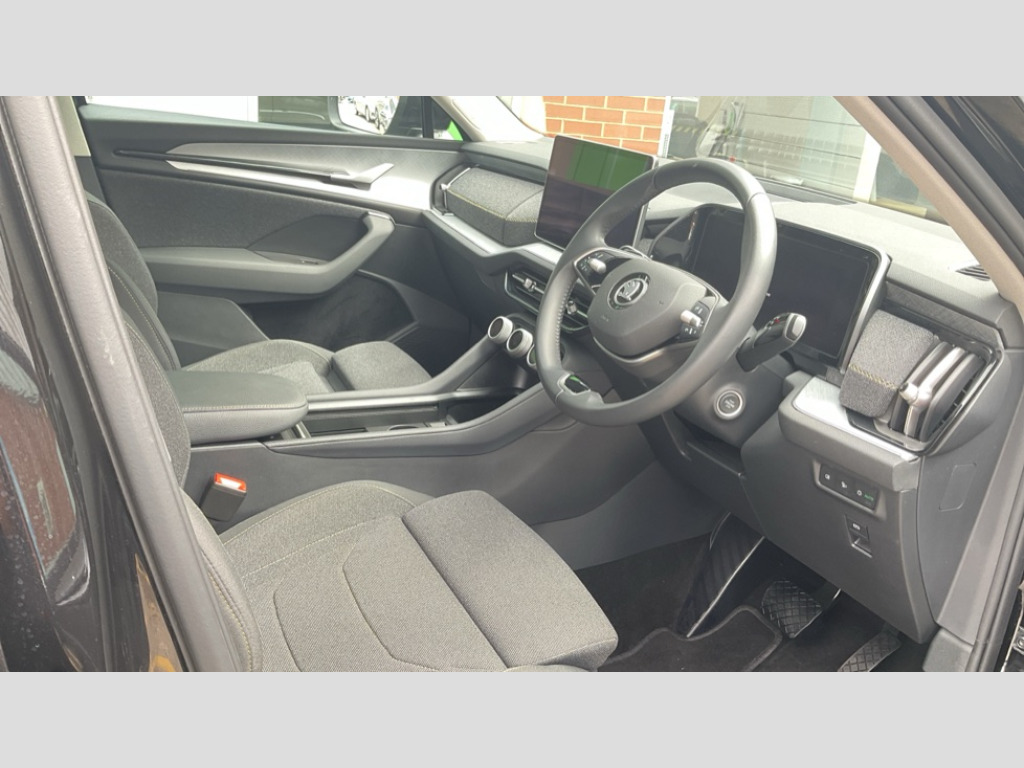 10.25" Virtual Cockpit 13" satellite navigation touchscreen display, Blind spot detection with door exit warning, Bluetooth system, ChatGPT functionality, Drive mode selector, Driver alert with fatigue sensor, Driver drowsiness alert system, Dry display cleaner, e call+, Front and rear parking sensors, Front cross traffic assist, Lane assist, PAS, Rear traffic assist, Rear view camera, Tailgate unlocking from outside, Traffic sign recognition, USB C Port x 2 in front centre console, Virtual Cockpit - 10.25" digital display, Voice control system, Wireless charging for two smartphones (15W) with cooling function, Wireless SmartLink for Apple CarPlay and Android Auto, Stop/start function, 2x USB-C in the rear, 8 Speakers, DAB Digital radio, Aero front windscreen wipers with intermittent function, All weather light, Auto dimming rear view mirror, Black wheel arch surrounds, Body colour bumpers, Body colour door mirrors and handles, Cornering light and poor weather light, Electric folding /adjustable/separted heated/folding door mirrors, auto dimming with boarding sports and memory function, Electric front and rear windows, Exterior black decorative trims, Heat insulating glass in windshield, Heated rear window, Ice scraper in fuel tank cap, Invisible tailpipe, LED daytime running lights, LED front fog lamps, LED Headlights, LED rear fog light, LED rear lights, LED third brake light in rear spoiler, Light assistant with automatic headlight control and coming home feature, Logo projection in door mirrors, Rear side wing doors, Rear spoiler, Rear window wiper, Safety reflectors on front and rear doors, Unique dark chrome design logo on alloy wheels, Window control switches with black trim, Windscreen wipers with rain sensor, Without engine designation, 1.5l bottle holder points in all door, 12V socket in boot, 1x centre rear reading light, 2 seat bench in 3rd row, 3 configurable smart dials with 32mm coloured display, 3 seat bench in 2nd row, 4 foldable roof handles with rear coat hooks, Ambient interior lighting - Dashboard, front-door stowage compartments, front and rear door panels and footwell lighting, Automatic gear selector on steering wheel, Chrome interior door handles, Driver/front passenger reading lights, Fabric headlining, Fixed bench 40:60:40 split folding backrests, Front and rear floor mats, Front centre armrest with jumbo box storage compartment, cup holder and 12V socket, Front courtesy lights, Height adjustable front headrests, Isofix child seat fittings in outer middle row rear seats and front passenger with top tether, Manual height adjustment for front passenger seats and thigh support extender, Manual lumbar support for front passenger seat, Manually adjustable steering column, Pollen filter, Rear centre armrest with cupholders, Rear seat boot backrest release, Retractable luggage compartment cover, Single front passenger seat, Skoda lettering on steering wheel, Sliding trunk cover, Small Bags on the inner sides of the front backrests, Storage pocket including mobile phone pockets on the backs of the front seats, Sunvisors with illuminated vanity mirrors, Three rear height adjustable headrests, Ticket holder on A Pillar, Tri zone climate control, Umbrella in door panel x1 made from sustainable materials, Upper and lower glovebox with card holder and coin compartment, USB C port by rear view mirror for charging only (15W), Variable boot floor, Auto door release and activation of warning lights in the event of an accident, Driver and front passenger airbag with knee airbag and front passenger airbag deactivation, Electric child locks, Electronic parking brake, ESC (incl. ABS+EMD+MSR+ASR+EDL+HBA+DSR+RBS+ESBS+MCB+TSA+XDS), Front assist with braking reaction to vehicles, pedestrians and cyclists, Front disc brakes, Fuel cut off safety device, Height adjustable front 3 point seatbelts + pretensioners, Hill hold control, Junction assist with automatic emergency braking, Rear disc brakes, Safety vest holder in door, Seat belt reminder for all seats, Three point rear seat belts, Two tone horn, Tyre pressure monitor, Alarm with interior monitoring and tilt sensor with safe function, Anti-theft wheel bolts, Immobiliser, Remote central locking with 2 keys, Breakdown kit
