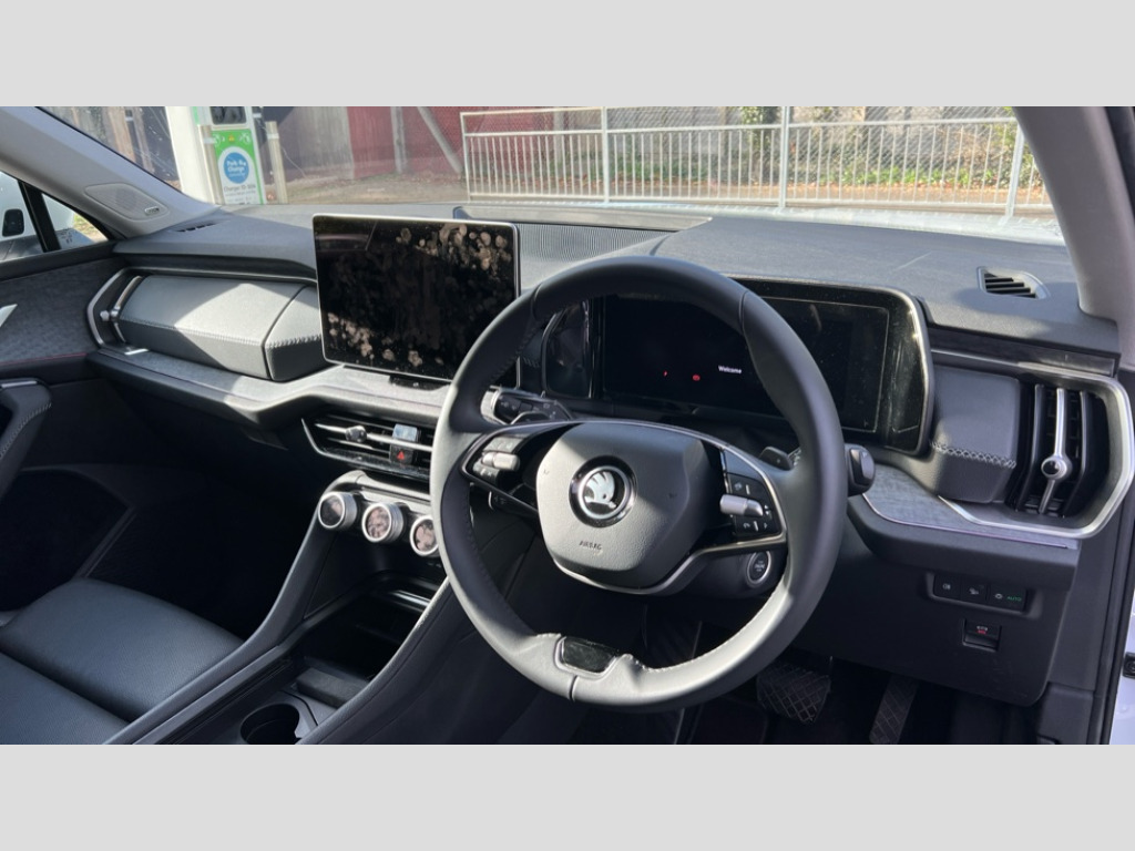 Skoda Kodiaq 2.0 TDI SE L 5dr DSG [7 Seat] 13" satellite navigation touchscreen display, Blind spot detection with door exit warning, Bluetooth system, ChatGPT functionality, Driver alert - Fatigue and drowsiness monitor, Dry display cleaner, Emergency call, Front and rear parking sensors, Front cross traffic assist, Lane assist, PAS, Rear traffic assist, Tailgate unlocking from outside, Traffic sign recognition, USB C Port x 2 in front centre console, Virtual Cockpit - 10.25" digital display, Voice control system, Wireless charging for two smartphones (15W) with cooling function, Wireless SmartLink for Apple CarPlay and Android Auto, Stop/start function, 2x USB-C in the rear, DAB Digital radio, Aero front windscreen wipers with intermittent function, Auto dimming rear view mirror, AWL (all weather lighting) and all weather light with cornering function, Black wheel arch surrounds, Body colour bumpers, Body colour door mirrors and handles, Cornering light and poor weather light, Electric folding /adjustable/separted heated/folding door mirrors, auto dimming with boarding sports and memory function, Electric front and rear windows, Exterior black decorative trims, Heat insulating glass in windshield, Heated rear window, Ice scraper in fuel tank cap, Invisible tailpipe, LED daytime running lights, LED third brake light in rear spoiler, Light assistant with automatic headlight control and coming home feature, Logo projection in door mirrors, Privacy glass, Rear roof spoiler, Rear side wing doors, Rear window wiper, Red decorative strip between rear LED lights, Safety reflectors on front and rear doors, Unique dark chrome design logo on alloy wheels, Window control switches with black trim, Windscreen wipers with rain sensor, Without engine designation, 1.5l bottle holder points in all door, 1x centre rear reading light, 2 seat bench in 3rd row, 3 configurable smart dials with 32mm coloured display, 3 seat bench in 2nd row, 4 foldable roof handles with rear coat hooks, Ambient interior lighting - Dashboard, front-door stowage compartments, front and rear door panels and footwell lighting, Automatic gear selector on steering column, Chrome interior door handles, Driver/front passenger reading lights, Fabric headlining, Fixed bench 40:60:40 split folding backrests, Front and rear floor mats, Front centre armrest with jumbo box storage compartment, cup holder and 12V socket, Height adjustable front headrests, Isofix child seat fittings in outer middle row rear seats and front passenger with top tether, Manually adjustable steering column, Pollen filter, Rear centre armrest with cupholders, Rear seat boot backrest release, Single front passenger seat, Skoda lettering on steering wheel, Storage pocket including mobile phone pockets on the backs of the front seats, Sunvisors with illuminated vanity mirrors, Three rear height adjustable headrests, Ticket holder on A Pillar, Tri zone climate control, Umbrella in door panel x1 made from sustainable materials, Upper and lower glovebox with card holder and coin compartment, USB C port by rear view mirror for charging only (15W), Exterior styling pack - Kodiaq, Auto door release and activation of warning lights in the event of an accident, Driver and front passenger airbag with knee airbag and front passenger airbag deactivation, Electric child locks, Electronic parking brake, ESC (incl. ABS+EMD+MSR+ASR+EDL+HBA+DSR+RBS+ESBS+MCB+TSA+XDS), Front assist with braking reaction to vehicles, pedestrians and cyclists, Front disc brakes, Fuel cut off safety device, Height adjustable front 3 point seatbelts + pretensioners, Hill hold assist, Junction assist with automatic emergency braking, Rear disc brakes, Safety vest holder in door, Seat belt reminder for all seats, Three point rear seat belts, Two tone horn, Tyre pressure monitor, Anti-theft wheel bolts, Immobiliser, Remote central locking with 2 keys