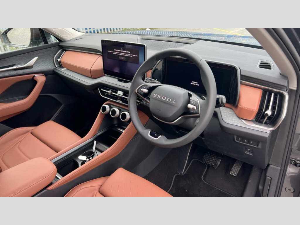 Skoda Kodiaq 2.0 TDI SE L 5dr DSG [7 Seat] 13" satellite navigation touchscreen display, Blind spot detection with door exit warning, Bluetooth system, ChatGPT functionality, Driver alert - Fatigue and drowsiness monitor, Dry display cleaner, Emergency call, Front and rear parking sensors, Front cross traffic assist, Lane assist, PAS, Rear traffic assist, Tailgate unlocking from outside, Traffic sign recognition, USB C Port x 2 in front centre console, Virtual Cockpit - 10.25" digital display, Voice control system, Wireless charging for two smartphones (15W) with cooling function, Wireless SmartLink for Apple CarPlay and Android Auto, Stop/start function, 2x USB-C in the rear, DAB Digital radio, Aero front windscreen wipers with intermittent function, Auto dimming rear view mirror, AWL (all weather lighting) and all weather light with cornering function, Black wheel arch surrounds, Body colour bumpers, Body colour door mirrors and handles, Cornering light and poor weather light, Electric folding /adjustable/separted heated/folding door mirrors, auto dimming with boarding sports and memory function, Electric front and rear windows, Exterior black decorative trims, Heat insulating glass in windshield, Heated rear window, Ice scraper in fuel tank cap, Invisible tailpipe, LED daytime running lights, LED third brake light in rear spoiler, Light assistant with automatic headlight control and coming home feature, Logo projection in door mirrors, Privacy glass, Rear roof spoiler, Rear side wing doors, Rear window wiper, Red decorative strip between rear LED lights, Safety reflectors on front and rear doors, Unique dark chrome design logo on alloy wheels, Window control switches with black trim, Windscreen wipers with rain sensor, Without engine designation, 1.5l bottle holder points in all door, 1x centre rear reading light, 2 seat bench in 3rd row, 3 configurable smart dials with 32mm coloured display, 3 seat bench in 2nd row, 4 foldable roof handles with rear coat hooks, Ambient interior lighting - Dashboard, front-door stowage compartments, front and rear door panels and footwell lighting, Automatic gear selector on steering column, Chrome interior door handles, Driver/front passenger reading lights, Fabric headlining, Fixed bench 40:60:40 split folding backrests, Front and rear floor mats, Front centre armrest with jumbo box storage compartment, cup holder and 12V socket, Height adjustable front headrests, Isofix child seat fittings in outer middle row rear seats and front passenger with top tether, Manually adjustable steering column, Pollen filter, Rear centre armrest with cupholders, Rear seat boot backrest release, Single front passenger seat, Skoda lettering on steering wheel, Storage pocket including mobile phone pockets on the backs of the front seats, Sunvisors with illuminated vanity mirrors, Three rear height adjustable headrests, Ticket holder on A Pillar, Tri zone climate control, Umbrella in door panel x1 made from sustainable materials, Upper and lower glovebox with card holder and coin compartment, USB C port by rear view mirror for charging only (15W), Exterior styling pack - Kodiaq, Auto door release and activation of warning lights in the event of an accident, Driver and front passenger airbag with knee airbag and front passenger airbag deactivation, Electric child locks, Electronic parking brake, ESC (incl. ABS+EMD+MSR+ASR+EDL+HBA+DSR+RBS+ESBS+MCB+TSA+XDS), Front assist with braking reaction to vehicles, pedestrians and cyclists, Front disc brakes, Fuel cut off safety device, Height adjustable front 3 point seatbelts + pretensioners, Hill hold assist, Junction assist with automatic emergency braking, Rear disc brakes, Safety vest holder in door, Seat belt reminder for all seats, Three point rear seat belts, Two tone horn, Tyre pressure monitor, Anti-theft wheel bolts, Immobiliser, Remote central locking with 2 keys