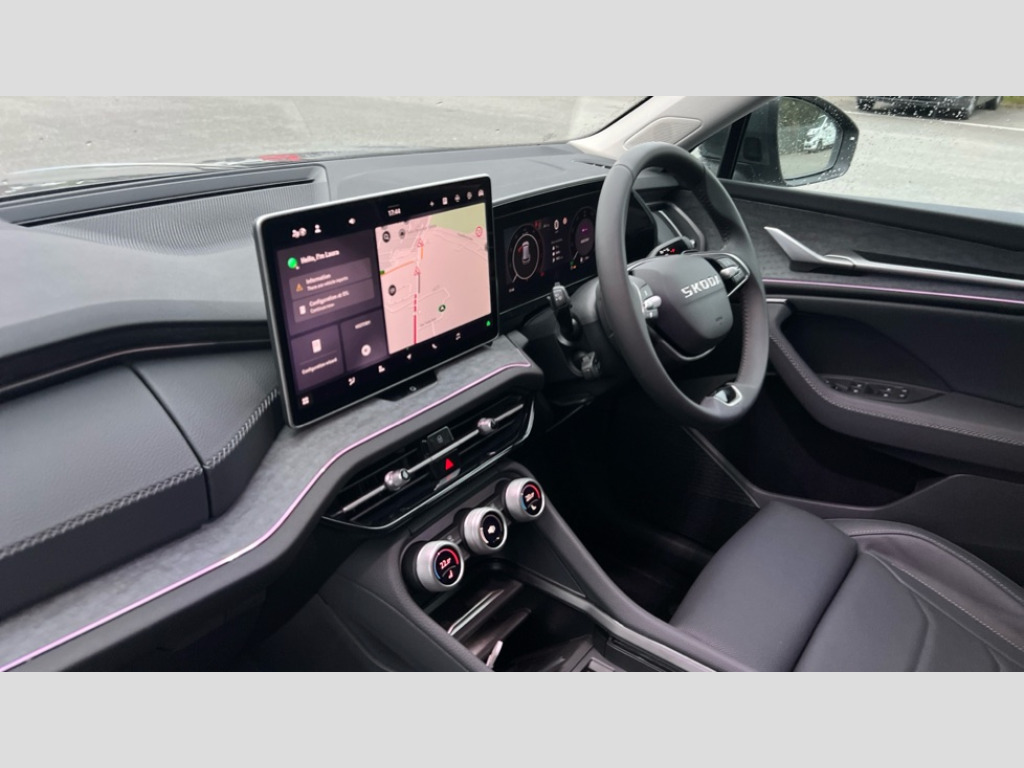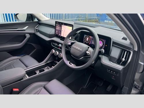 Skoda Kodiaq 2.0 TDI SE L 5dr DSG [7 Seat] 13" satellite navigation touchscreen display, Blind spot detection with door exit warning, Bluetooth system, ChatGPT functionality, Driver alert - Fatigue and drowsiness monitor, Dry display cleaner, Emergency call, Front and rear parking sensors, Front cross traffic assist, Lane assist, PAS, Rear traffic assist, Tailgate unlocking from outside, Traffic sign recognition, USB C Port x 2 in front centre console, Virtual Cockpit - 10.25" digital display, Voice control system, Wireless charging for two smartphones (15W) with cooling function, Wireless SmartLink for Apple CarPlay and Android Auto, Stop/start function, 2x USB-C in the rear, DAB Digital radio, Aero front windscreen wipers with intermittent function, Auto dimming rear view mirror, AWL (all weather lighting) and all weather light with cornering function, Black wheel arch surrounds, Body colour bumpers, Body colour door mirrors and handles, Cornering light and poor weather light, Electric folding /adjustable/separted heated/folding door mirrors, auto dimming with boarding sports and memory function, Electric front and rear windows, Exterior black decorative trims, Heat insulating glass in windshield, Heated rear window, Ice scraper in fuel tank cap, Invisible tailpipe, LED daytime running lights, LED third brake light in rear spoiler, Light assistant with automatic headlight control and coming home feature, Logo projection in door mirrors, Privacy glass, Rear roof spoiler, Rear side wing doors, Rear window wiper, Red decorative strip between rear LED lights, Safety reflectors on front and rear doors, Unique dark chrome design logo on alloy wheels, Window control switches with black trim, Windscreen wipers with rain sensor, Without engine designation, 1.5l bottle holder points in all door, 1x centre rear reading light, 2 seat bench in 3rd row, 3 configurable smart dials with 32mm coloured display, 3 seat bench in 2nd row, 4 foldable roof handles with rear coat hooks, Ambient interior lighting - Dashboard, front-door stowage compartments, front and rear door panels and footwell lighting, Automatic gear selector on steering column, Chrome interior door handles, Driver/front passenger reading lights, Fabric headlining, Fixed bench 40:60:40 split folding backrests, Front and rear floor mats, Front centre armrest with jumbo box storage compartment, cup holder and 12V socket, Height adjustable front headrests, Isofix child seat fittings in outer middle row rear seats and front passenger with top tether, Manually adjustable steering column, Pollen filter, Rear centre armrest with cupholders, Rear seat boot backrest release, Single front passenger seat, Skoda lettering on steering wheel, Storage pocket including mobile phone pockets on the backs of the front seats, Sunvisors with illuminated vanity mirrors, Three rear height adjustable headrests, Ticket holder on A Pillar, Tri zone climate control, Umbrella in door panel x1 made from sustainable materials, Upper and lower glovebox with card holder and coin compartment, USB C port by rear view mirror for charging only (15W), Exterior styling pack - Kodiaq, Auto door release and activation of warning lights in the event of an accident, Driver and front passenger airbag with knee airbag and front passenger airbag deactivation, Electric child locks, Electronic parking brake, ESC (incl. ABS+EMD+MSR+ASR+EDL+HBA+DSR+RBS+ESBS+MCB+TSA+XDS), Front assist with braking reaction to vehicles, pedestrians and cyclists, Front disc brakes, Fuel cut off safety device, Height adjustable front 3 point seatbelts + pretensioners, Hill hold assist, Junction assist with automatic emergency braking, Rear disc brakes, Safety vest holder in door, Seat belt reminder for all seats, Three point rear seat belts, Two tone horn, Tyre pressure monitor, Anti-theft wheel bolts, Immobiliser, Remote central locking with 2 keys