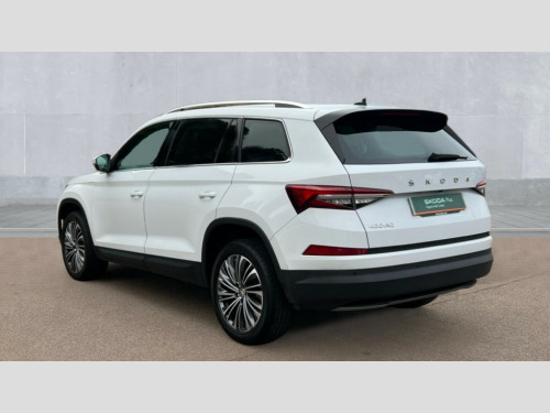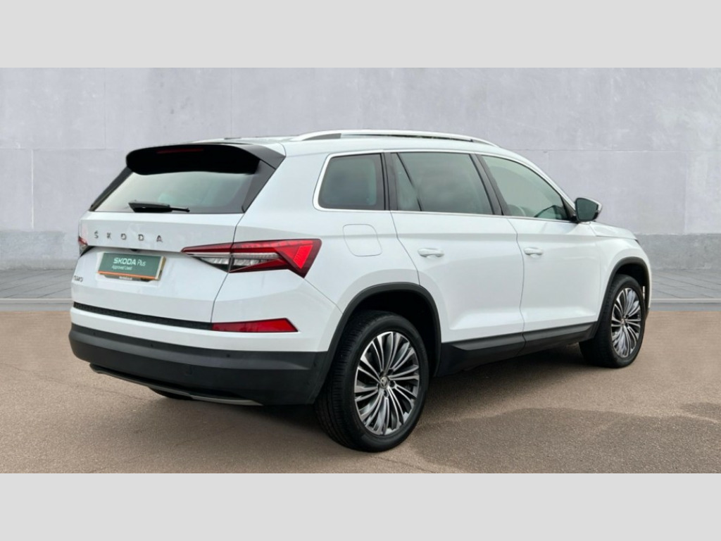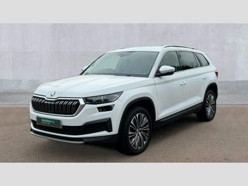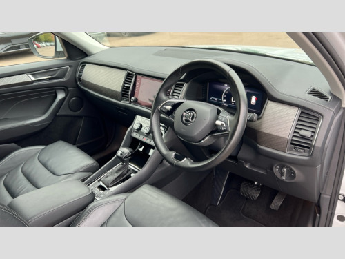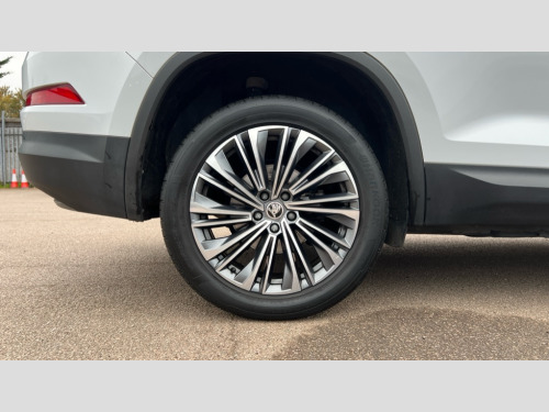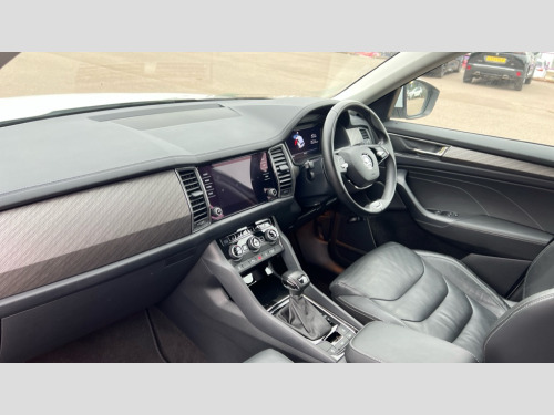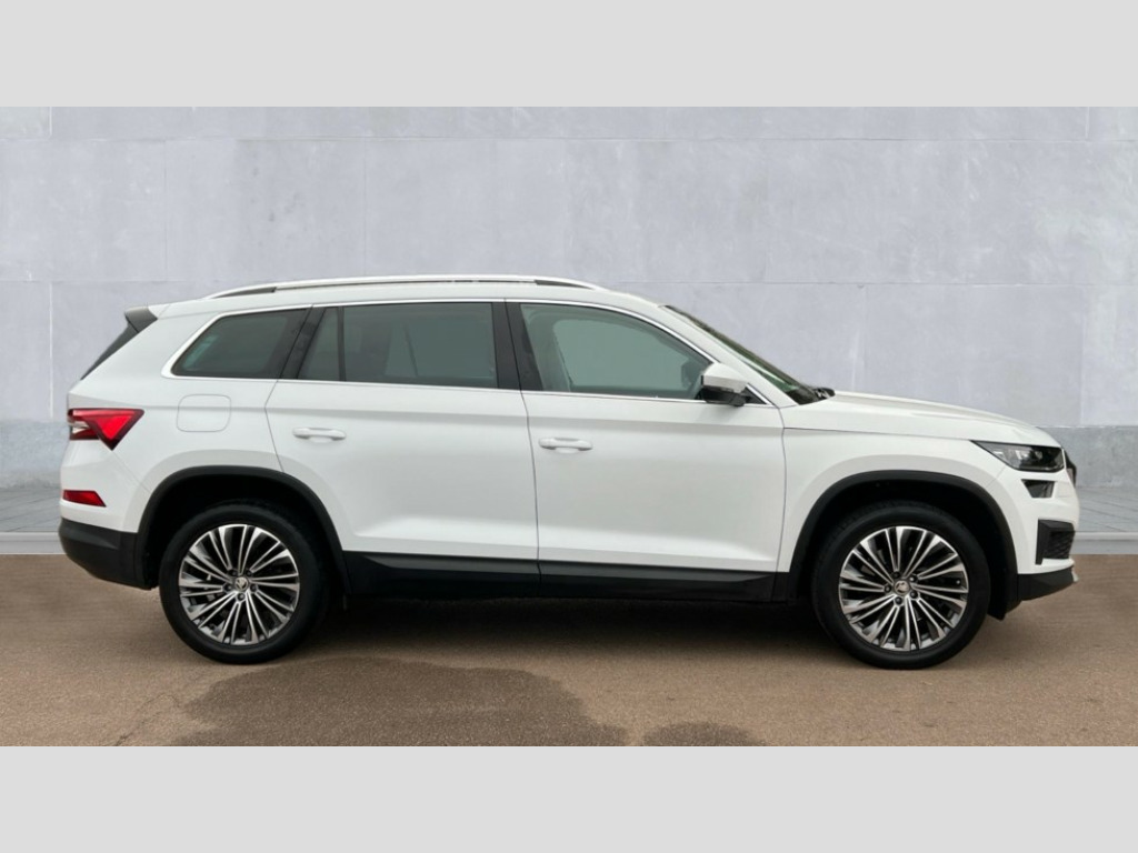 Skoda Kodiaq 2.0 TDI SE L Executive 5dr DSG [7 Seat] Bluetooth system, Digital voice enhancement, E-call, ECO Stop/start function, Exterior temperature indicator, Rear view camera, Smartlink wireless for apple carplay and wired for android auto, Speed limiter, Tailgate unlocking from outside, USB C Port x 2 in front centre console, Wireless charging, 8 Speakers, DAB Digital radio, Aero front windscreen wipers with intermittent function, Aero rear window wiper, Auto dimming rear view mirror, Black wheel arch surrounds, Body colour bumpers, Body colour door mirrors and handles, Chrome front grille, Chrome roof rails with chrome window surround, Daytime running lights, Electric adjustable/heated/folding door mirrors, driver side auto dimming with boarding sports and memory function, Electric front and rear windows, Extended rear spoiler with finlets in gloss black, Front fog lights, Full LED matrix headlights with AFS (adaptive front light system), cornering function and AWL (all weather lighting system), Headlight washers, Heated rear window, Invisible tailpipe, LED rear fog light, LED third brake light in rear spoiler, Light assistant (coming/leaving home/tunnel light), Off-road style lower front bumper element, Privacy glass, Rain and light sensors, Rear LED lights (high functionality) with welcome effect and dynamic indicators, Rear side wing doors, Safety reflectors on front and rear doors, Window control switches with black trim, 12V socket in boot, 2 rails with 2 hooks, 2 seat bench in 3rd row, 3 seat bench in 2nd row, 4 foldable roof handles with rear coat hooks, 60:40 foldable rear seat with sliding adjustment and backrest angle adjustment, Bottle holders in door panel in the 1.5 litre front and 1 litre rear, Cargo storage compartments, Chrome headlight control button, Chrome interior door handles, Coat hooks on B pillar, Covered storage compartment on driver side, Front centre armrest with storage compartment, cup holder and 12V socket, Front courtesy lights, Gear shift lever with chrome frame and black gloss insert, Grey stitching in front and rear armrests and door armrests + door inserts, Height adjustable front headrests, Illuminated and cooled glovebox, Illuminated luggage compartment, Isofix child seat fittings in outer rear seats with top tether, Manually adjustable steering column, Net programme in boot (1x horizontal Net, 2x vertical Nets), Overhead glasses storage compartment, Pollen filter, Rear centre armrest with cupholders, Single front passenger seat, Sliding trunk cover, Small Bags on the inner sides of the front backrests, Sunvisors with illuminated vanity mirrors, Three rear height adjustable headrests, Ticket holder on A Pillar, Umbrella in door panel, Variable boot floor, Auto door release and activation of warning lights in the event of an accident, Child locks on rear doors, Driver and front passenger airbag with knee airbag and front passenger airbag deactivation, Electronic parking brake with hill start assist, Emergency rear braking signal, ESC (incl. ABS+MSR+ASR+EDS+HBA+DSR+RBS+MKB), Front assist with autonomous emergency braking, Front side airbags with curtain airbags, Fuel cut off safety device, Height adjustable front 3 point seatbelts + pretensioners, Hill hold control, Rear disc brakes, Safety vest holder in door, Seat belt reminder for all seats, Three point rear seat belts, Two tone horn, Tyre pressure monitor, Alarm with interior monitoring and tilt sensor with safe function, Anti-theft wheel bolts, Immobiliser, Keyless entry and start system (KESSY), Remote central locking with 2 keys, Grey stitching in dashboard, Linear diamonds decorative inserts, Temporary spare wheel (space saver)