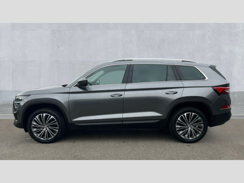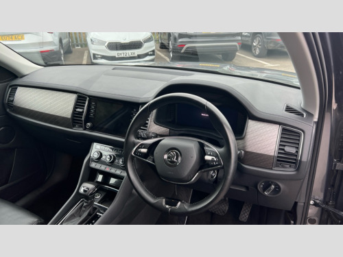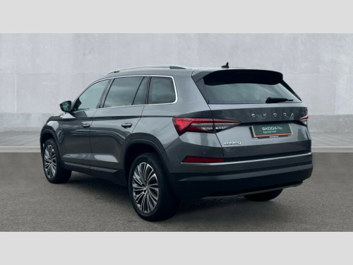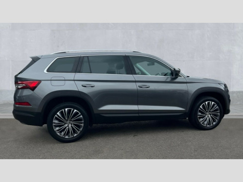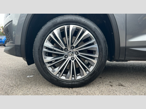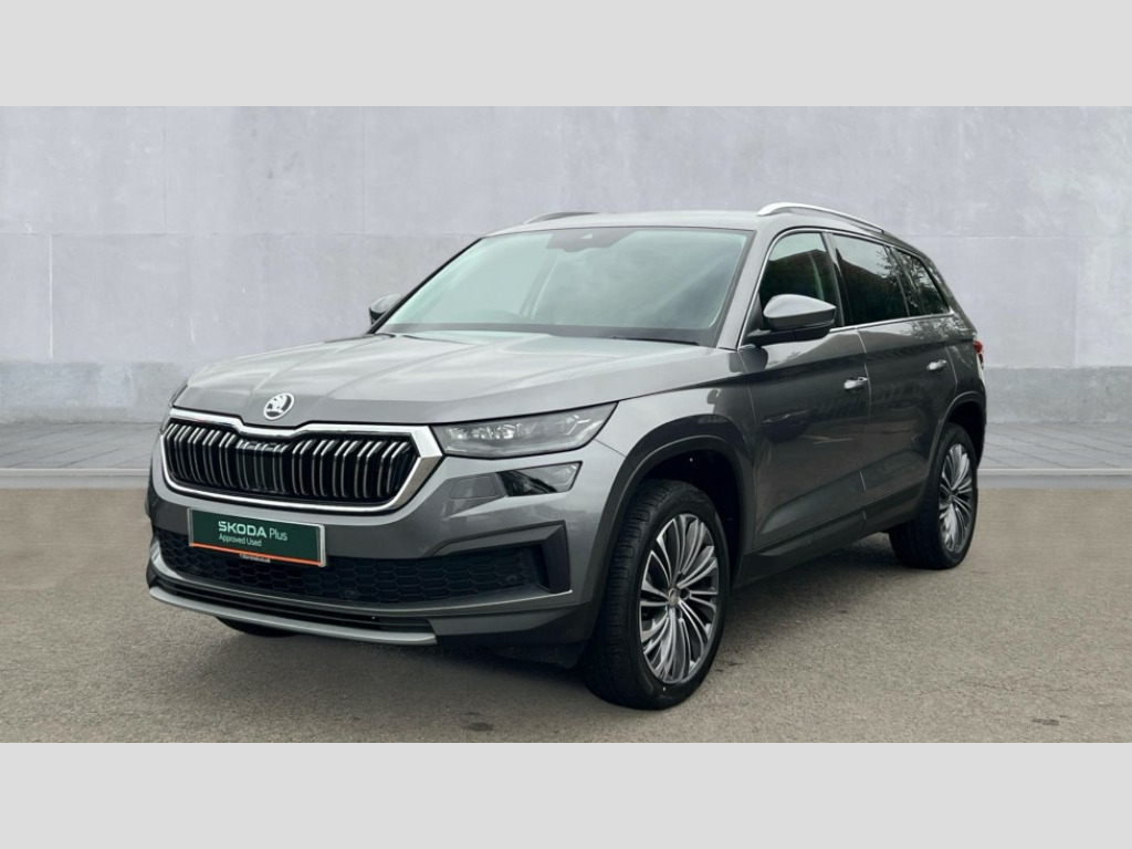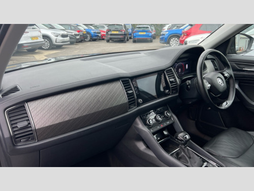Skoda Kodiaq 2.0 TDI SE L Executive 5dr DSG [7 Seat] Bluetooth system, Digital voice enhancement, e call+, ECO Stop/start function, Exterior temperature indicator, Rear view camera, Smartlink wireless for apple carplay and wired for android auto, Speed limiter, Tailgate unlocking from outside, USB C Port x 2 in front centre console, Wireless charging, 8 Speakers, DAB Digital radio, Aero front windscreen wipers with intermittent function, Aero rear window wiper, Auto dimming rear view mirror, Black wheel arch surrounds, Body colour bumpers, Body colour door mirrors and handles, Chrome front grille, Chrome roof rails with chrome window surround, Daytime running lights, Electric adjustable/heated/folding door mirrors, driver side auto dimming with boarding sports and memory function, Electric front and rear windows, Extended rear spoiler with finlets in gloss black, Front fog lights, Full LED matrix headlights with AFS (adaptive front light system), cornering function and AWL (all weather lighting system), Headlight washers, Heated rear window, Invisible tailpipe, LED rear fog light, LED third brake light in rear spoiler, Light assistant (coming/leaving home/tunnel light), Off-road style lower front bumper element, Privacy glass, Rain and light sensors, Rear LED lights (high functionality) with welcome effect and dynamic indicators, Rear side wing doors, Safety reflectors on front and rear doors, Window control switches with black trim, 12V socket in boot, 2 rails with 2 hooks, 2 seat bench in 3rd row, 3 seat bench in 2nd row, 4 foldable roof handles with rear coat hooks, 60:40 foldable rear seat with sliding adjustment and backrest angle adjustment, Bottle holders in door panel in the 1.5 litre front and 1 litre rear, Cargo storage compartments, Chrome headlight control button, Chrome interior door handles, Coat hooks on B pillar, Covered storage compartment on driver side, Decorative door sill covers, Front centre armrest with storage compartment, cup holder and 12V socket, Front courtesy lights, Gear shift lever with chrome frame and black gloss insert, Grey stitching in front and rear armrests and door armrests + door inserts, Height adjustable front headrests, Illuminated and cooled glovebox, Illuminated luggage compartment, Isofix child seat fittings in outer rear seats with top tether, Manually adjustable steering column, Net programme in boot (1x horizontal Net, 2x vertical Nets), Overhead glasses storage compartment, Pollen filter, Rear centre armrest with cupholders, Single front passenger seat, Sliding trunk cover, Small Bags on the inner sides of the front backrests, Sunvisors with illuminated vanity mirrors, Three rear height adjustable headrests, Ticket holder on A Pillar, Umbrella in door panel, Variable boot floor, Auto door release and activation of warning lights in the event of an accident, Child locks on rear doors, Driver and front passenger airbag with knee airbag and front passenger airbag deactivation, Electronic parking brake with hill start assist, Emergency rear braking signal, ESC (incl. ABS+MSR+ASR+EDS+HBA+DSR+RBS+MKB), Front assist with autonomous emergency braking, Front side airbags with curtain airbags, Fuel cut off safety device, Height adjustable front 3 point seatbelts + pretensioners, Hill hold control, Rear disc brakes, Safety vest holder in door, Seat belt reminder for all seats, Three point rear seat belts, Two tone horn, Tyre pressure monitor, Alarm with interior monitoring and tilt sensor with safe function, Anti-theft wheel bolts, Immobiliser, Keyless entry and start system (KESSY), Remote central locking with 2 keys, Grey stitching in dashboard, Linear diamonds decorative inserts, Temporary spare wheel (space saver)