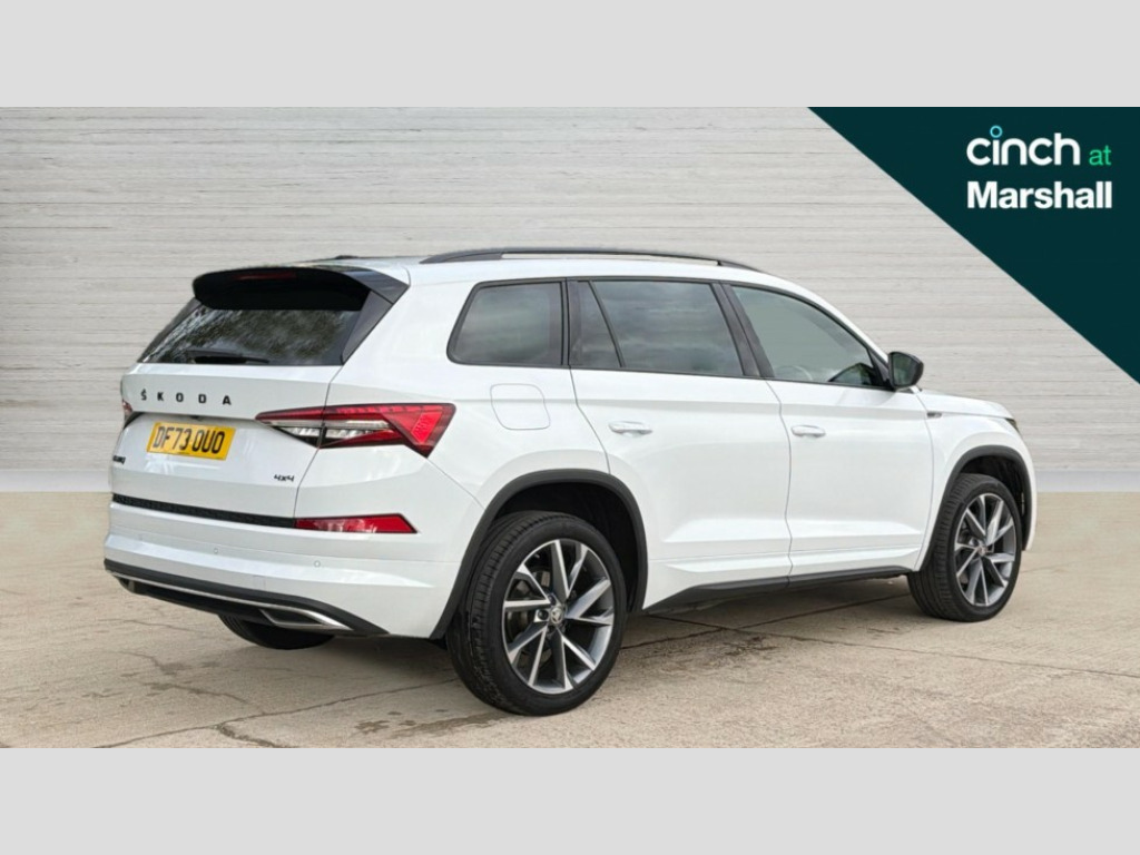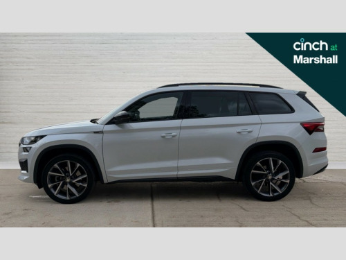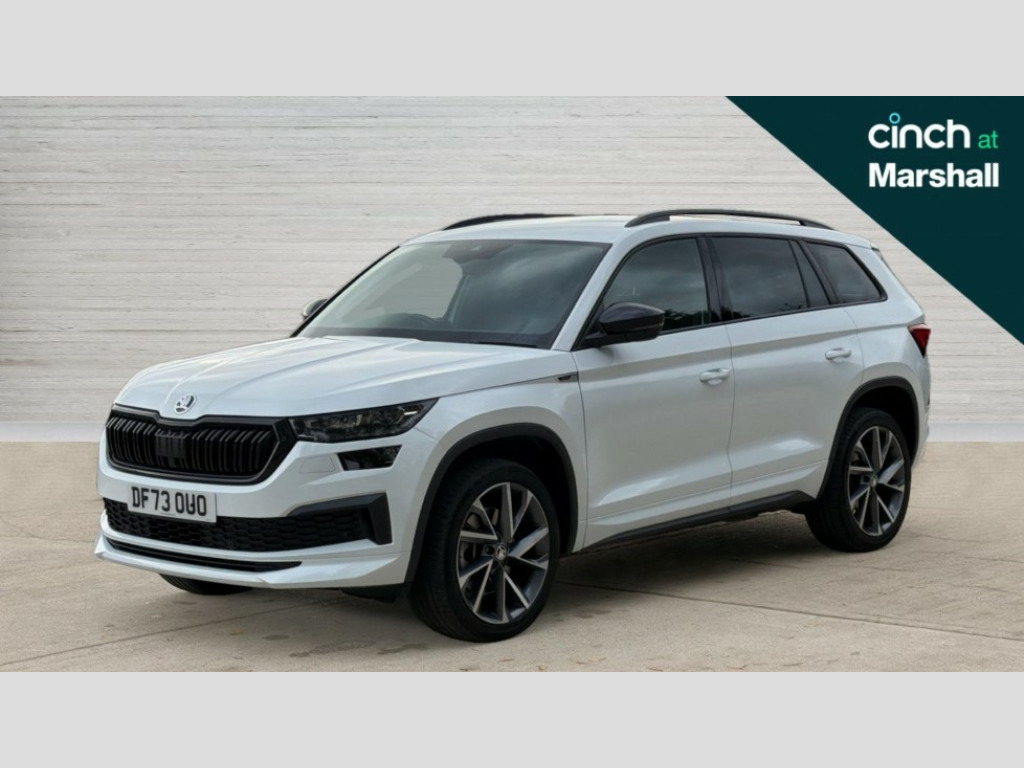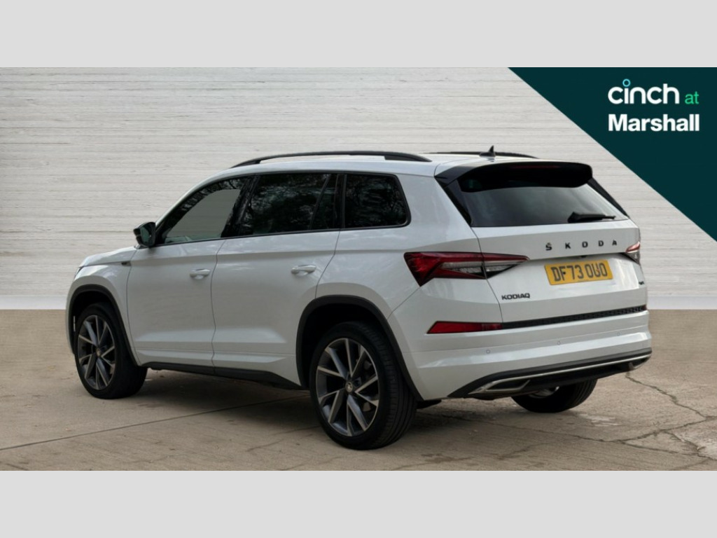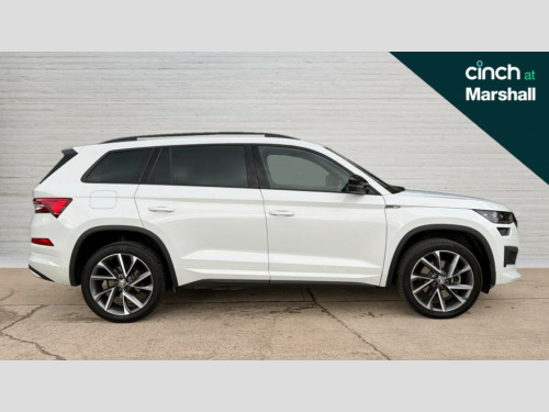 Skoda Kodiaq 2.0 TDI Sport Line 4x4 5dr DSG [7 Seat] Bluetooth system, Columbus satellite navigation with 9.2" touchscreen, integrated Wi-Fi, web radio, Digital voice enhancement, e call+, ECO Stop/start function, Exterior temperature indicator, Progressive steering, Rear view camera, Smartlink wireless for apple carplay and wired for android auto, Speed limiter, Tailgate unlocking from outside, USB C Port x 2 in front centre console, Virtual Cockpit - 10.25" digital display with additional sports design, Wireless charging, 8 Speakers, DAB Digital radio, Aero front windscreen wipers with intermittent function, Aero rear window wiper, Auto dimming rear view mirror, Black roof rails, Black sports styling including front grille and window surrounds, Black wheel arch surrounds, Body colour bumpers, Body colour door handles, Electric adjustable/heated/folding door mirrors, driver side auto dimming with boarding sports and memory function, Electric front and rear windows, Extended rear spoiler with finlets in gloss black, Front fog lights, Full LED matrix headlights with AFS (adaptive front light system), cornering function and AWL (all weather lighting system), Gloss black door mirrors, Headlight washers, Heated rear window, Invisible tailpipe, LED daytime running lights, LED rear fog light, LED third brake light in rear spoiler, Light assistant (coming/leaving home/tunnel light), Off-road style lower front bumper element, Privacy glass, Rain and light sensors, Rear diffuser, Rear LED lights (high functionality) with welcome effect and dynamic indicators, Rear side wing doors, Safety reflectors on front and rear doors, Sportline badge on front fender, Sports front and rear bumpers including lower rear chrome strip, Tailgate lettering in Black, Window control switches with black trim, Without engine designation, 12V socket in boot, 2 rails with 2 hooks, 2 seat bench in 3rd row, 3 seat bench in 2nd row, 3 spoke leather multifunction sports steering wheel with DSG paddles, 4 foldable roof handles with rear coat hooks, 60:40 foldable rear seat with sliding adjustment and backrest angle adjustment, Aluminium pedals, Black roof headlining, Bottle holders in door panel in the 1.5 litre front and 1 litre rear, Cargo storage compartments, Chrome headlight control button, Chrome interior door handles, Coat hooks on B pillar, Covered storage compartment on driver side, Decorative door sill covers, Front and rear door armrest with black adductor trim, Front centre armrest with storage compartment, cup holder and 12V socket, Front courtesy lights, Gear shift lever with chrome frame and black gloss insert, Grey stitching in front and rear armrests and door armrests + door inserts, Height adjustable front headrests, Illuminated glovebox, Illuminated luggage compartment, Isofix child seat fittings in outer rear seats with top tether, Manually adjustable steering column, Microsuede door panels, Net programme in boot (1x horizontal Net, 2x vertical Nets), Overhead glasses storage compartment, Pollen filter, Rear centre armrest with cupholders, Single front passenger seat, Sliding trunk cover, Small Bags on the inner sides of the front backrests, Sports seats, Sunvisors with illuminated vanity mirrors, Three rear height adjustable headrests, Ticket holder on A Pillar, Umbrella in door panel, Variable boot floor, LED Interior light pack - Kodiaq, Auto door release and activation of warning lights in the event of an accident, Driver and front passenger airbag with knee airbag and front passenger airbag deactivation, Electronic parking brake with hill start assist, Emergency rear braking signal, ESC (incl. ABS+MSR+ASR+EDS+HBA+DSR+RBS+MKB), Front assist with autonomous emergency braking, Front side airbags with curtain airbags, Fuel cut off safety device, Height adjustable front 3 point seatbelts + pretensioners, Hill hold control, Rear disc brakes, Safety vest holder in door, Seat belt reminder for all seats, Three point rear seat belts, Two tone horn, Tyre pressure monitor, Alarm with interior monitoring and tilt sensor with safe function, Anti-theft wheel bolts, Immobiliser, Keyless entry and start system (KESSY), Remote central locking with 2 keys, Black air vent surround, Carbon finish dashboard and door inserts, Grey stitching in dashboard, 20" Vega Anthracite alloy wheels, Temporary spare wheel (space saver)