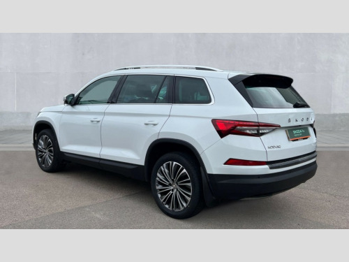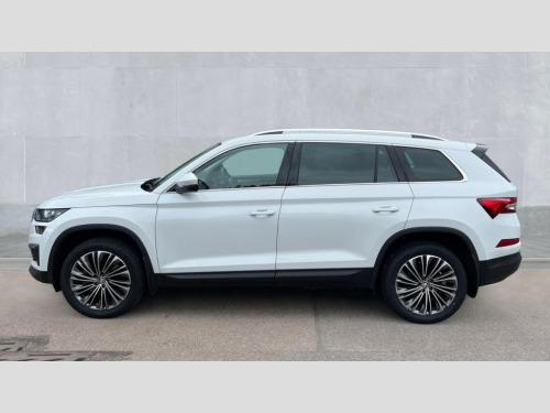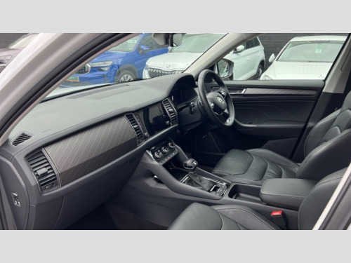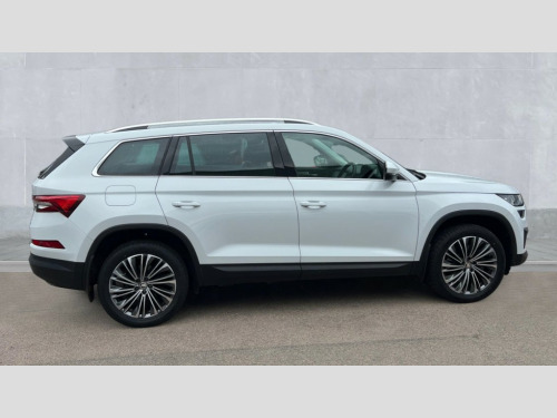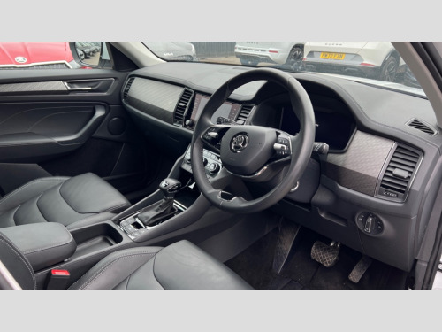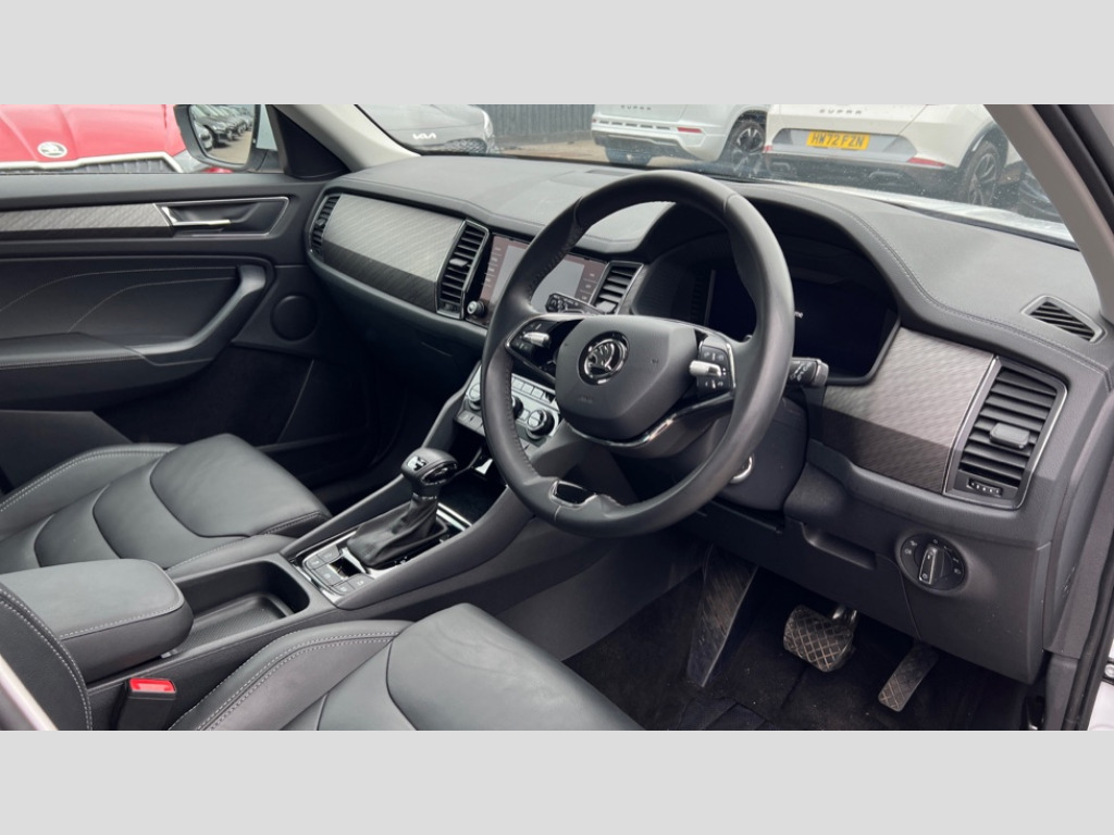 Skoda Kodiaq 2.0 TSI 190 SE L Executive 4x4 5dr DSG [7 Seat] Bluetooth system, Digital voice enhancement, e call+, ECO Stop/start function, Exterior temperature indicator, Rear view camera, Smartlink wireless for apple carplay and wired for android auto, Speed limiter, Tailgate unlocking from outside, USB C Port x 2 in front centre console, Virtual Cockpit - 10.25" digital display, Wireless charging, 8 Speakers, DAB Digital radio, Aero front windscreen wipers with intermittent function, Aero rear window wiper, Auto dimming rear view mirror, Black wheel arch surrounds, Body colour bumpers, Body colour door mirrors and handles, Chrome front grille, Chrome roof rails with chrome window surround, Electric adjustable/heated/folding door mirrors, driver side auto dimming with boarding sports and memory function, Electric front and rear windows, Extended rear spoiler with finlets in gloss black, Front fog lights, Full LED matrix headlights with AFS (adaptive front light system), cornering function and AWL (all weather lighting system), Headlight washers, Heated rear window, Invisible tailpipe, LED daytime running lights, LED rear fog light, LED third brake light in rear spoiler, Light assistant (coming/leaving home/tunnel light), Off-road style lower front bumper element, Privacy glass, Rain and light sensors, Rear LED lights (high functionality) with welcome effect and dynamic indicators, Rear side wing doors, Safety reflectors on front and rear doors, Window control switches with black trim, Without engine designation, 12V socket in boot, 2 rails with 2 hooks, 2 seat bench in 3rd row, 2 spoke multi-function leather steering wheel with paddle shift, 3 seat bench in 2nd row, 4 foldable roof handles with rear coat hooks, 60:40 foldable rear seat with sliding adjustment and backrest angle adjustment, Bottle holders in door panel in the 1.5 litre front and 1 litre rear, Cargo storage compartments, Chrome headlight control button, Chrome interior door handles, Coat hooks on B pillar, Covered storage compartment on driver side, Decorative door sill covers, Front and rear door armrest with black adductor trim, Front centre armrest with storage compartment, cup holder and 12V socket, Front courtesy lights, Gear shift lever with chrome frame and black gloss insert, Grey stitching in front and rear armrests and door armrests + door inserts, Height adjustable front headrests, Illuminated glovebox, Illuminated luggage compartment, Isofix child seat fittings in outer rear seats with top tether, Manually adjustable steering column, Net programme in boot (1x horizontal Net, 2x vertical Nets), Overhead glasses storage compartment, Pollen filter, Rear centre armrest with cupholders, Single front passenger seat, Sliding trunk cover, Small Bags on the inner sides of the front backrests, Sunvisors with illuminated vanity mirrors, Three rear height adjustable headrests, Ticket holder on A Pillar, Umbrella in door panel, Variable boot floor, Auto door release and activation of warning lights in the event of an accident, Driver and front passenger airbag with knee airbag and front passenger airbag deactivation, Electronic parking brake with hill start assist, Emergency rear braking signal, ESC (incl. ABS+MSR+ASR+EDS+HBA+DSR+RBS+MKB), Front assist with autonomous emergency braking, Front side airbags with curtain airbags, Fuel cut off safety device, Height adjustable front 3 point seatbelts + pretensioners, Hill hold control, Rear disc brakes, Safety vest holder in door, Seat belt reminder for all seats, Three point rear seat belts, Two tone horn, Tyre pressure monitor, Alarm with interior monitoring and tilt sensor with safe function, Anti-theft wheel bolts, Immobiliser, Keyless entry and start system (KESSY), Remote central locking with 2 keys, Grey stitching in dashboard, Linear diamonds decorative inserts, Temporary spare wheel (space saver)