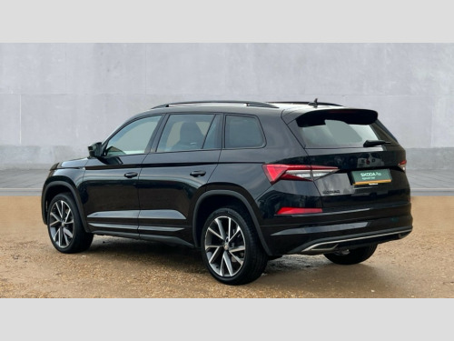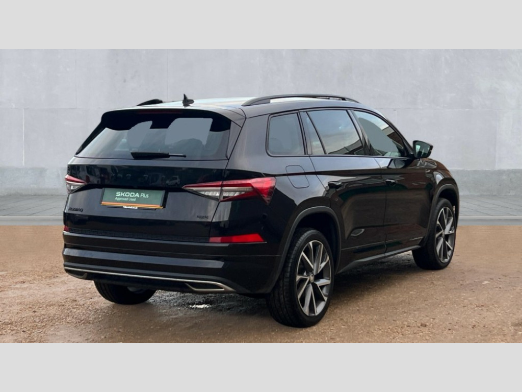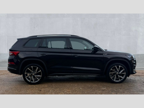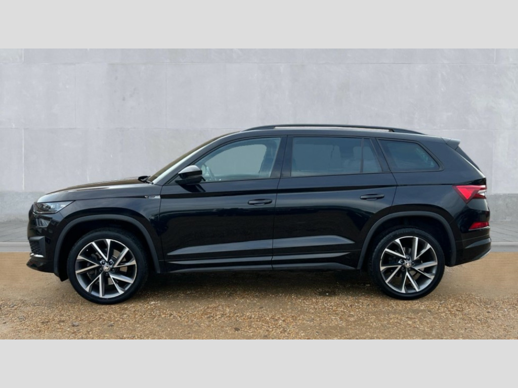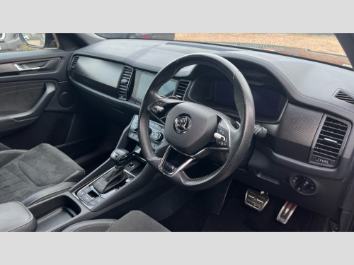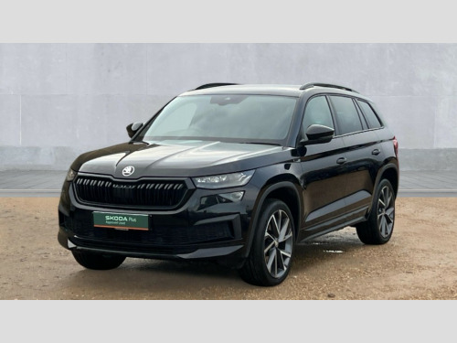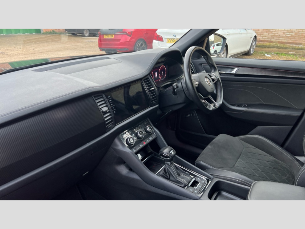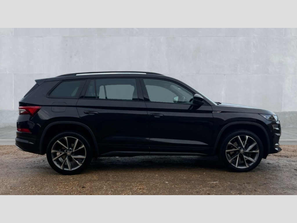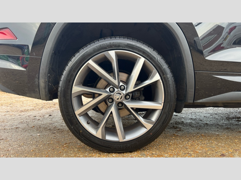 Skoda Kodiaq 2.0 TSI 190 Sport Line 4x4 5dr DSG [7 Seat] Bluetooth system, Columbus satellite navigation with 9.2" touchscreen, integrated Wi-Fi, web radio, Digital voice enhancement, e call+, ECO Stop/start function, Exterior temperature indicator, Progressive steering, Rear view camera, Smartlink wireless for apple carplay and wired for android auto, Speed limiter, Tailgate unlocking from outside, USB C Port x 2 in front centre console, Virtual Cockpit - 10.25" digital display with additional sports design, Wireless charging, 8 Speakers, DAB Digital radio, Aero front windscreen wipers with intermittent function, Aero rear window wiper, Auto dimming rear view mirror, Black roof rails, Black sports styling including front grille and window surrounds, Black wheel arch surrounds, Body colour bumpers, Body colour door handles, Electric adjustable/heated/folding door mirrors, driver side auto dimming with boarding sports and memory function, Electric front and rear windows, Extended rear spoiler with finlets in gloss black, Front fog lights, Full LED matrix headlights with AFS (adaptive front light system), cornering function and AWL (all weather lighting system), Gloss black door mirrors, Headlight washers, Heated rear window, Invisible tailpipe, LED daytime running lights, LED rear fog light, LED third brake light in rear spoiler, Light assistant (coming/leaving home/tunnel light), Off-road style lower front bumper element, Privacy glass, Rain and light sensors, Rear diffuser, Rear LED lights (high functionality) with welcome effect and dynamic indicators, Rear side wing doors, Safety reflectors on front and rear doors, Sportline badge on front fender, Sports front and rear bumpers including lower rear chrome strip, Tailgate lettering in Black, Window control switches with black trim, Without engine designation, 12V socket in boot, 2 rails with 2 hooks, 2 seat bench in 3rd row, 3 seat bench in 2nd row, 4 foldable roof handles with rear coat hooks, 60:40 foldable rear seat with sliding adjustment and backrest angle adjustment, Aluminium pedals, Black roof headlining, Bottle holders in door panel in the 1.5 litre front and 1 litre rear, Cargo storage compartments, Chrome headlight control button, Chrome interior door handles, Coat hooks on B pillar, Covered storage compartment on driver side, Decorative door sill covers, Front centre armrest with storage compartment, cup holder and 12V socket, Front courtesy lights, Gear shift lever with chrome frame and black gloss insert, Grey stitching in front and rear armrests and door armrests + door inserts, Height adjustable front headrests, Illuminated and cooled glovebox, Illuminated luggage compartment, Isofix child seat fittings in outer rear seats with top tether, Manually adjustable steering column, Microsuede door panels, Net programme in boot (1x horizontal Net, 2x vertical Nets), Overhead glasses storage compartment, Pollen filter, Rear centre armrest with cupholders, Single front passenger seat, Sliding trunk cover, Small Bags on the inner sides of the front backrests, Sports seats, Sunvisors with illuminated vanity mirrors, Three rear height adjustable headrests, Ticket holder on A Pillar, Umbrella in door panel, Variable boot floor, LED Interior light pack - Kodiaq, Auto door release and activation of warning lights in the event of an accident, Child locks on rear doors, Driver and front passenger airbag with knee airbag and front passenger airbag deactivation, Electronic parking brake with hill start assist, Emergency rear braking signal, ESC (incl. ABS+MSR+ASR+EDS+HBA+DSR+RBS+MKB), Front assist with autonomous emergency braking, Front side airbags with curtain airbags, Fuel cut off safety device, Height adjustable front 3 point seatbelts + pretensioners, Hill hold control, Rear disc brakes, Safety vest holder in door, Seat belt reminder for all seats, Three point rear seat belts, Two tone horn, Tyre pressure monitor, Alarm with interior monitoring and tilt sensor with safe function, Anti-theft wheel bolts, Immobiliser, Keyless entry and start system (KESSY), Remote central locking with 2 keys, Black air vent surround, Carbon finish dashboard and door inserts, Grey stitching in dashboard, 20" Vega Anthracite alloy wheels, Temporary spare wheel (space saver)
