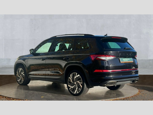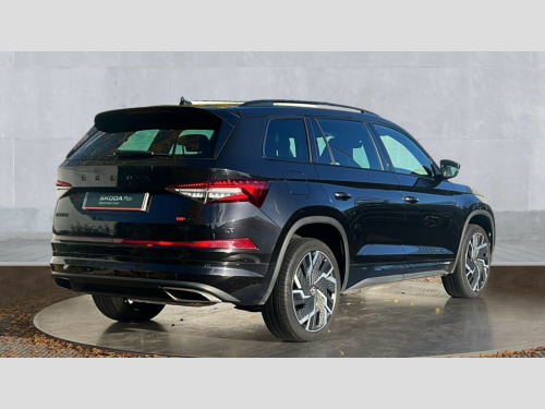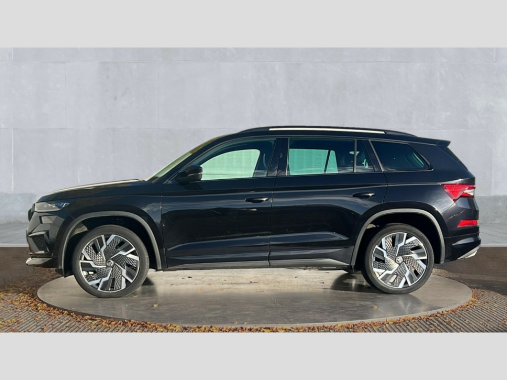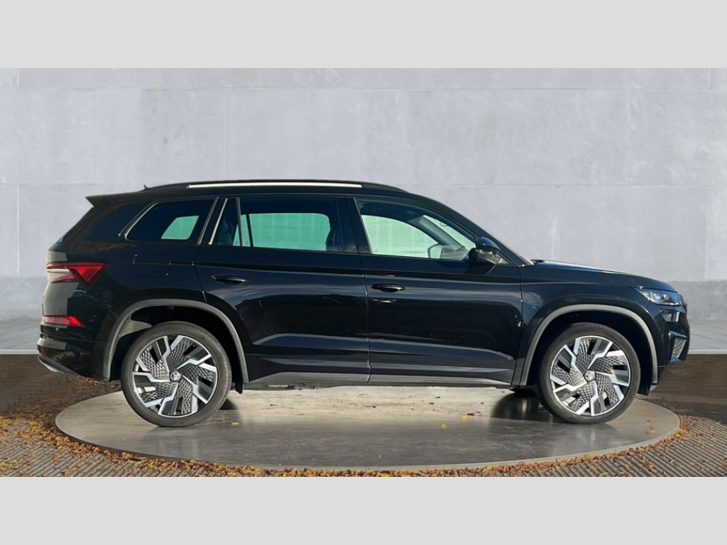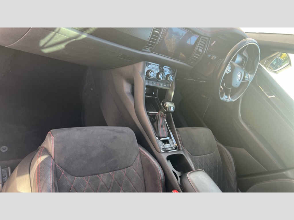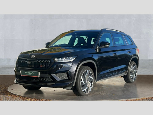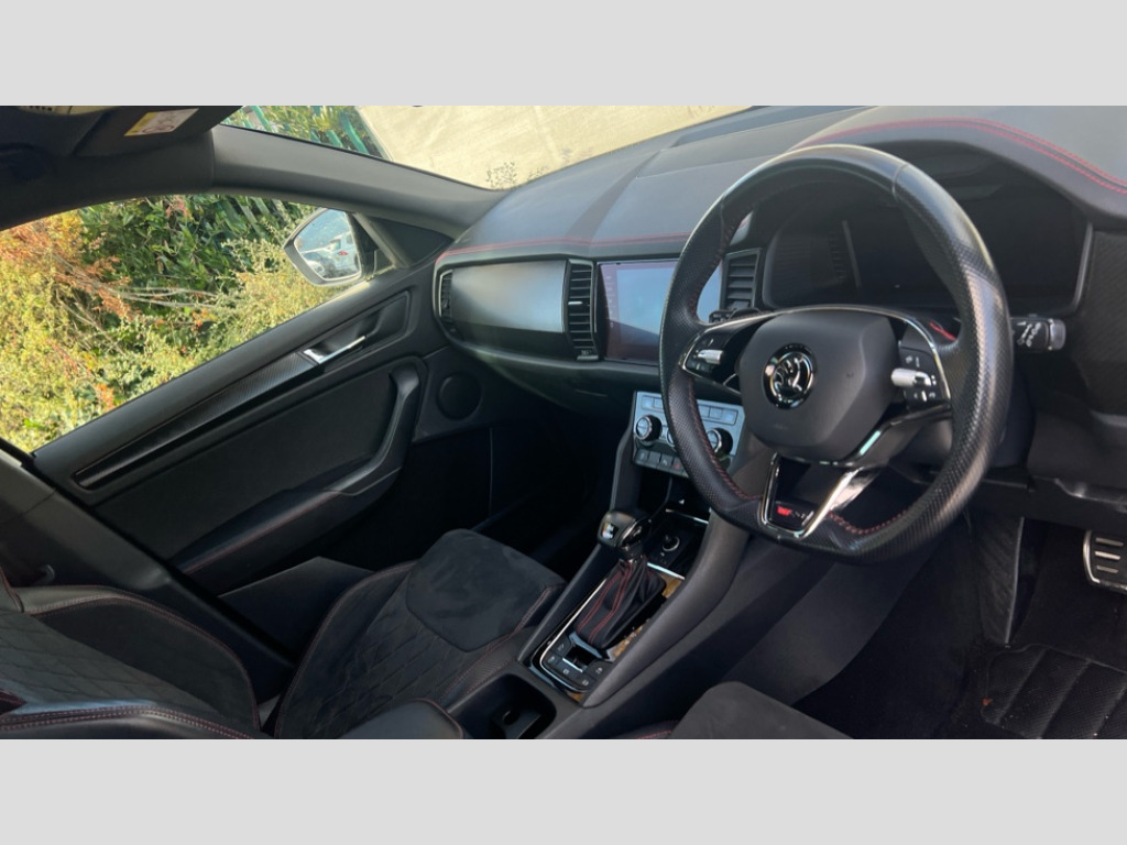 Skoda Kodiaq 2.0 TSI 245 vRS 4x4 5dr DSG [7 Seat] Bluetooth system, Columbus satellite navigation with 9.2" touchscreen, integrated Wi-Fi, web radio, E-call, ECO Stop/start function, Exterior temperature indicator, Progressive steering, Rear view camera, Smartlink wireless for apple carplay and wired for android auto, Speed limiter, Tailgate unlocking from outside, USB C Port x 2 in front centre console, Virtual Cockpit - 10.25" digital display, Wireless charging, Dynamic Chassis Control including off-road function, 8 Speakers, DAB Digital radio, Dynamic sound booster, Aero front windscreen wipers with intermittent function, Aero rear window wiper, Auto dimming rear view mirror, Black wheel arch surrounds, Body colour bumpers, Body colour door handles, Chrome exhaust tailpipe, Electric adjustable/heated/folding door mirrors, driver side auto dimming with boarding sports and memory function, Electric front and rear windows, Extended rear spoiler with finlets in gloss black, Front fog lights, Full LED matrix headlights with AFS (adaptive front light system), cornering function and AWL (all weather lighting system), Gloss black door mirrors, Gloss black roof rails, Heated rear window, LED daytime running lights, LED rear fog light, LED third brake light in rear spoiler, Light assistant (coming/leaving home/tunnel light), Off-road style lower front bumper element, Privacy glass, Rain and light sensors, Rear diffuser, Rear LED lights (high functionality) with welcome effect and dynamic indicators, Rear side wing doors, Safety reflectors on front and rear doors, vRS exterior design - vRS front and rear bumpers with vRS badging (gloss black on tailgate and chrome on radiator grille) + black window surround, Window control switches with black trim, Without engine designation, 12V socket in boot, 2 rails with 2 hooks, 2 seat bench in 3rd row, 3 seat bench in 2nd row, 4 foldable roof handles with rear coat hooks, 60:40 foldable rear seat with sliding adjustment and backrest angle adjustment, Aluminium pedals, Black roof headlining, Bottle holders in door panel in the 1.5 litre front and 1 litre rear, Cargo storage compartments, Chrome headlight control button, Chrome interior door handles, Coat hooks on B pillar, Covered storage compartment on driver side, Decorative door sills in the front and rear, Front centre armrest with storage compartment, cup holder and 12V socket, Front courtesy lights, Gear shift lever with chrome frame and black gloss insert with vRS logo, Height adjustable front headrests, Illuminated and cooled glovebox, Illuminated luggage compartment, Isofix child seat fittings in outer rear seats with top tether, Manually adjustable steering column, Microsuede door panels with vRS black stitching, Net programme in boot (1x horizontal Net, 2x vertical Nets), Overhead glasses storage compartment, Pollen filter, Rear centre armrest with cupholders, Single front passenger seat, Sliding trunk cover, Small Bags on the inner sides of the front backrests, Sports seats, Sunvisors with illuminated vanity mirrors, Three rear height adjustable headrests, Ticket holder on A Pillar, Umbrella in door panel, Variable boot floor, vRS red stitching in front and rear armrests and door panel armrests, LED Interior light pack - Kodiaq, Auto door release and activation of warning lights in the event of an accident, Child locks on rear doors, Driver and front passenger airbag with knee airbag and front passenger airbag deactivation, Electronic parking brake with hill start assist, Emergency rear braking signal, ESC (incl. ABS+MSR+ASR+EDS+HBA+DSR+RBS+MKB), Front assist with autonomous emergency braking, Front side airbags with curtain airbags, Fuel cut off safety device, Height adjustable front 3 point seatbelts + pretensioners, Hill hold control, Rear disc brakes, Red brake calipers, Safety vest holder in door, Seat belt reminder for all seats, Three point rear seat belts, Two tone horn, Tyre pressure monitor, Alarm with interior monitoring and tilt sensor with safe function, Anti-theft wheel bolts, Immobiliser, Keyless entry and start system (KESSY), Remote central locking with 2 keys, Black air vent surround, Carbon finish dashboard and door inserts, Red stitching in dashboard, 20" Sagitarius anthracite alloy wheels with aero covers, Temporary spare wheel (space saver)