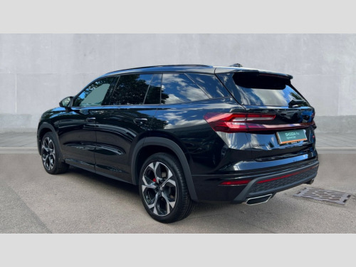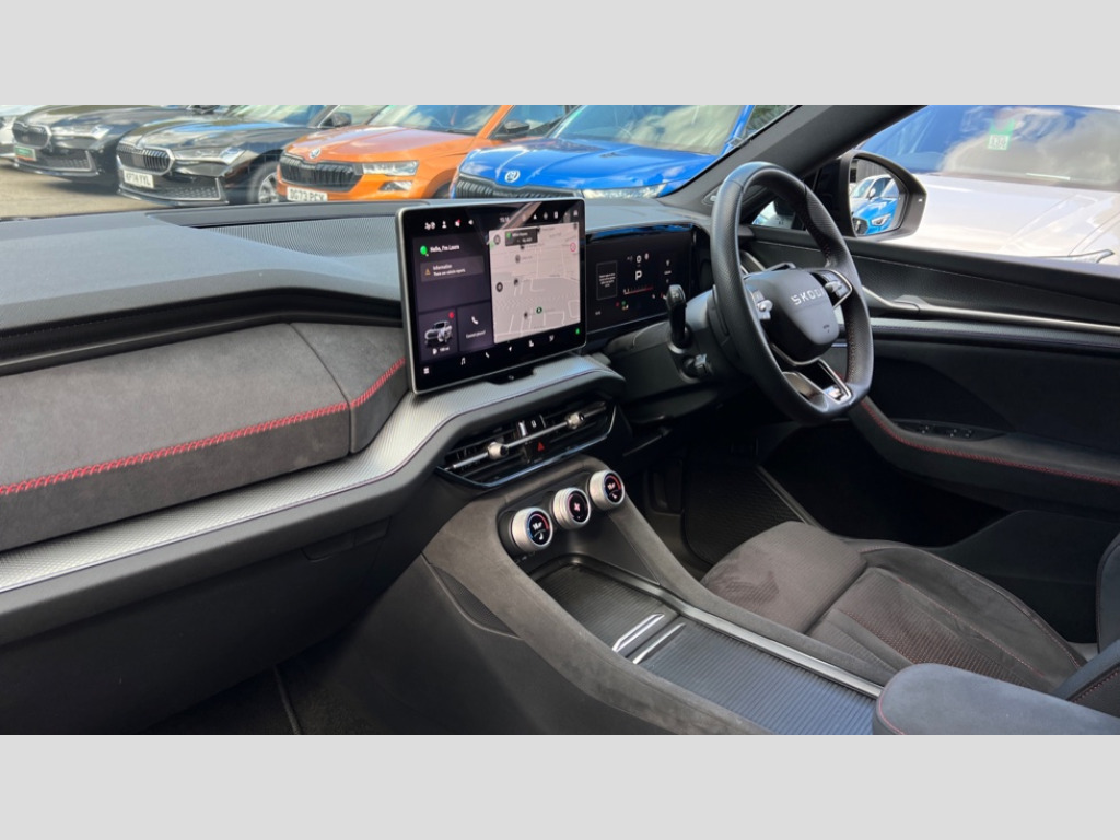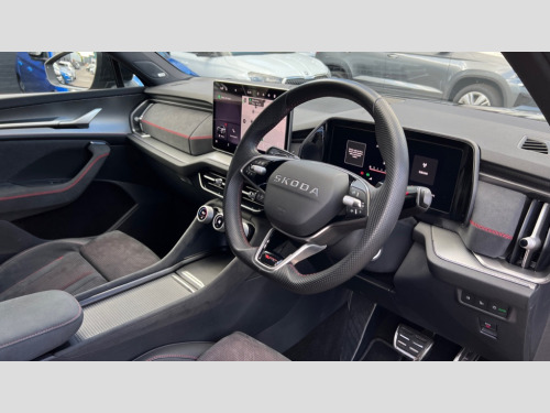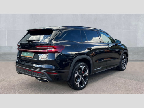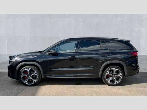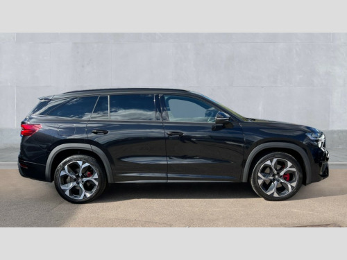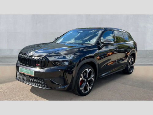 Skoda Kodiaq 2.0 TSI vRS 4X4 5dr DSG [7 Seat] 13" satellite navigation touchscreen display, Blind spot detection with door exit warning, Bluetooth system, ChatGPT functionality, Driver alert - Fatigue and drowsiness monitor, Dry display cleaner, Emergency call, Front and rear parking sensors, Front cross traffic assist, Lane assist, Off road modes, PAS, Rear traffic assist, Tailgate unlocking from outside, Traffic sign recognition, USB C Port x 2 in front centre console, Virtual Cockpit - 10.25" digital display, Voice control system, Wireless charging for two smartphones (15W) with cooling function, Wireless SmartLink for Apple CarPlay and Android Auto, Stop/start function, 2x USB-C in the rear, DAB Digital radio, Dynamic sound booster, Aero front windscreen wipers with intermittent function, Auto dimming rear view mirror, AWL (all weather lighting) and all weather light with cornering function, Black roof rails, Black vRS styling including front grille surround and upper part of window surround, Black wheel arch surrounds, Body colour door handles, Cornering light and poor weather light, Electric folding /adjustable/separted heated/folding door mirrors, auto dimming with boarding sports and memory function, Electric front and rear windows, Exterior black decorative trims, Gloss black door mirrors, Gloss black window frame and D pillar, Heat insulating glass in windshield, Heated rear window, Ice scraper in fuel tank cap, LED daytime running lights, LED third brake light in rear spoiler, Light assistant with automatic headlight control and coming home feature, Logo projection in door mirrors, Privacy glass, Rear roof spoiler, Rear side wing doors, Rear window wiper, Red decorative strip between rear LED lights, Safety reflectors on front and rear doors, Tailgate lettering in Black, Unique dark chrome design logo on alloy wheels, vRS badging on front grille and tailgate, vRS front and rear bumpers, vRS rear diffuser and visible tailpipe in stainless steel, Window control switches with black trim, Windscreen wipers with rain sensor, Without engine designation, 1.5l bottle holder points in all door, 1x centre rear reading light, 2 seat bench in 3rd row, 3 configurable smart dials with 32mm coloured display, 3 seat bench in 2nd row, 4 foldable roof handles with rear coat hooks, Aluminium pedals, Ambient interior lighting - Dashboard, front-door stowage compartments, front and rear door panels and footwell lighting, Automatic gear selector on steering column, Chrome interior door handles, Driver/front passenger reading lights, Fabric headlining, Fixed bench 40:60:40 split folding backrests, Front and rear floor mats, Front centre armrest with jumbo box storage compartment, cup holder and 12V socket, Front sport seats, Height adjustable front headrests, Interior black decorative trims, Isofix child seat fittings in outer middle row rear seats and front passenger with top tether, Manually adjustable steering column, Pollen filter, Rear centre armrest with cupholders, Rear seat boot backrest release, Single front passenger seat, Skoda lettering on steering wheel, Storage pocket including mobile phone pockets on the backs of the front seats, Sunvisors with illuminated vanity mirrors, Three rear height adjustable headrests, Ticket holder on A Pillar, Tri zone climate control, Umbrella in door panel x1 made from sustainable materials, Upper and lower glovebox with card holder and coin compartment, USB C port by rear view mirror for charging only (15W), Acoustic package - Kodiaq, Convenience plus pack - Kodiaq SE L/Sport Line/vRS, Light and view plus package - Kodiaq, Performance package - Kodiaq vRS, Simply clever cargo package - Kodiaq, Auto door release and activation of warning lights in the event of an accident, Driver and front passenger airbag with knee airbag and front passenger airbag deactivation, Electric child locks, Electronic parking brake, ESC (incl. ABS+EMD+MSR+ASR+EDL+HBA+DSR+RBS+ESBS+MCB+TSA+XDS), Front assist with braking reaction to vehicles, pedestrians and cyclists, Front disc brakes, Fuel cut off safety device, Height adjustable front 3 point seatbelts + pretensioners, Hill hold assist, Junction assist with automatic emergency braking, Rear disc brakes, Red brake calipers, Safety vest holder in door, Seat belt reminder for all seats, Three point rear seat belts, Two tone horn, Tyre pressure monitor, Alarm with interior monitoring and tilt sensor with safe function, Anti-theft wheel bolts, Immobiliser, Remote central locking with 2 keys, 20" Elias black polished alloy wheel