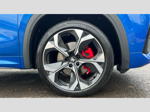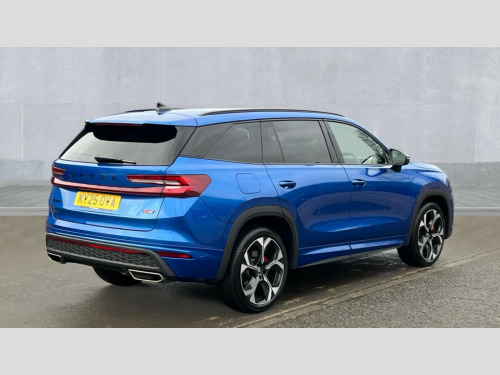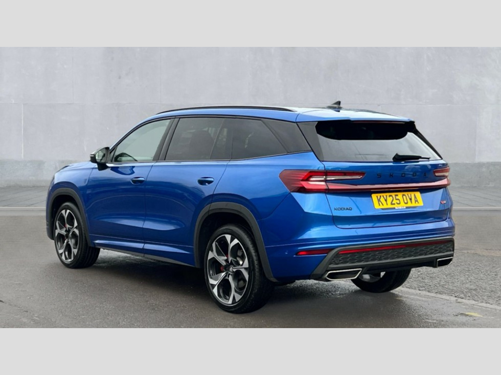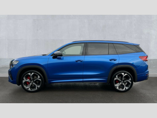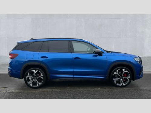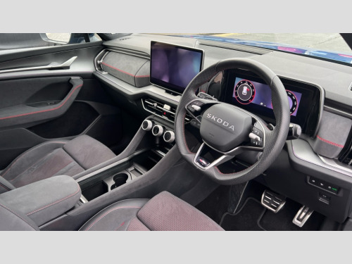 Skoda Kodiaq 2.0 TSI vRS 4X4 5dr DSG [7 Seat] 13" satellite navigation touchscreen display, Blind spot detection with door exit warning, Bluetooth system, ChatGPT functionality, Driver alert - Fatigue and drowsiness monitor, Dry display cleaner, Emergency call, Front and rear parking sensors, Front cross traffic assist, Lane assist, Off road modes, PAS, Rear traffic assist, Tailgate unlocking from outside, Traffic sign recognition, USB C Port x 2 in front centre console, Virtual Cockpit - 10.25" digital display, Voice control system, Wireless charging for two smartphones (15W) with cooling function, Wireless SmartLink for Apple CarPlay and Android Auto, Stop/start function, 2x USB-C in the rear, DAB Digital radio, Dynamic sound booster, Aero front windscreen wipers with intermittent function, Auto dimming rear view mirror, AWL (all weather lighting) and all weather light with cornering function, Black roof rails, Black vRS styling including front grille surround and upper part of window surround, Black wheel arch surrounds, Body colour door handles, Cornering light and poor weather light, Electric folding /adjustable/separted heated/folding door mirrors, auto dimming with boarding sports and memory function, Electric front and rear windows, Exterior black decorative trims, Gloss black door mirrors, Gloss black window frame and D pillar, Heat insulating glass in windshield, Heated rear window, Ice scraper in fuel tank cap, LED daytime running lights, LED third brake light in rear spoiler, Light assistant with automatic headlight control and coming home feature, Logo projection in door mirrors, Privacy glass, Rear roof spoiler, Rear side wing doors, Rear window wiper, Red decorative strip between rear LED lights, Safety reflectors on front and rear doors, Tailgate lettering in Black, Unique dark chrome design logo on alloy wheels, vRS badging on front grille and tailgate, vRS front and rear bumpers, vRS rear diffuser and visible tailpipe in stainless steel, Window control switches with black trim, Windscreen wipers with rain sensor, Without engine designation, 1.5l bottle holder points in all door, 1x centre rear reading light, 2 seat bench in 3rd row, 3 configurable smart dials with 32mm coloured display, 3 seat bench in 2nd row, 4 foldable roof handles with rear coat hooks, Aluminium pedals, Ambient interior lighting - Dashboard, front-door stowage compartments, front and rear door panels and footwell lighting, Automatic gear selector on steering column, Chrome interior door handles, Driver/front passenger reading lights, Fabric headlining, Fixed bench 40:60:40 split folding backrests, Front and rear floor mats, Front centre armrest with jumbo box storage compartment, cup holder and 12V socket, Front sport seats, Height adjustable front headrests, Interior black decorative trims, Isofix child seat fittings in outer middle row rear seats and front passenger with top tether, Manually adjustable steering column, Pollen filter, Rear centre armrest with cupholders, Rear seat boot backrest release, Single front passenger seat, Skoda lettering on steering wheel, Storage pocket including mobile phone pockets on the backs of the front seats, Sunvisors with illuminated vanity mirrors, Three rear height adjustable headrests, Ticket holder on A Pillar, Tri zone climate control, Umbrella in door panel x1 made from sustainable materials, Upper and lower glovebox with card holder and coin compartment, USB C port by rear view mirror for charging only (15W), Acoustic package - Kodiaq, Convenience plus pack - Kodiaq SE L/Sport Line/vRS, Light and view plus package - Kodiaq, Performance package - Kodiaq vRS, Simply clever cargo package - Kodiaq, Auto door release and activation of warning lights in the event of an accident, Driver and front passenger airbag with knee airbag and front passenger airbag deactivation, Electric child locks, Electronic parking brake, ESC (incl. ABS+EMD+MSR+ASR+EDL+HBA+DSR+RBS+ESBS+MCB+TSA+XDS), Front assist with braking reaction to vehicles, pedestrians and cyclists, Front disc brakes, Fuel cut off safety device, Height adjustable front 3 point seatbelts + pretensioners, Hill hold assist, Junction assist with automatic emergency braking, Rear disc brakes, Red brake calipers, Safety vest holder in door, Seat belt reminder for all seats, Three point rear seat belts, Two tone horn, Tyre pressure monitor, Alarm with interior monitoring and tilt sensor with safe function, Anti-theft wheel bolts, Immobiliser, Remote central locking with 2 keys, 20" Elias black polished alloy wheel