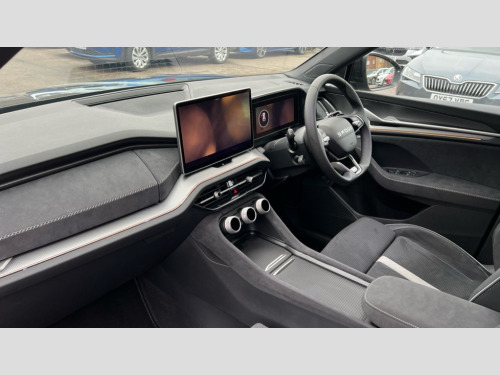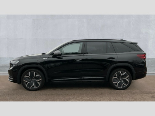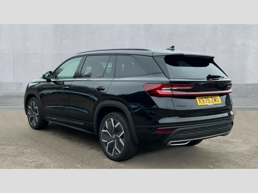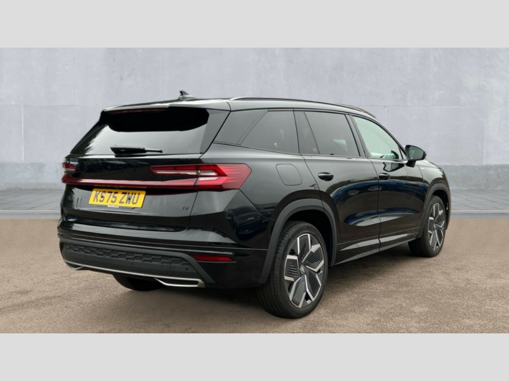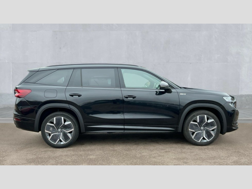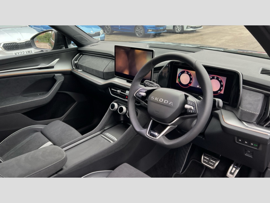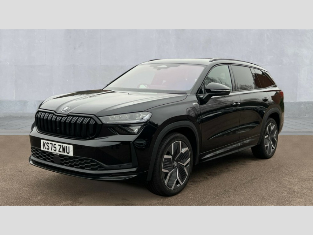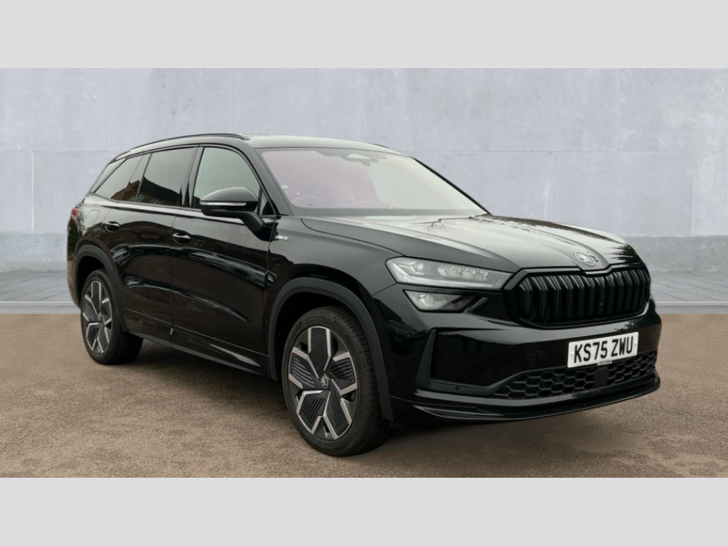 Skoda Kodiaq 1.5 TSI iV 204 SportLine 5dr DSG 13" satellite navigation touchscreen display, Blind spot detection with door exit warning, Bluetooth system, ChatGPT functionality, Driver alert - Fatigue and drowsiness monitor, Dry display cleaner, Emergency call, Front and rear parking sensors, Front cross traffic assist, Lane assist, PAS, Rear traffic assist, Tailgate unlocking from outside, Traffic sign recognition, USB C Port x 2 in front centre console, Virtual Cockpit - 10.25" digital display, Voice control system, Wireless charging for two smartphones (15W) with cooling function, Wireless SmartLink for Apple CarPlay and Android Auto, 32A charging cable, Stop/start function, 2x USB-C in the rear, DAB Digital radio, Aero front windscreen wipers with intermittent function, Auto dimming rear view mirror, AWL (all weather lighting) and all weather light with cornering function, Black diffuser and decorative tailpipe with a unique dark chrome finish, Black roof rails, Black sports styling including front grille and window surrounds, Black wheel arch surrounds, Body colour door handles, Cornering light and poor weather light, Electric folding /adjustable/separted heated/folding door mirrors, auto dimming with boarding sports and memory function, Electric front and rear windows, Exterior black decorative trims, Front and rear sports bumpers including lower rear chrome strip, Front grille with horizontal light strip, Gloss black door mirrors, Gloss black window frame and D pillar, Heat insulating glass in windshield, Heated rear window, Ice scraper in fuel tank cap, LED daytime running lights, LED matrix headlights with AFS and LED fog lights, LED rear light with welcome effect and dynamic turn signals, LED third brake light in rear spoiler, Light assistant with automatic headlight control and coming home feature, Logo projection in door mirrors, Multiple matrix beam, Privacy glass, Rear roof spoiler, Rear side wing doors, Rear window wiper, Red decorative strip between rear LED lights, Safety reflectors on front and rear doors, Sportline badge on front fenders, Tailgate lettering in Black, Unique dark chrome design logo on alloy wheels, Window control switches with black trim, Windscreen wipers with rain sensor, Without engine designation, 1.5l bottle holder points in all door, 1x centre rear reading light, 3 configurable smart dials with 32mm coloured display, 3 seat bench in 2nd row, 3 spoke multi-function heated leather sports steering wheel with paddle shift, 4 foldable roof handles with rear coat hooks, Aluminium pedals, Ambient interior lighting - Dashboard, front-door stowage compartments, front and rear door panels and footwell lighting, Automatic gear selector on steering column, Chrome interior door handles, Driver/front passenger reading lights, Fabric headlining, Fixed bench 40:60:40 split folding backrests, Front and rear floor mats, Front centre armrest with jumbo box storage compartment, cup holder and 12V socket, Front sport seats, Height adjustable front headrests, Interior black decorative trims, Isofix child seat fittings in outer rear seats and front passenger with top tether, iV badging on boot, Manually adjustable steering column, Pollen filter, Rear centre armrest with cupholders, Rear seat boot backrest release, Single front passenger seat, Skoda lettering on steering wheel, Storage pocket including mobile phone pockets on the backs of the front seats, Sunvisors with illuminated vanity mirrors, Three rear height adjustable headrests, Ticket holder on A Pillar, Tri zone climate control, Umbrella in door panel x1 made from sustainable materials, Upper and lower glovebox with card holder and coin compartment, USB C port by rear view mirror for charging only (15W), Acoustic package - Kodiaq, Performance package - Kodiaq, Sportline design selection pack - Kodiaq, Auto door release and activation of warning lights in the event of an accident, Driver and front passenger airbag with knee airbag and front passenger airbag deactivation, Electric child locks, Electronic parking brake, ESC (incl. ABS+EMD+MSR+ASR+EDL+HBA+DSR+RBS+ESBS+MCB+TSA+XDS), Front assist with braking reaction to vehicles, pedestrians and cyclists, Front disc brakes, Fuel cut off safety device, Height adjustable front 3 point seatbelts + pretensioners, Hill hold assist, Junction assist with automatic emergency braking, Rear disc brakes, Safety vest holder in door, Seat belt reminder for all seats, Three point rear seat belts, Two tone horn, Tyre pressure monitor, Alarm with interior monitoring and tilt sensor with safe function, Anti-theft wheel bolts, Immobiliser, Remote central locking with 2 keys, 20" Rila anthacite polished alloy wheel with black matte aero covers, Breakdown kit, Tool kit