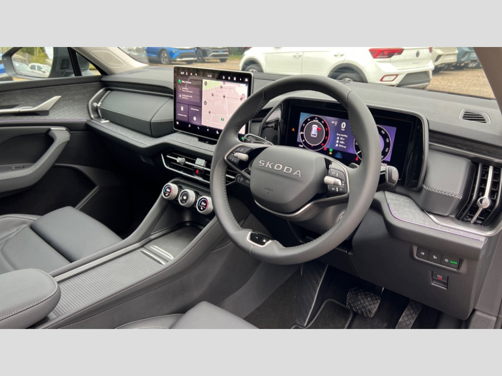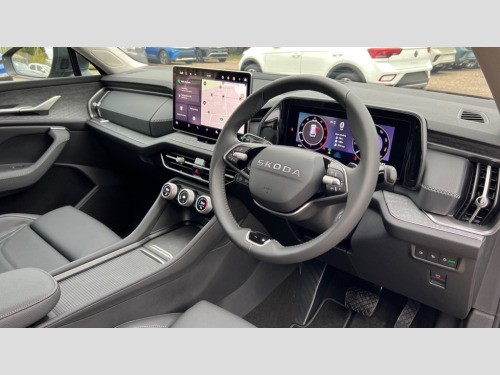 Skoda Kodiaq 2.0 TDI SE L 5dr DSG [7 Seat] 13" satellite navigation touchscreen display, Blind spot detection with door exit warning, Bluetooth system, ChatGPT functionality, Driver alert - Fatigue and drowsiness monitor, Dry display cleaner, Emergency call, Front and rear parking sensors, Front cross traffic assist, Lane assist, PAS, Rear traffic assist, Tailgate unlocking from outside, Traffic sign recognition, USB C Port x 2 in front centre console, Virtual Cockpit - 10.25" digital display, Voice control system, Wireless charging for two smartphones (15W) with cooling function, Wireless SmartLink for Apple CarPlay and Android Auto, Stop/start function, 2x USB-C in the rear, DAB Digital radio, Aero front windscreen wipers with intermittent function, Auto dimming rear view mirror, AWL (all weather lighting) and all weather light with cornering function, Black wheel arch surrounds, Body colour bumpers, Body colour door mirrors and handles, Cornering light and poor weather light, Electric folding /adjustable/separted heated/folding door mirrors, auto dimming with boarding sports and memory function, Electric front and rear windows, Exterior black decorative trims, Heat insulating glass in windshield, Heated rear window, Ice scraper in fuel tank cap, Invisible tailpipe, LED daytime running lights, LED third brake light in rear spoiler, Light assistant with automatic headlight control and coming home feature, Logo projection in door mirrors, Privacy glass, Rear roof spoiler, Rear side wing doors, Rear window wiper, Red decorative strip between rear LED lights, Safety reflectors on front and rear doors, Unique dark chrome design logo on alloy wheels, Window control switches with black trim, Windscreen wipers with rain sensor, Without engine designation, 1.5l bottle holder points in all door, 1x centre rear reading light, 2 seat bench in 3rd row, 3 configurable smart dials with 32mm coloured display, 3 seat bench in 2nd row, 4 foldable roof handles with rear coat hooks, Ambient interior lighting - Dashboard, front-door stowage compartments, front and rear door panels and footwell lighting, Automatic gear selector on steering column, Chrome interior door handles, Driver/front passenger reading lights, Fabric headlining, Fixed bench 40:60:40 split folding backrests, Front and rear floor mats, Front centre armrest with jumbo box storage compartment, cup holder and 12V socket, Height adjustable front headrests, Isofix child seat fittings in outer middle row rear seats and front passenger with top tether, Manually adjustable steering column, Pollen filter, Rear centre armrest with cupholders, Rear seat boot backrest release, Single front passenger seat, Skoda lettering on steering wheel, Storage pocket including mobile phone pockets on the backs of the front seats, Sunvisors with illuminated vanity mirrors, Three rear height adjustable headrests, Ticket holder on A Pillar, Tri zone climate control, Umbrella in door panel x1 made from sustainable materials, Upper and lower glovebox with card holder and coin compartment, USB C port by rear view mirror for charging only (15W), Exterior styling pack - Kodiaq, Auto door release and activation of warning lights in the event of an accident, Driver and front passenger airbag with knee airbag and front passenger airbag deactivation, Electric child locks, Electronic parking brake, ESC (incl. ABS+EMD+MSR+ASR+EDL+HBA+DSR+RBS+ESBS+MCB+TSA+XDS), Front assist with braking reaction to vehicles, pedestrians and cyclists, Front disc brakes, Fuel cut off safety device, Height adjustable front 3 point seatbelts + pretensioners, Hill hold assist, Junction assist with automatic emergency braking, Rear disc brakes, Safety vest holder in door, Seat belt reminder for all seats, Three point rear seat belts, Two tone horn, Tyre pressure monitor, Anti-theft wheel bolts, Immobiliser, Remote central locking with 2 keys