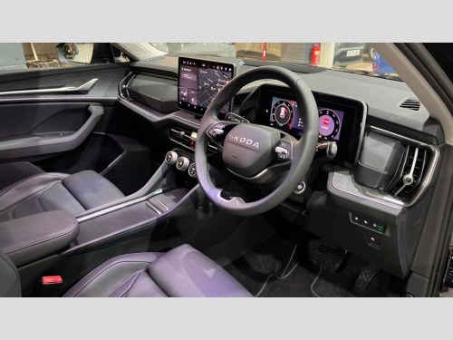 Skoda Kodiaq 1.5 TSI e-TEC SE L 5dr DSG [7 Seat] 13" satellite navigation touchscreen display, Blind spot detection with door exit warning, Bluetooth system, ChatGPT functionality, Driver alert - Fatigue and drowsiness monitor, Dry display cleaner, Emergency call, Front and rear parking sensors, Front cross traffic assist, Lane assist, PAS, Rear traffic assist, Tailgate unlocking from outside, Traffic sign recognition, USB C Port x 2 in front centre console, Virtual Cockpit - 10.25" digital display, Voice control system, Wireless charging for two smartphones (15W) with cooling function, Wireless SmartLink for Apple CarPlay and Android Auto, Stop/start function, 2x USB-C in the rear, DAB Digital radio, Aero front windscreen wipers with intermittent function, Auto dimming rear view mirror, AWL (all weather lighting) and all weather light with cornering function, Black wheel arch surrounds, Body colour bumpers, Body colour door mirrors and handles, Cornering light and poor weather light, Electric folding /adjustable/separted heated/folding door mirrors, auto dimming with boarding sports and memory function, Electric front and rear windows, Exterior black decorative trims, Front grille with horizontal light strip, Heat insulating glass in windshield, Heated rear window, Ice scraper in fuel tank cap, Invisible tailpipe, LED daytime running lights, LED matrix headlights with AFS and LED fog lights, LED rear light with welcome effect and dynamic turn signals, LED third brake light in rear spoiler, Light assistant with automatic headlight control and coming home feature, Logo projection in door mirrors, Multiple matrix beam, Privacy glass, Rear roof spoiler, Rear side wing doors, Rear window wiper, Red decorative strip between rear LED lights, Safety reflectors on front and rear doors, Unique dark chrome design logo on alloy wheels, Window control switches with black trim, Windscreen wipers with rain sensor, Without engine designation, 1.5l bottle holder points in all door, 1x centre rear reading light, 2 seat bench in 3rd row, 2 spoke multi-function leather heated steering wheel with paddle shift, 3 configurable smart dials with 32mm coloured display, 3 seat bench in 2nd row, 4 foldable roof handles with rear coat hooks, Ambient interior lighting - Dashboard, front-door stowage compartments, front and rear door panels and footwell lighting, Automatic gear selector on steering column, Chrome interior door handles, Driver/front passenger reading lights, Fabric headlining, Fixed bench 40:60:40 split folding backrests, Front and rear floor mats, Front centre armrest with jumbo box storage compartment, cup holder and 12V socket, Height adjustable front headrests, Isofix child seat fittings in outer middle row rear seats and front passenger with top tether, Manually adjustable steering column, Pollen filter, Rear centre armrest with cupholders, Rear seat boot backrest release, Single front passenger seat, Skoda lettering on steering wheel, Storage pocket including mobile phone pockets on the backs of the front seats, Sunvisors with illuminated vanity mirrors, Three rear height adjustable headrests, Ticket holder on A Pillar, Tri zone climate control, Umbrella in door panel x1 made from sustainable materials, Upper and lower glovebox with card holder and coin compartment, USB C port by rear view mirror for charging only (15W), Exterior styling pack - Kodiaq, Auto door release and activation of warning lights in the event of an accident, Driver and front passenger airbag with knee airbag and front passenger airbag deactivation, Electric child locks, Electronic parking brake, ESC (incl. ABS+EMD+MSR+ASR+EDL+HBA+DSR+RBS+ESBS+MCB+TSA+XDS), Front assist with braking reaction to vehicles, pedestrians and cyclists, Front disc brakes, Fuel cut off safety device, Height adjustable front 3 point seatbelts + pretensioners, Hill hold assist, Junction assist with automatic emergency braking, Rear disc brakes, Safety vest holder in door, Seat belt reminder for all seats, Three point rear seat belts, Two tone horn, Tyre pressure monitor, Anti-theft wheel bolts, Immobiliser, Remote central locking with 2 keys