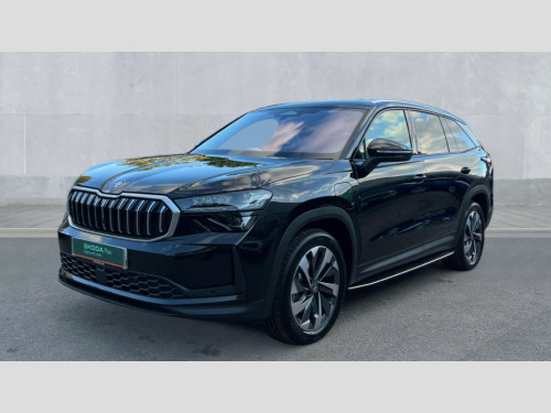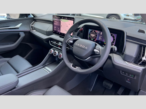 Skoda Kodiaq 1.5 TSI iV 204 SE L 5dr DSG 13" satellite navigation touchscreen display, Blind spot detection with door exit warning, Bluetooth system, ChatGPT functionality, Driver alert - Fatigue and drowsiness monitor, Dry display cleaner, Emergency call, Front and rear parking sensors, Front cross traffic assist, Lane assist, PAS, Rear traffic assist, Tailgate unlocking from outside, Traffic sign recognition, USB C Port x 2 in front centre console, Virtual Cockpit - 10.25" digital display, Voice control system, Wireless charging for two smartphones (15W) with cooling function, Wireless SmartLink for Apple CarPlay and Android Auto, 32A charging cable, Stop/start function, 2x USB-C in the rear, DAB Digital radio, Aero front windscreen wipers with intermittent function, Auto dimming rear view mirror, AWL (all weather lighting) and all weather light with cornering function, Black wheel arch surrounds, Body colour bumpers, Body colour door mirrors and handles, Cornering light and poor weather light, Electric folding /adjustable/separted heated/folding door mirrors, auto dimming with boarding sports and memory function, Electric front and rear windows, Exterior black decorative trims, Heat insulating glass in windshield, Heated rear window, Ice scraper in fuel tank cap, Invisible tailpipe, LED daytime running lights, LED third brake light in rear spoiler, Light assistant with automatic headlight control and coming home feature, Logo projection in door mirrors, Privacy glass, Rear roof spoiler, Rear side wing doors, Rear window wiper, Red decorative strip between rear LED lights, Safety reflectors on front and rear doors, Unique dark chrome design logo on alloy wheels, Window control switches with black trim, Windscreen wipers with rain sensor, Without engine designation, 1.5l bottle holder points in all door, 1x centre rear reading light, 3 configurable smart dials with 32mm coloured display, 3 seat bench in 2nd row, 4 foldable roof handles with rear coat hooks, Ambient interior lighting - Dashboard, front-door stowage compartments, front and rear door panels and footwell lighting, Automatic gear selector on steering column, Chrome interior door handles, Driver/front passenger reading lights, Fabric headlining, Fixed bench 40:60:40 split folding backrests, Front and rear floor mats, Front centre armrest with jumbo box storage compartment, cup holder and 12V socket, Height adjustable front headrests, Isofix child seat fittings in outer rear seats and front passenger with top tether, iV badging on boot, Manually adjustable steering column, Pollen filter, Rear centre armrest with cupholders, Rear seat boot backrest release, Single front passenger seat, Skoda lettering on steering wheel, Storage pocket including mobile phone pockets on the backs of the front seats, Sunvisors with illuminated vanity mirrors, Three rear height adjustable headrests, Ticket holder on A Pillar, Tri zone climate control, Umbrella in door panel x1 made from sustainable materials, Upper and lower glovebox with card holder and coin compartment, USB C port by rear view mirror for charging only (15W), Exterior styling pack - Kodiaq, Auto door release and activation of warning lights in the event of an accident, Driver and front passenger airbag with knee airbag and front passenger airbag deactivation, Electric child locks, Electronic parking brake, ESC (incl. ABS+EMD+MSR+ASR+EDL+HBA+DSR+RBS+ESBS+MCB+TSA+XDS), Front assist with braking reaction to vehicles, pedestrians and cyclists, Front disc brakes, Fuel cut off safety device, Height adjustable front 3 point seatbelts + pretensioners, Hill hold assist, Junction assist with automatic emergency braking, Rear disc brakes, Safety vest holder in door, Seat belt reminder for all seats, Three point rear seat belts, Two tone horn, Tyre pressure monitor, Anti-theft wheel bolts, Immobiliser, Remote central locking with 2 keys, Breakdown kit, Tool kit