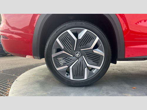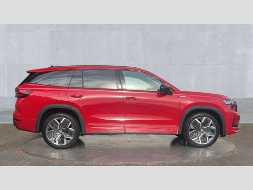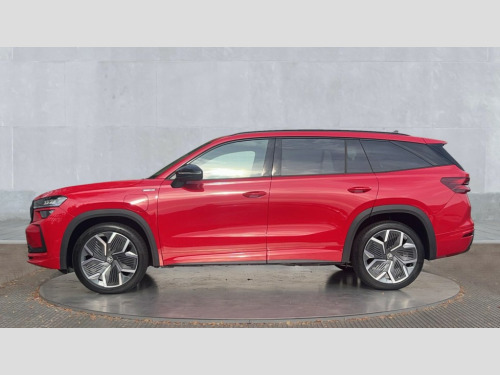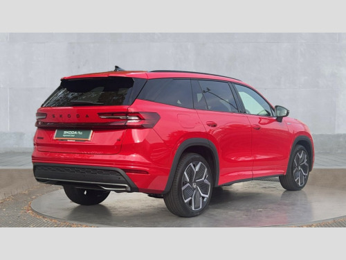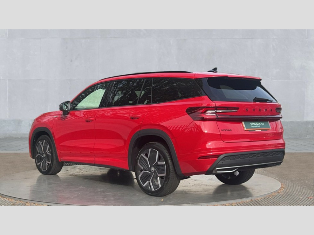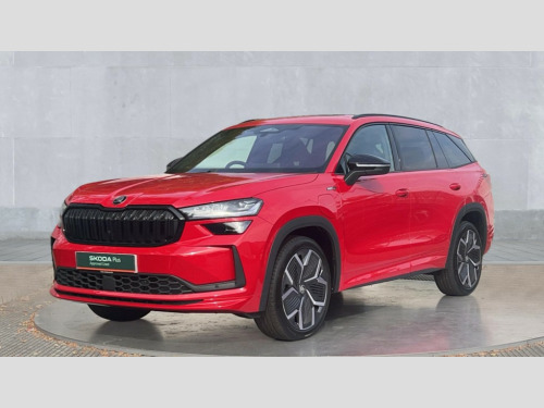 Skoda Kodiaq 1.5 TSI iV 204 SportLine 5dr DSG 13" satellite navigation touchscreen display, Blind spot detection with door exit warning, Bluetooth system, ChatGPT functionality, Driver alert - Fatigue and drowsiness monitor, Dry display cleaner, Emergency call, Front and rear parking sensors, Front cross traffic assist, Lane assist, PAS, Rear traffic assist, Tailgate unlocking from outside, Traffic sign recognition, USB C Port x 2 in front centre console, Virtual Cockpit - 10.25" digital display, Voice control system, Wireless charging for two smartphones (15W) with cooling function, Wireless SmartLink for Apple CarPlay and Android Auto, 32A charging cable, Stop/start function, 2x USB-C in the rear, DAB Digital radio, Aero front windscreen wipers with intermittent function, Auto dimming rear view mirror, AWL (all weather lighting) and all weather light with cornering function, Black diffuser and decorative tailpipe with a unique dark chrome finish, Black roof rails, Black sports styling including front grille and window surrounds, Black wheel arch surrounds, Body colour door handles, Cornering light and poor weather light, Electric folding /adjustable/separted heated/folding door mirrors, auto dimming with boarding sports and memory function, Electric front and rear windows, Exterior black decorative trims, Front and rear sports bumpers including lower rear chrome strip, Gloss black door mirrors, Gloss black window frame and D pillar, Heat insulating glass in windshield, Heated rear window, Ice scraper in fuel tank cap, LED daytime running lights, LED third brake light in rear spoiler, Light assistant with automatic headlight control and coming home feature, Logo projection in door mirrors, Privacy glass, Rear roof spoiler, Rear side wing doors, Rear window wiper, Red decorative strip between rear LED lights, Safety reflectors on front and rear doors, Sportline badge on front fenders, Tailgate lettering in Black, Unique dark chrome design logo on alloy wheels, Window control switches with black trim, Windscreen wipers with rain sensor, Without engine designation, 1.5l bottle holder points in all door, 1x centre rear reading light, 3 configurable smart dials with 32mm coloured display, 3 seat bench in 2nd row, 4 foldable roof handles with rear coat hooks, Aluminium pedals, Ambient interior lighting - Dashboard, front-door stowage compartments, front and rear door panels and footwell lighting, Automatic gear selector on steering column, Chrome interior door handles, Driver/front passenger reading lights, Fabric headlining, Fixed bench 40:60:40 split folding backrests, Front and rear floor mats, Front centre armrest with jumbo box storage compartment, cup holder and 12V socket, Front sport seats, Height adjustable front headrests, Interior black decorative trims, Isofix child seat fittings in outer rear seats and front passenger with top tether, iV badging on boot, Manually adjustable steering column, Pollen filter, Rear centre armrest with cupholders, Rear seat boot backrest release, Single front passenger seat, Skoda lettering on steering wheel, Storage pocket including mobile phone pockets on the backs of the front seats, Sunvisors with illuminated vanity mirrors, Three rear height adjustable headrests, Ticket holder on A Pillar, Tri zone climate control, Umbrella in door panel x1 made from sustainable materials, Upper and lower glovebox with card holder and coin compartment, USB C port by rear view mirror for charging only (15W), Acoustic package - Kodiaq, Performance package - Kodiaq, Sportline design selection pack - Kodiaq, Auto door release and activation of warning lights in the event of an accident, Driver and front passenger airbag with knee airbag and front passenger airbag deactivation, Electric child locks, Electronic parking brake, ESC (incl. ABS+EMD+MSR+ASR+EDL+HBA+DSR+RBS+ESBS+MCB+TSA+XDS), Front assist with braking reaction to vehicles, pedestrians and cyclists, Front disc brakes, Fuel cut off safety device, Height adjustable front 3 point seatbelts + pretensioners, Hill hold assist, Junction assist with automatic emergency braking, Rear disc brakes, Safety vest holder in door, Seat belt reminder for all seats, Three point rear seat belts, Two tone horn, Tyre pressure monitor, Alarm with interior monitoring and tilt sensor with safe function, Anti-theft wheel bolts, Immobiliser, Remote central locking with 2 keys, 20" Rila anthacite polished alloy wheel with black matte aero covers, Breakdown kit, Tool kit