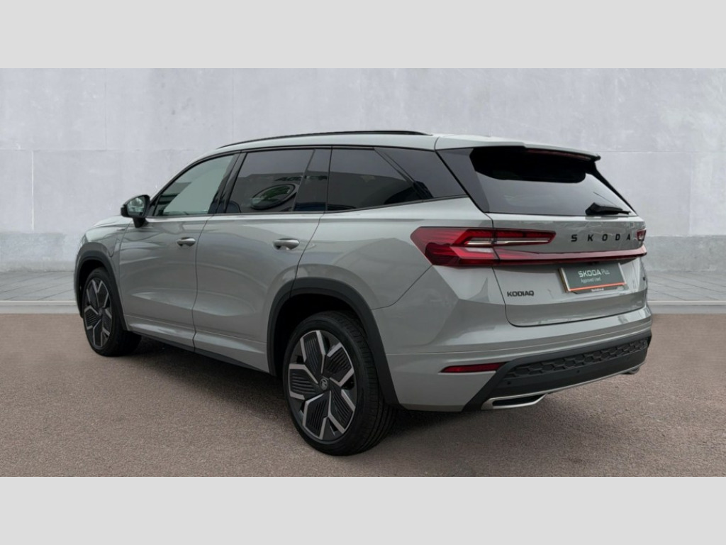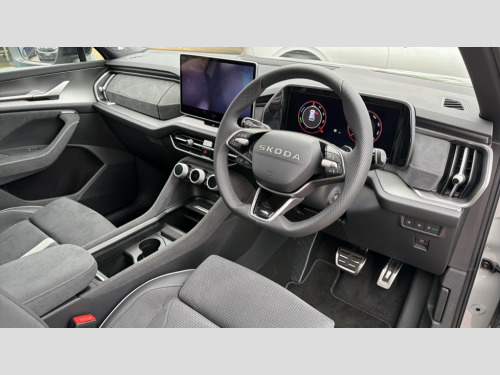 Skoda Kodiaq 1.5 TSI iV 204 SportLine 5dr DSG 13" satellite navigation touchscreen display, Blind spot detection with door exit warning, Bluetooth system, ChatGPT functionality, Driver alert - Fatigue and drowsiness monitor, Dry display cleaner, Emergency call, Front and rear parking sensors, Front cross traffic assist, Lane assist, PAS, Rear traffic assist, Tailgate unlocking from outside, Traffic sign recognition, USB C Port x 2 in front centre console, Virtual Cockpit - 10.25" digital display, Voice control system, Wireless charging for two smartphones (15W) with cooling function, Wireless SmartLink for Apple CarPlay and Android Auto, 32A charging cable, Stop/start function, 2x USB-C in the rear, DAB Digital radio, Aero front windscreen wipers with intermittent function, Auto dimming rear view mirror, AWL (all weather lighting) and all weather light with cornering function, Black diffuser and decorative tailpipe with a unique dark chrome finish, Black roof rails, Black sports styling including front grille and window surrounds, Black wheel arch surrounds, Body colour door handles, Cornering light and poor weather light, Electric folding /adjustable/separted heated/folding door mirrors, auto dimming with boarding sports and memory function, Electric front and rear windows, Exterior black decorative trims, Front and rear sports bumpers including lower rear chrome strip, Gloss black door mirrors, Gloss black window frame and D pillar, Heat insulating glass in windshield, Heated rear window, Ice scraper in fuel tank cap, LED daytime running lights, LED third brake light in rear spoiler, Light assistant with automatic headlight control and coming home feature, Logo projection in door mirrors, Privacy glass, Rear roof spoiler, Rear side wing doors, Rear window wiper, Red decorative strip between rear LED lights, Safety reflectors on front and rear doors, Sportline badge on front fenders, Tailgate lettering in Black, Unique dark chrome design logo on alloy wheels, Window control switches with black trim, Windscreen wipers with rain sensor, Without engine designation, 1.5l bottle holder points in all door, 1x centre rear reading light, 3 configurable smart dials with 32mm coloured display, 3 seat bench in 2nd row, 4 foldable roof handles with rear coat hooks, Aluminium pedals, Ambient interior lighting - Dashboard, front-door stowage compartments, front and rear door panels and footwell lighting, Automatic gear selector on steering column, Chrome interior door handles, Driver/front passenger reading lights, Fabric headlining, Fixed bench 40:60:40 split folding backrests, Front and rear floor mats, Front centre armrest with jumbo box storage compartment, cup holder and 12V socket, Front sport seats, Height adjustable front headrests, Interior black decorative trims, Isofix child seat fittings in outer rear seats and front passenger with top tether, iV badging on boot, Manually adjustable steering column, Pollen filter, Rear centre armrest with cupholders, Rear seat boot backrest release, Single front passenger seat, Skoda lettering on steering wheel, Storage pocket including mobile phone pockets on the backs of the front seats, Sunvisors with illuminated vanity mirrors, Three rear height adjustable headrests, Ticket holder on A Pillar, Tri zone climate control, Umbrella in door panel x1 made from sustainable materials, Upper and lower glovebox with card holder and coin compartment, USB C port by rear view mirror for charging only (15W), Acoustic package - Kodiaq, Performance package - Kodiaq, Sportline design selection pack - Kodiaq, Auto door release and activation of warning lights in the event of an accident, Driver and front passenger airbag with knee airbag and front passenger airbag deactivation, Electric child locks, Electronic parking brake, ESC (incl. ABS+EMD+MSR+ASR+EDL+HBA+DSR+RBS+ESBS+MCB+TSA+XDS), Front assist with braking reaction to vehicles, pedestrians and cyclists, Front disc brakes, Fuel cut off safety device, Height adjustable front 3 point seatbelts + pretensioners, Hill hold assist, Junction assist with automatic emergency braking, Rear disc brakes, Safety vest holder in door, Seat belt reminder for all seats, Three point rear seat belts, Two tone horn, Tyre pressure monitor, Alarm with interior monitoring and tilt sensor with safe function, Anti-theft wheel bolts, Immobiliser, Remote central locking with 2 keys, 20" Rila anthacite polished alloy wheel with black matte aero covers, Breakdown kit, Tool kit