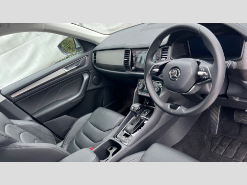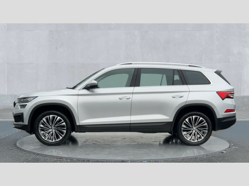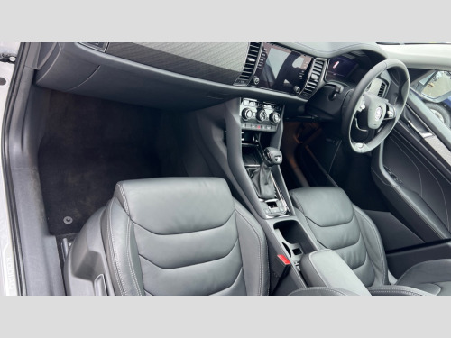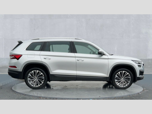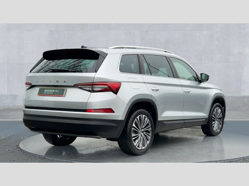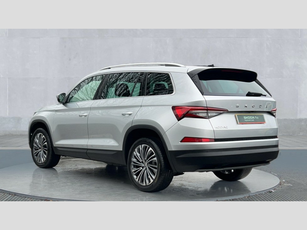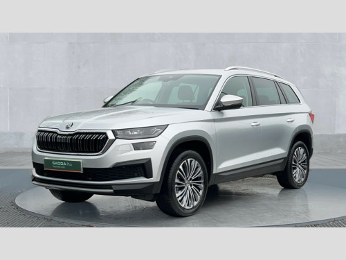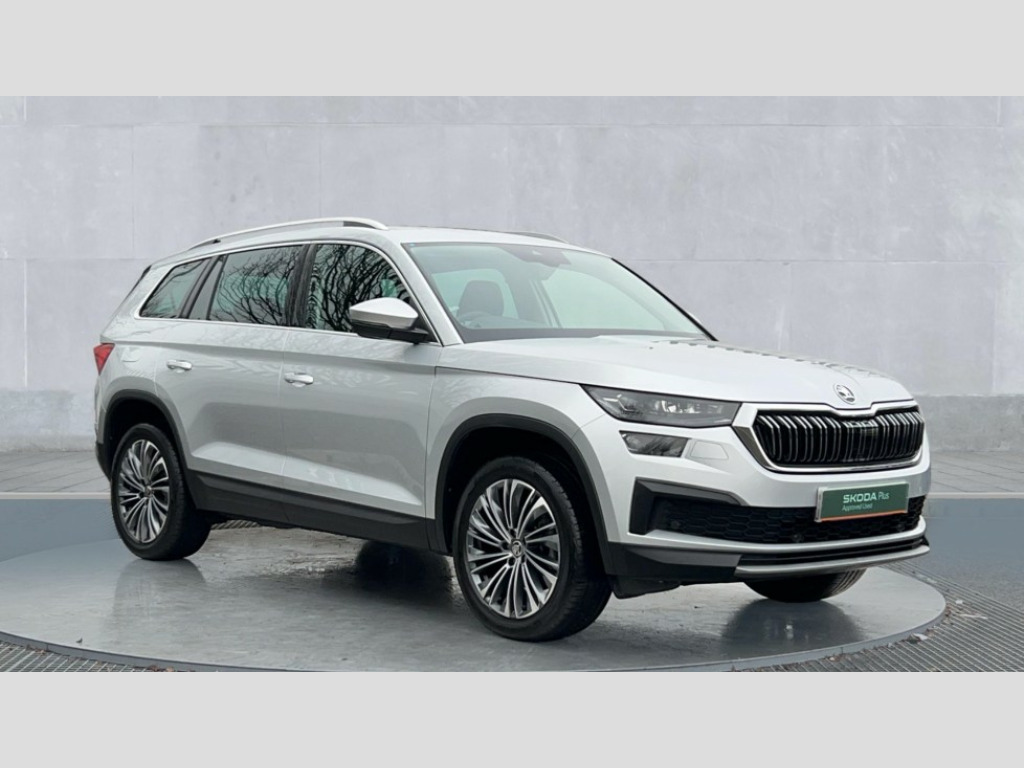 Skoda Kodiaq 1.5 TSI SE L Executive 5dr DSG [7 Seat] Bluetooth system, Digital voice enhancement, e call+, ECO Stop/start function, Exterior temperature indicator, Rear view camera, Smartlink wireless for apple carplay and wired for android auto, Speed limiter, Tailgate unlocking from outside, USB C Port x 2 in front centre console, Virtual Cockpit - 10.25" digital display, Wireless charging, 8 Speakers, DAB Digital radio, Aero front windscreen wipers with intermittent function, Aero rear window wiper, Auto dimming rear view mirror, Black wheel arch surrounds, Body colour bumpers, Body colour door mirrors and handles, Chrome front grille, Chrome roof rails with chrome window surround, Electric adjustable/heated/folding door mirrors, driver side auto dimming with boarding sports and memory function, Electric front and rear windows, Extended rear spoiler with finlets in gloss black, Front fog lights, Full LED matrix headlights with AFS (adaptive front light system), cornering function and AWL (all weather lighting system), Headlight washers, Heated rear window, Invisible tailpipe, LED daytime running lights, LED rear fog light, LED third brake light in rear spoiler, Light assistant (coming/leaving home/tunnel light), Off-road style lower front bumper element, Privacy glass, Rain and light sensors, Rear LED lights (high functionality) with welcome effect and dynamic indicators, Rear side wing doors, Safety reflectors on front and rear doors, Window control switches with black trim, 12V socket in boot, 2 rails with 2 hooks, 2 seat bench in 3rd row, 2 spoke multi-function leather steering wheel with paddle shift, 3 seat bench in 2nd row, 4 foldable roof handles with rear coat hooks, 60:40 foldable rear seat with sliding adjustment and backrest angle adjustment, Bottle holders in door panel in the 1.5 litre front and 1 litre rear, Cargo storage compartments, Chrome headlight control button, Chrome interior door handles, Coat hooks on B pillar, Covered storage compartment on driver side, Decorative door sill covers, Front and rear door armrest with black adductor trim, Front centre armrest with storage compartment, cup holder and 12V socket, Front courtesy lights, Gear shift lever with chrome frame and black gloss insert, Grey stitching in front and rear armrests and door armrests + door inserts, Height adjustable front headrests, Illuminated glovebox, Illuminated luggage compartment, Isofix child seat fittings in outer rear seats with top tether, Manually adjustable steering column, Net programme in boot (1x horizontal Net, 2x vertical Nets), Overhead glasses storage compartment, Pollen filter, Rear centre armrest with cupholders, Single front passenger seat, Sliding trunk cover, Small Bags on the inner sides of the front backrests, Sunvisors with illuminated vanity mirrors, Three rear height adjustable headrests, Ticket holder on A Pillar, Umbrella in door panel, Variable boot floor, Auto door release and activation of warning lights in the event of an accident, Driver and front passenger airbag with knee airbag and front passenger airbag deactivation, Electronic parking brake with hill start assist, Emergency rear braking signal, ESC (incl. ABS+MSR+ASR+EDS+HBA+DSR+RBS+MKB), Front assist with autonomous emergency braking, Front side airbags with curtain airbags, Fuel cut off safety device, Height adjustable front 3 point seatbelts + pretensioners, Hill hold control, Rear disc brakes, Safety vest holder in door, Seat belt reminder for all seats, Three point rear seat belts, Two tone horn, Tyre pressure monitor, Alarm with interior monitoring and tilt sensor with safe function, Anti-theft wheel bolts, Immobiliser, Keyless entry and start system (KESSY), Remote central locking with 2 keys, Grey stitching in dashboard, Linear diamonds decorative inserts, Temporary spare wheel (space saver)