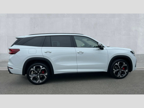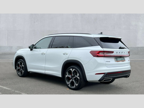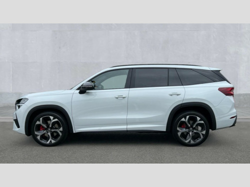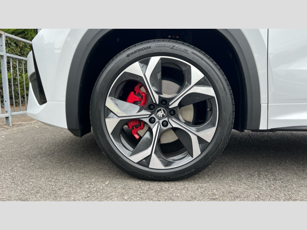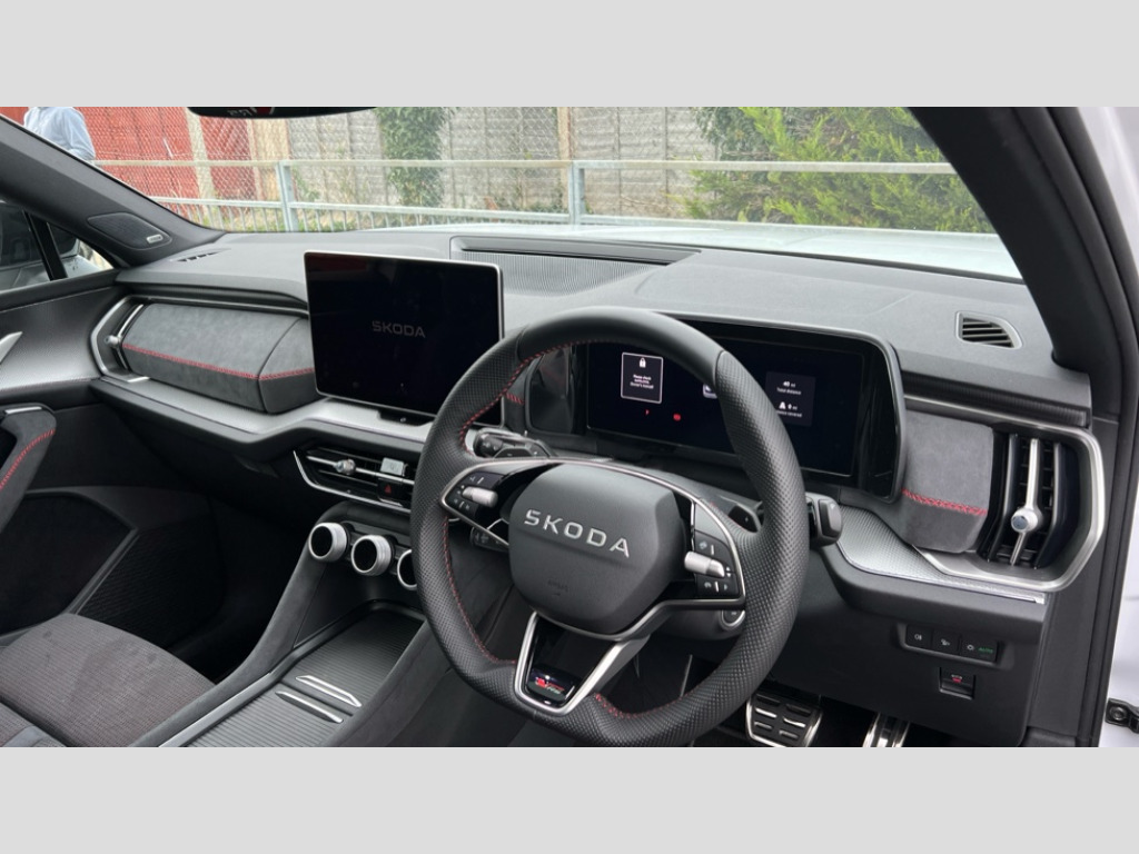 Skoda Kodiaq 2.0 TSI vRS 4X4 5dr DSG [7 Seat] 13" satellite navigation touchscreen display, Blind spot detection with door exit warning, Bluetooth system, ChatGPT functionality, Driver alert - Fatigue and drowsiness monitor, Dry display cleaner, Emergency call, Front and rear parking sensors, Front cross traffic assist, Lane assist, Off road modes, PAS, Rear traffic assist, Tailgate unlocking from outside, Traffic sign recognition, USB C Port x 2 in front centre console, Virtual Cockpit - 10.25" digital display, Voice control system, Wireless charging for two smartphones (15W) with cooling function, Wireless SmartLink for Apple CarPlay and Android Auto, Stop/start function, 2x USB-C in the rear, DAB Digital radio, Dynamic sound booster, Aero front windscreen wipers with intermittent function, Auto dimming rear view mirror, AWL (all weather lighting) and all weather light with cornering function, Black roof rails, Black vRS styling including front grille surround and upper part of window surround, Black wheel arch surrounds, Body colour door handles, Cornering light and poor weather light, Electric folding /adjustable/separted heated/folding door mirrors, auto dimming with boarding sports and memory function, Electric front and rear windows, Exterior black decorative trims, Gloss black door mirrors, Gloss black window frame and D pillar, Heat insulating glass in windshield, Heated rear window, Ice scraper in fuel tank cap, LED daytime running lights, LED third brake light in rear spoiler, Light assistant with automatic headlight control and coming home feature, Logo projection in door mirrors, Privacy glass, Rear roof spoiler, Rear side wing doors, Rear window wiper, Red decorative strip between rear LED lights, Safety reflectors on front and rear doors, Tailgate lettering in Black, Unique dark chrome design logo on alloy wheels, vRS badging on front grille and tailgate, vRS front and rear bumpers, vRS rear diffuser and visible tailpipe in stainless steel, Window control switches with black trim, Windscreen wipers with rain sensor, Without engine designation, 1.5l bottle holder points in all door, 1x centre rear reading light, 2 seat bench in 3rd row, 3 configurable smart dials with 32mm coloured display, 3 seat bench in 2nd row, 4 foldable roof handles with rear coat hooks, Aluminium pedals, Ambient interior lighting - Dashboard, front-door stowage compartments, front and rear door panels and footwell lighting, Automatic gear selector on steering column, Chrome interior door handles, Driver/front passenger reading lights, Fabric headlining, Fixed bench 40:60:40 split folding backrests, Front and rear floor mats, Front centre armrest with jumbo box storage compartment, cup holder and 12V socket, Front sport seats, Height adjustable front headrests, Interior black decorative trims, Isofix child seat fittings in outer middle row rear seats and front passenger with top tether, Manually adjustable steering column, Pollen filter, Rear centre armrest with cupholders, Rear seat boot backrest release, Single front passenger seat, Skoda lettering on steering wheel, Storage pocket including mobile phone pockets on the backs of the front seats, Sunvisors with illuminated vanity mirrors, Three rear height adjustable headrests, Ticket holder on A Pillar, Tri zone climate control, Umbrella in door panel x1 made from sustainable materials, Upper and lower glovebox with card holder and coin compartment, USB C port by rear view mirror for charging only (15W), Acoustic package - Kodiaq, Convenience plus pack - Kodiaq SE L/Sport Line/vRS, Light and view plus package - Kodiaq, Performance package - Kodiaq vRS, Simply clever cargo package - Kodiaq, Auto door release and activation of warning lights in the event of an accident, Driver and front passenger airbag with knee airbag and front passenger airbag deactivation, Electric child locks, Electronic parking brake, ESC (incl. ABS+EMD+MSR+ASR+EDL+HBA+DSR+RBS+ESBS+MCB+TSA+XDS), Front assist with braking reaction to vehicles, pedestrians and cyclists, Front disc brakes, Fuel cut off safety device, Height adjustable front 3 point seatbelts + pretensioners, Hill hold assist, Junction assist with automatic emergency braking, Rear disc brakes, Red brake calipers, Safety vest holder in door, Seat belt reminder for all seats, Three point rear seat belts, Two tone horn, Tyre pressure monitor, Alarm with interior monitoring and tilt sensor with safe function, Anti-theft wheel bolts, Immobiliser, Remote central locking with 2 keys, 20" Elias black polished alloy wheel