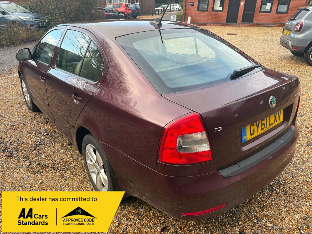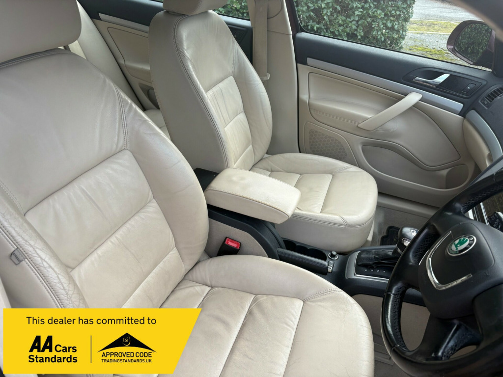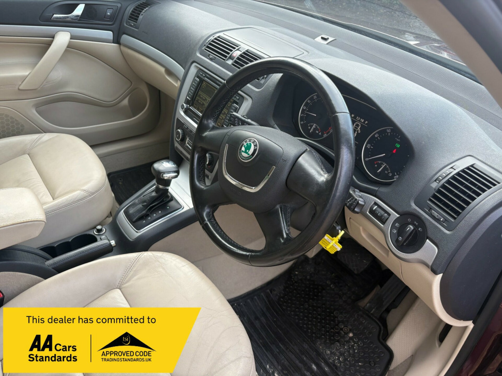 ARRIVING THIS WEEK THIS BEUTIFUL BELOW AVERAGE MILEAGE TOP OF THE RANGE 2011/61 SKODA OCTAVIA 2.O TDI ELEGANCE DSG 140BHP MODEL AUTOMATIC HATCHBACK FINISHED IN A LOVELY METALLIC BURGANDY WITHWHITE IVORY FULL LEATHER INTERIOR ONE OF THE BEST COLOUR OPTIONS OUT THERE AND RARE TO GET !!! THIS SUPERB HIGH SPEC EXAMPLE IS A CREDIT TO ITS PREVIOUS 2 OWNERS INDEED AS EXTREMELY WELL LOOKED AFTER AND NOT TO BE MISSED , EVEN HAS A FULL SERVICE HISTORY TO DATE FULLY STAMPED SERVICE BOOK INCLUDING CAMBELT CHANGE LAST IN 2024 107,000 MILES,WILL ALSO COME WITH 12 MONTHS WARRANTY AND A NEW MOT AT POINT OF SALE !!!HONESTLY THIS WE HIGHLY RECOMMEND AND TRY TO BE QUICK AS AUTOMATIC PRICE RANGE CARS ARE HARD TO GET AS IT IS LET ALONE THIS FINE EXAMPLE SO GET IT RESERVED NOW TO AVOID DISSAPOINTMENT.RAN CARS AND COMMERCIALS LIMITEDGU345HR in alloy wheels - crateris, body mouldings - body coloured, door handles - body coloured, door mirrors - body coloured, electric windows - front, electric windows - rear, electrically adjustable and heated door mirrors, rear mudflaps, rear wiper, tinted windows, tinted windows - front and side, tyre repair kit, abs - anti-lock braking system, asr - anti slip regulation, airbags - driver, airbags - front passenger, airbags - front side, airbags - passenger deactivation switch, alarm with interior monitoring-back up horn and remote central locking, automatic fuel supply cut-off in case of accident, central locking - remote, dsr - driver steering recommendation, ebc - electronic brake control, ebd - electronic brakeforce distrubution, ebv - electronic brake variator, edl - electronic differential lock, eds - electronic differential system, esp - electronic stability programme, electronic engine immobiliser, hba - hydraulic brake assist, isofix child seat preparation - front passenger, isofix child seat preparation - outer rear, mba - mechanical brake assist, msr - motor slip regulation, seatbelt warning - drivers, air conditioning - climate control dual zone, armrest - front with storage, armrest - rear, auto dimming rear view mirror, door handles - interior in chrome, gearknob - leather, glasses storage compartment, glovebox - air conditioned, head restraints - height adjustable front and rear, height and reach adjustable steering wheel, illuminated luggage compartment, luggage compartment - lashing eyelets, luggage compartment - net, pollen filter, rain sensor, seats - drivers height adjustment, seats - front lumbar support, seats - front passenger height adjustment, seats - split folding rear - 60-40, steering wheel - 4 spoke leather and small leather package, storage - pockets on rear of front seats, storage - under passenger seat, vanity mirrors - front, aux-in socket - 3.5mm, bolero radio - with 6cd changer, speakers x4 - additional, cruise control, electro-mechanical power steering, exterior temperature gauge, parking sensors - rear, trip computer, front fog lights, headlights - coming-leaving home, headlights - halogen, headlights - internally adjustable beam level, headlights - washers, high level 3rd rear brake light