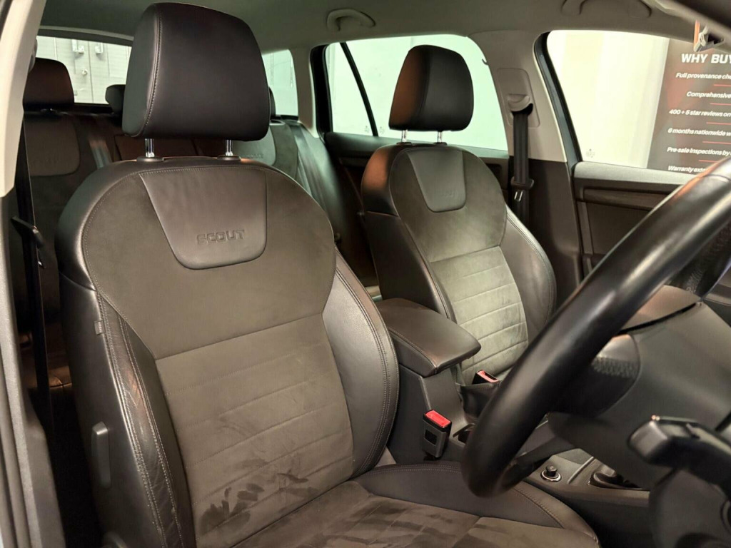 We have just bought this highly desirable ONE owner Octavia Scout directly from the previous owner, registration RE64 ZFM. , This is the 2.0 TDI 150ps 4x4 manual finished in Metal grey metallic with black half leather/alcantara upholstery. All four wheels are freshly professionally refurbished. , Features include; , >Towbar, >Satellite navigation, DAB radio, Bluetooth, >Rear parking sensors, >Heated exterior mirrors, >17 alloy wheels, >Dual zone air conditioning, >Cruise control, This Scout has full Skoda main dealer service history all stored on the digital record as below; , 08/01/2016 at 6,145 miles, 06/01/2017 at 12,001 miles, 05/01/2018 at 17,393 miles, 14/01/2019 at 22,277 miles, 18/12/2019 at 26,096 miles - major service inc cambelt changed, 21/12/2020 at 29,521 miles - inc Haldex 4wd service , 05/01/2022 at 34,081 miles, 03/01/2023 at 41,007 miles, 29/12/2023 at 44,865 miles - inc Haldex service, 19/12/2024 at 47,854 miles, Please do call for more information and to discuss this car in more detail, do also make sure you watch our detailed walk-around video on the video tab in the Gallery! We offer competitive finance options with APRs starting from 9.9% over 2-5 years, and can provide any quotations required. All of this can also be done online. We take any make in part exchange - while we only retail VAG product we will still seek the best value we can for your car. If it is easier you can text or WhatsApp on 07564 053855 or go to our website www.qtcars.co.uk and use the WhatsApp icon. We ensure the car receives a structured mechanical check, 12 months MOT upon arrival and 6 months warranty which can be used at any VAT registered garage nationally. Please take a moment to read our reviews to see what our customers are saying