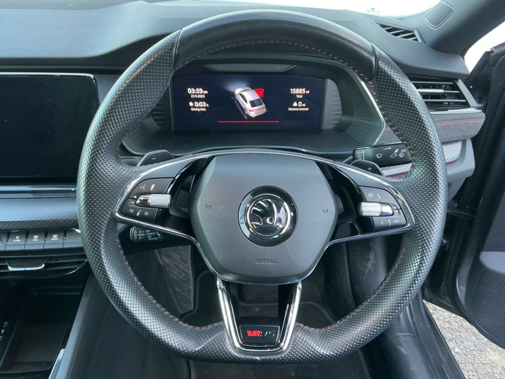 One owner from new, Full Skoda service history, Balance of Skoda warranty till September 2026, Guaranteed Mileage, All vehicles HPi checked, Always low prices. Southwick Car Centre specialise in the sale of one owner vehicles with full service history at a fantastic price. We are located in the village of Southwick near Trowbridge in Wiltshire on the A361 within 20 minutes of Westbury, Warminster, Frome, Bath, Melksham and within 40 minutes of Bristol, Swindon, Salisbury and the M4 (post code for sat nav BA149QN). We stock up to 50 one owner vehicles with full manufacturer service history priced at well below the suggested market value, price checked daily to insure we remain at the front on price providing our customers fantastic savings when buying their next car. Despite striving to achieve the very best prices across the UK quality remains at the forefront of our business, all vehicles are HPI checked, have guaranteed mileage, are fully inspected for quality and safety, supplied with a new MOT (where less than 6 months remains), fully valeted and we even subsidise the price of our warranties. Established in 1996 we have over 27 years experience in used vehicle sales. We open Monday - Friday 09.00-17.00 and Sat 09.00-14.00. For more information about one of our vehicles, to book a viewing, test drive or to reserve a vehicle please call us on 01225 777950. Southwick Car Centre offering an honest, friendly service and a large selection of one owner cars with full service history with guaranteed mileage at a fantastic price.. 19in Alloy Wheels - Altair Anthracite, Columbus Satellite Navigation with 10in Touchscreen Display, Climatronic Dual-Zone Air Conditioning, ACC - Adaptive Cruise Control, Bluetooth, DAB Radio, Smartlink - Includes Android Auto and MirrorLink, Wireless Smartlink for Apple CarPlay, Front and Rear Parking Sensors with Manoeuvre Assist, Heated Front Seats, Boot Lid Release from Inside Vehicle, 1 USB-C Port in Rear View Mirror, 2 USB-C Ports, 2 USB-C Ports in Rear of Front Centre Armrest, 4 Foldable Roof Handles, ABS - Anti-Lock Braking System, Aero Front Windscreen Wipers with Intermitted Function, Airbag - Curtain - Front Side and Front Central, Airbags - Driver, Airbags - Driver Knee, Airbags - Front Passenger, Alarm with Interior Monitoring - Tilt Sensor and Back Up Horn, Aluminium Pedals, Auto Dimming Rear View Mirror, Automatic Door Unlocking in Case of Accident, Automatic Fuel Supply Cut-Off in Case of Accident, Automatic Warning Lights in Case of Emergency Braking, Black Roof Headlining, Carbon Optic Decorative Inserts, Child Lock in Rear Doors, Chrome Exhaust Tailpipes, Colour Multifunction Trip Computer, Door Handles - Interior in Chrome, Door Locks with Immobiliser, Door Sill Trims with vRS Logo, Drive Mode Select, Driver Fatigue Sensor, Electrically Adjustable - Heated - Folding - Auto-Dimming Door Mirrors, Electronic Parking Brake, Exterior Gloss Black Sports Styling, Front Assist, Front Centre Armrest, Front and Rear Electric Windows, Front and Rear Stabilizers, Full Matrix LED Headlights with AFS - Adaptive Front Light System, Glasses Storage Compartment, Gloss Black Air Vent Surrounds, Glove Compartment - Illuminated, Headlight Washers, Heated Rear Windscreen, Height Adjustable for Front Seats, High Level 3rd Rear Brake Light, Hill Start Assist, ISOFIX on Front Passenger Seat and Outer Rear Seats, Ice Scraper in Fuel Filler Cap, Keyless Entry and Start-Stop including Rear Doors, LED Interior Light Pack, Lane Assist, Leather Gear Shift Lever, Light and Rain Sensors, Luggage Compartment Light x1, Lumbar Support for Front Seats, Mechanical Rear Seat Release, Microsuede Padded Dash Panel with Contrast Stitching, Parcel Shelf - Folding, Pro-Active Services, Progressive Dynamic Steering, Rear Fog Light on One Side, Rear Privacy Glass, Red Brake Calipers, Remote Access, Remote Central Locking, Speakers x8, Sun Visors with Mirror, Suspension - Sports, Textile Floor Mats, Three Rear Head Rests, Three-Point Seat Belts in Front and Rear, Three-Spoke Leather Sports Multifunction Steering Wheel, Ticket Holder, Turn Assist, Two Tone Horn, Tyre Pressure Monitor, Tyre Repair Kit, Umbrella in Door Compartment, Unsplit Rear Bench Seat - Split Folding Backrest, Virtual Cockpit with 10.25in Display, Virtual Pedal, Visual and Acoustic Seat Belt Reminder, Voice Control, Warning Reflectors in Front Doors, e-Call, vRS Exterior Design - Bumpers and Spoiler. Full service history