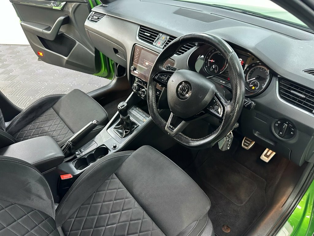 KY67PXM SKODA OCTAVIA 2.0 TDI vRS Estate 5dr Diesel Manual Euro 6 (s/s) (184 ps)- 81K miles- Full Service history- 7 completed services and in that time the timing belt has been changed twice, once at 48K and the second last year at 71k, Maintained to a very high standard! Great all round cars! Excellent economy and performance ! Amazing specification of rear parking sensors, 18" Gemini alloy wheels in immaculate condition, LED headlights, rear privacy glass, auto lights, auto wipers, multifunction steering wheel, lane guide assist, black grille, Bluetooth, DAB and FM radio, satellite navigation, USB media, Apple car play, Android Auto, dual zone climate control with air conditioning ! Very popular cars due to excellent reliability and performance ! Whats App Part Ex Valuation Hotline! Send photo's and details to 07591835255 18in Alloy Wheels - Gemini - Diamond cut, Black Design Grille, Cornering Front Fog Lights with Black Su, Rallye Green, vRS Cloth - Black with Silver Stitching