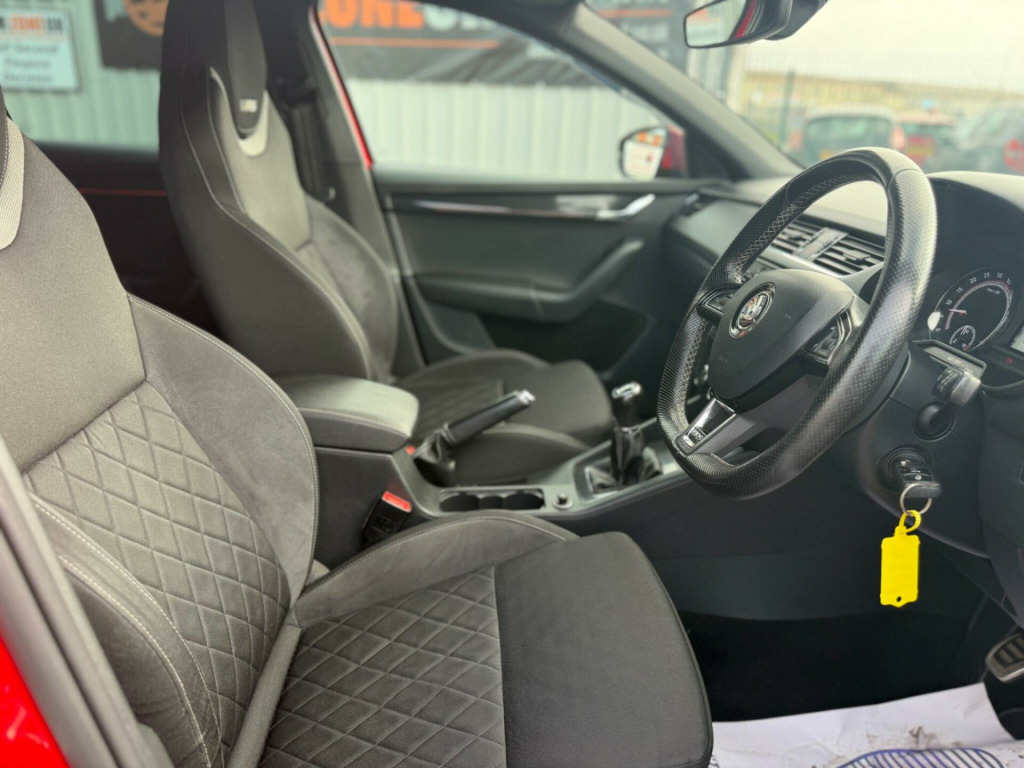 2018 Skoda Octavia 2.0 TDI vRS Manual – ULEZ – Finance – PXA well presented Skoda Octavia vRS finished in red, offering strong 2.0 diesel performance, excellent fuel economy, and the perfect balance of performance and practicality in a five door hatchback.Finance available and easy to arrange. Apply online for a tailored quote.This example has been fully prepared, drives exactly as it should, and benefits from low mileage for its age. A superb option for someone looking for a vRS model with strong performance, everyday usability, and Skoda reliability.Key Features- 2.0 TDI diesel engine- vRS specification- Manual gearbox- Euro 6 ULEZ compliant- Satellite navigation- Bluetooth media and hands free- Dual zone climate control- Front and rear parking sensors- Alloy wheels- Sports seats- ISOFIX child seat pointsCondition and DriveThe car has been inspected and prepared prior to sale.The engine pulls strongly, the gearbox operates smoothly, and the car drives exactly as it should. No warning lights present.The interior is clean and well cared for, and the exterior presents very well overall with only light age related marks.Preparation and Peace of Mind- Supplied with a clean MOT showing no advisories- Oil service carried out prior to sale- Mechanically checked- Warranty included- All Vehicles HPI ClearReady to drive away.Finance, Part Exchange and DeliveryFinance available with competitive packages. Apply online or request a tailored quote.Part exchange welcome at trade values.Nationwide delivery available.Why Buy From Us- No Pushy Sales – Just Great Cars.- Vehicles prepared before sale- All Vehicles HPI Clear- Warranty included- FCA authorised dealer- Viewings by appointmentViewings strictly by appointment.Contact us to arrange a viewing or request further details.. 18in Alloy Wheels - Gemini Anthracite, 8 Loudspeakers, AUX-IN - USB - SD Card and Proximity Sensor, Acoustic Parking Sensors - Rear, Aero Windscreen Wipers with Intermittent Function, Air Re-Circulation with Pollen Filter, Airbags - Driver Knee, Airbags - Passenger Deactivation Switch, Alarm, Amundsen Touchscreen Satellite Navigation System and Integrated Wi-Fi, Auto Dimming Rear View Mirror, Automatic Post Collision Braking System, Black Roof Rails, Bluetooth, Body Coloured Bumpers and Protective Side Mouldings, Body Coloured Door Mirrors and Door Handles, Colour Multifunction Trip Computer, Cruise Control, DAB Radio, Door Handles - Interior in Chrome, Door Sill Trims with vRS Logo, Driver Fatigue Assistant, Driver Personalisation, Driver and Passenger Front and Side Airbags, Dual-Zone Air Conditioning with Humidity Sensor and Control, ESC inc ABS-EBV-MSR-ASR-EDS-HBA-DSR-ESBS-TSA-MKB-XDS and Prefill, Electrically Adjustable and Heated Door Mirrors, Electro-Mechanical Power Steering, Electronic Engine Immobiliser, Front Armrest with Storage Box, Front and Rear Electric Windows, Fuel Supply Cut Off Switch, Full LED Headlights with AFS and LED Daytime Running Lights, Gear Change Recommendation, Glasses Storage Compartment, Glovebox - Air Conditioned, Glovebox - Illuminated, HHC - Hill Hold Control, Head and Curtain Airbags, Headlights - Internally Adjustable Beam Level, Height Adjustable Driver and Passenger Seats with Lumbar, Height Adjustable Front and Rear Head Restraints - Three, Height and Reach Adjustable Steering Wheel, High LED Rear Lights, High Level 3rd Rear Brake Light, Illuminated Front and Rear Footwells, Illuminated Luggage Compartment, Interior Light with Door Pillar Switches, LED Front Fog Lights, LED Interior Light Package, Lane Assistant, Light Assistant, Lighting Interior Door Handles Front and Rear, Luggage Compartment - Lashing Eyelets, Luggage Compartment Lighting - Two Side Lamps, MDI - Multi Device Interface, Outdoor Temperature Gauge, Passenger and Drivers Vanity Mirrors, Performance Mode Selection, Privacy Glass From B-Pillar Back, Rain Sensor, Rear Armrest with Load-Through Boot Access, Rear Backrest Release from Boot, Rear Window Wiper, Red Brake Calipers, Remote Central Door Locking, Safety Vest Holder Under Passenger Seat, Seatbelt Warning Light - All Passengers, SmartLink, Split and Folding Rear Seats, Steering Wheel - Super Sport 3-Spoke Leather Multifunction with vRS Logo, Storage - Pockets on Rear of Front Seats, TPMS - Tyre Pressure Monitoring System, Telescopic Front Headlight Washers, Textile Floor Mat Set, Tinted Glass, Two ISOFIX Child Seat Fittings in Rear, Tyre Repair Kit, Umbrella Under Front Passenger Seat, Voice Control, XDS Advance Stability Control, vRS Exterior Design - Bumpers and Spoiler, vRS Sport Seats, Columbus 9.2in Touchscreen Satellite Navigation System, 18in Alloy Wheels - Gemini - Silver, Gloss Black Roof Rails, vRS Cloth - Black with Silver Stitching. Part service history