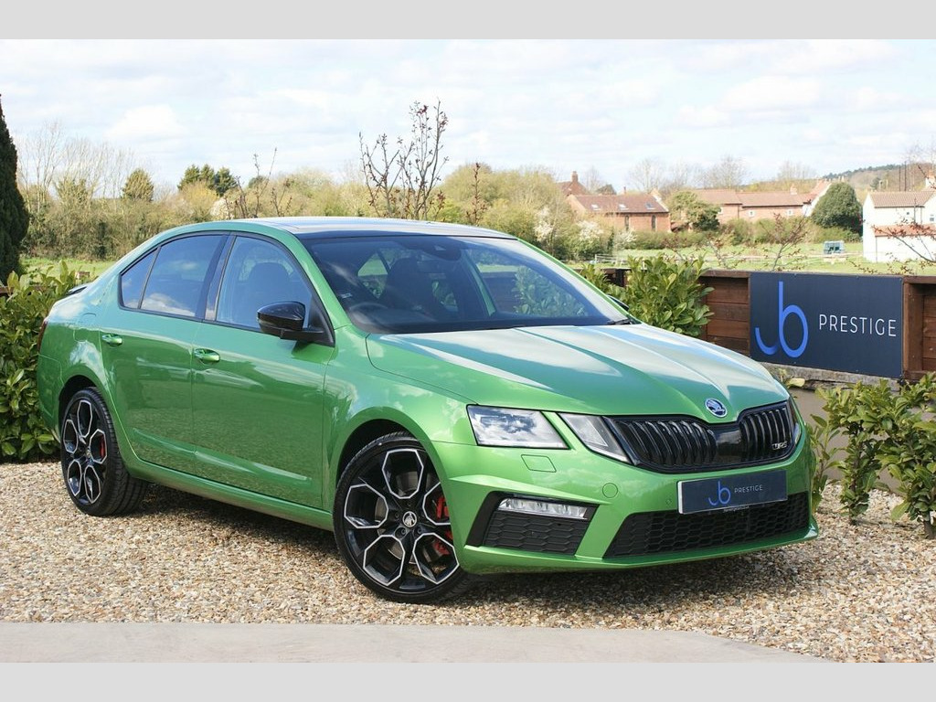 2019/69 Skoda Octavia 2.0 TSI DSG vRS Challenge edition in Rallye green metallic with half leather and alcantara interior with red contrast stitching. Full Skoda main dealer service history, previously supplied by me nearly 4 years ago and is the highest spec Octavia vRS i have ever come across! Specification includes exterior black pack, privacy glass, panoramic glass sunroof, 19 inch 'extreme' alloy wheels in gloss black with diamond cut finish, red brake calipers, electric folding mirrors, LED headlights, intelligent light assistant with auto high beam assist, cornering front fog lights with black surround, headlight wash system, front and rear parking sensors with reversing camera, keyless entry/exit with keyless start, black rear bumper trim, fixed rear spoiler in gloss black, carbon fibre effect interior trims with ambient lighting, electric seats with driver memory, electric lumbar support, heated front and rear seats, heated steering wheel, radar guided adaptive cruise control, DCC dynamic chassis control, digital cockpit, canton surround sound system, heated front windscreen, VAQ front diff, lane assist, satellite navigation system, DAB radio, smartphone link, apple car play, android, bluetooth, wi-fi, dual zone climate control, auto dimming mirrors, Skoda comfort pack, simply clever package, rear USB ports, space saver spare wheel and auto lights. Full Skoda main dealer service history having had a total of 7 services at 5441 miles, 13816 miles, 22818 mile 19in Alloy Wheels - Xtreme Black, 8 Loudspeakers, ACC - Adaptive Cruise Control, Acoustic Front and Rear Parking Sensors, Aero Windscreen Wipers with Intermittent, Air Re-Circulation with Pollen Filter, Airbags - Driver Knee, Airbags - Passenger Deactivation Switch, Alarm, Aluminium Pedals, Amundsen Touchscreen Satellite Navigatio, Auto Dimming Rear View Mirror, Automatic Post Collision Braking System, Black Exhaust Tailpipes with Sports Soun, Black Roof Headlining, Black vRS Badging on Front and Rear, Bluetooth, Canton Sound System, Colour Multifunction Trip Computer, Cornering Front Fog Lights with Black Su, Cruise Control, DAB Radio, DCC - Dynamic Chassis Control, Door Handles - Body Colo