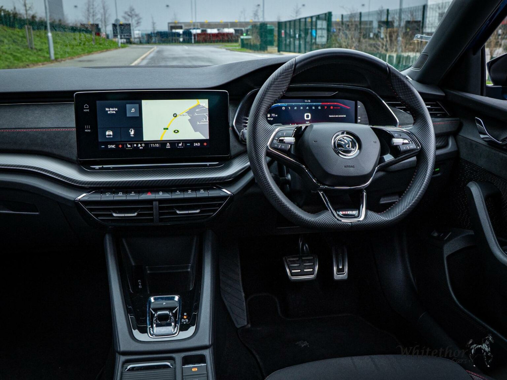 FREE DELIVERY WITHIN 200 MILES – Here we have a stunning SKODA Octavia vRS finished in Race Blue Metallic. This being the range topping vRS means it comes with fantastic spec from the factory with things such as: Full Matrix LED Headlights with AFS Adaptive Front Light System – Adaptive Cruise Control – 19in Alloy Wheels – Electronic Limited-Slip Front Differential – Exterior Gloss Black Sports Styling – Heated Front Seats – Keyless Entry and Start-Stop including Rear Doors – LED Interior Light Pack – Lane Assist – Smartlink Including Apple CarPlay, Android Auto and MirrorLink – Three Spoke Leather Sports Multifunction Steering Wheel – Virtual Cockpit with 10.25in Display – and much more. , This example also benefits from vRS Cloth in Black with Red Stitching which was an optional extra from the factory when new. This car has had 2 services in total (1 SKODA, 1 Independent) last carried out at 20,000 miles. First MOT due July 2026. 3 Month £2000 Claim Limit Warranty is included with the sale but the option to upgrade to a 12M, 24M, & 36M £5000 Claim Limit Nation Wide Premium Autoguard Warranty with Breakdown Cover is available. Multiple Finance Options, Competitive Part Exchange Prices. All Cars Are HPI, MotorCheck & Experian Clear. Further Vehicle Delivery Options Also Available. All Rights Reserved - Whitethor cars exercise all reasonable care and skill in providing you with vehicle information and data. The specification is attained through HPI, Experian & Autotrader VRM. Options Sold as packs may be shown individually, spec check is a guide so please contact us or physically verify any info that is crucial.