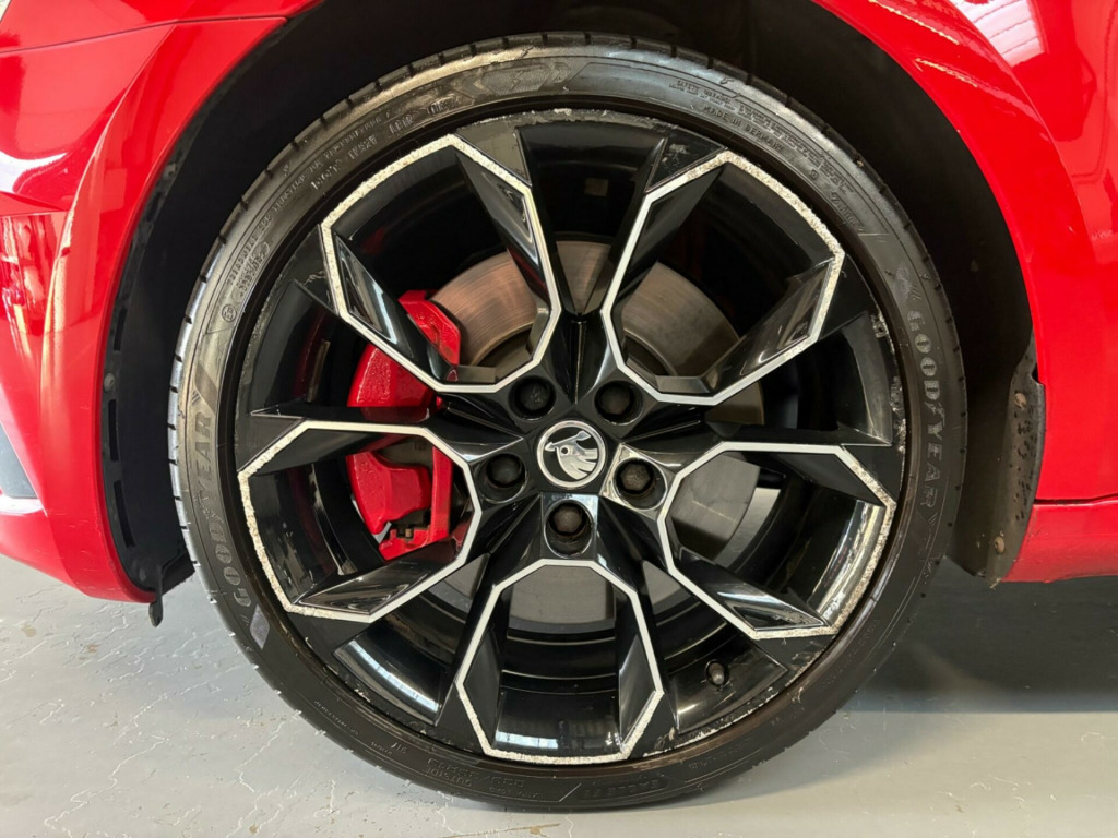 Skoda Octavia 2.0 TSI VRS finished in stunning racing red, comes with 19inch alloy wheels and good tyres all round. Our example has a full service history and will also be serviced before sale. High specification car including half leather seats with red stitching, heated electric seats with driver memory function, front and rear parking sensors, navigation system, apple carPlay, plus a lot more! In great condition throughout and definitely one to be seen and driven to be appreciated! MOT EXPIRY 20/07/2026, ALL MAJOR DEBIT AND CREDIT CARDS ACCEPTED ated front and rear seats, vrs alcantara - black with red stitching, winter pack, acoustic front and rear parking sensors, 19in alloy wheels - xtreme gloss black, 8 loudspeakers, aux-in - usb - sd card and proximity sensor, acoustic parking sensors - rear, aero windscreen wipers with intermittent function, air re-circulation with pollen filter, airbags - driver knee, airbags - passenger deactivation switch, alarm, amundsen touchscreen satellite navigation system and integrated wi-fi, auto dimming rear view mirror, automatic post collision braking system, black design package plus, black gloss exhaust tailpipes with sports sound, bluetooth, body coloured bumpers and protective side mouldings, colour multifunction trip computer, cruise control, dab radio, decorative insert in gloss black, door handles - body coloured, door handles - interior in chrome, door sill trims with vrs logo, driver fatigue assistant, driver personalisation, driver and passenger front and side airbags, dual-zone air conditioning with humidity sensor and control, esc inc abs-ebv-msr-asr-eds-hba-dsr-esbs-tsa-mkb-xds and prefill, electrically adjustable - heated - folding - auto-dimming door mirrors, electrically adjustable front seats, electro-mechanical front locking differential, electro-mechanical power steering, electronic engine immobiliser, front armrest with storage box, front and rear electric windows, fuel supply cut off switch, full led headlights with afs and led daytime running lights, gear change recommendation, glasses storage compartment, gloss black door mirror housing, gloss black vrs front grille, glovebox - air conditioned, glovebox - illuminated, hhc - hill hold control, head and curtain airbags, headlights - internally adjustable beam level, heated front seats, height adjustable driver and passenger seats with lumbar, height adjustable front and rear head restraints - three, height and reach adjustable steering wheel, high led rear lights, high level 3rd rear brake light, illuminated front and rear footwells, illuminated luggage compartment, interior light with door pillar switches, led front fog lights, led interior light package, lane assistant, light assistant, lighting interior door handles front and rear, luggage compartment - lashing eyelets, luggage compartment lighting - two side lamps, mdi - multi device interface, outdoor temperature gauge, passenger and drivers vanity mirrors, performance mode selection, privacy glass from b-pillar back, rain sensor, rear armrest with 2 cupholders and load through provision, rear backrest release, rear window wiper, red brake calipers, remote central door locking, safety vest holder under passenger seat, seatbelt warning light - all passengers, seats - drivers memory function, smartlink, split and folding rear seats, steering wheel - super sport 3-spoke leather multifunction with vrs logo, storage - pockets on rear of front seats, tpms - tyre pressure monitoring system, telescopic front headlight washers, textile floor mat set, tinted glass, two isofix child seat fittings in rear, tyre repair kit, umbrella under front passenger seat, voice control, xds advance stability control, vrs exterior design - bumpers and spoiler, vrs sport seats