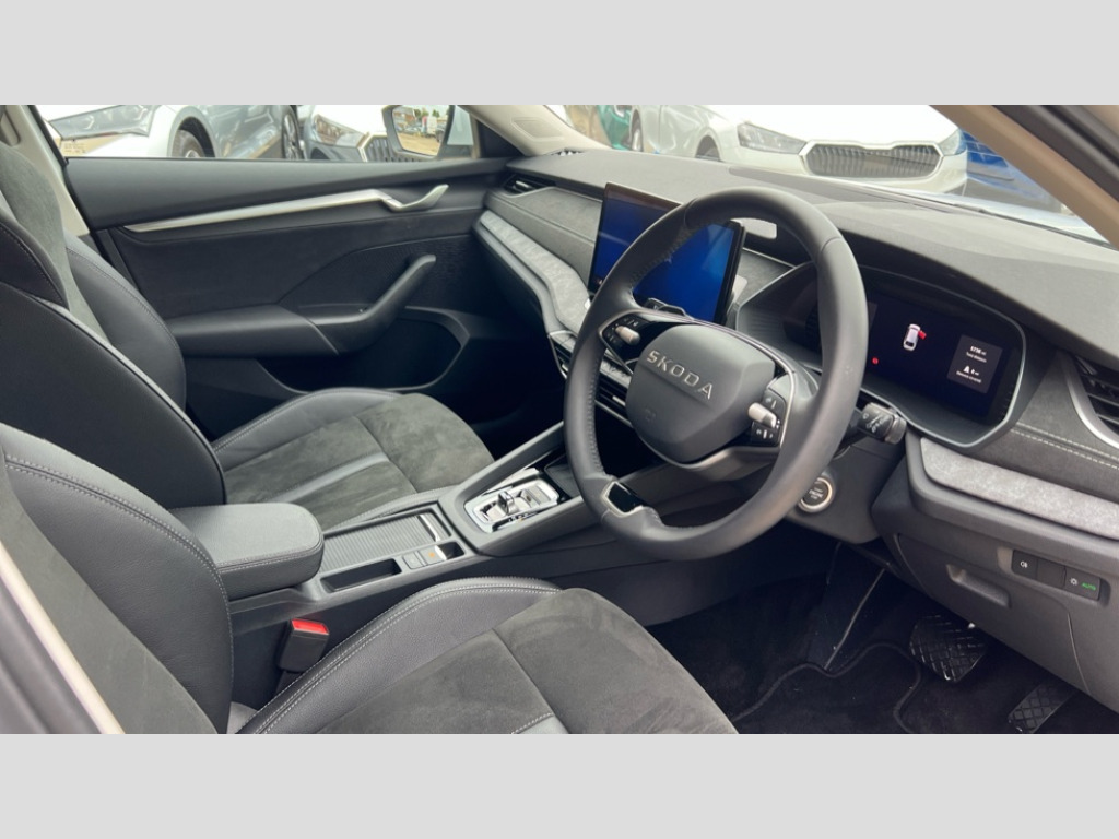 Skoda Octavia 1.5 TSI 150 e-TEC SE L 5dr DSG 1x USB Typc C port in rear view mirror, 4x USB Type C ports - 2x in front centre console and 2x in rear (45W), Drive mode selection, Driver fatigue sensor, eCall emergency system, Electro-mechanical power steering, Front assist system, Traffic jam assist, Traffic sign recognition, Turn Assist, Virtual Cockpit - 10.25" digital display, Voice control system, Wireless charging (15W) with cooling function, Wireless SmartLink for Apple CarPlay and Android Auto, 13" touchscreen display with navigation, DAB Digital radio, Aero front windscreen wipers with intermittent function, Auto dimming rear view mirror, Body colour bumpers, Body colour door mirrors and handles, Chrome grille surround, Chrome roof rails, Chrome strip in lower front bumper, Chrome window surrounds, Electric front and rear windows, Heated rear windscreen, High level third brake light, Ice scraper in fuel cap, LED daytime running lights, LED Headlights, Logo projection in front doors, Rain and light sensors, Rear fog light on one side, Rear privacy glass, Rear side wing doors, Rear spoiler, Rear window wiper, 12 volt socket in boot, 3 rear headrests, 3 seat bench in 2nd row, 4 foldable roof handles, Front head restraints, Heated front seats, Illuminated glovebox, Interior door handles in dark chrome, Jumbo Box storage, Luggage compartment lighting x2 lights, Mechanical rear seat release from boot, Single front passenger seat, Steering wheel in black leather with black stitching, Storage compartments in left and right of boot, Sun visors with mirrors, Sunglasses storage, Ticket holder, Umbrella in door panel, Unsplit rear bench seat, split folding backrest with centre armrest with cupholder, Comfort package - Octavia Estate, Simply clever package premium - Octavia, 3x3 point rear seat belts, Alarm with interior monitoring, tilt sensor and back up horn, Curtain airbags and front side airbags, Driver and front passenger airbags, Drivers knee airbag, Electronic parking brake, ESC including ABS, EBV, MSR, ASR, EDS, HBA, DSR, Front central airbag, Hill hold assist, ISOFIX on front passenger seat and outer rear seats, Passenger airbag deactivate switch, Three point seat belts in front and rear, Two tone horn, Tyre pressure monitor, Visual and acoustic seat belt reminder, Warning reflectors in front door, Anti-theft wheel bolts, Keyless start/stop, Remote central locking, Chrome air vent surrounds