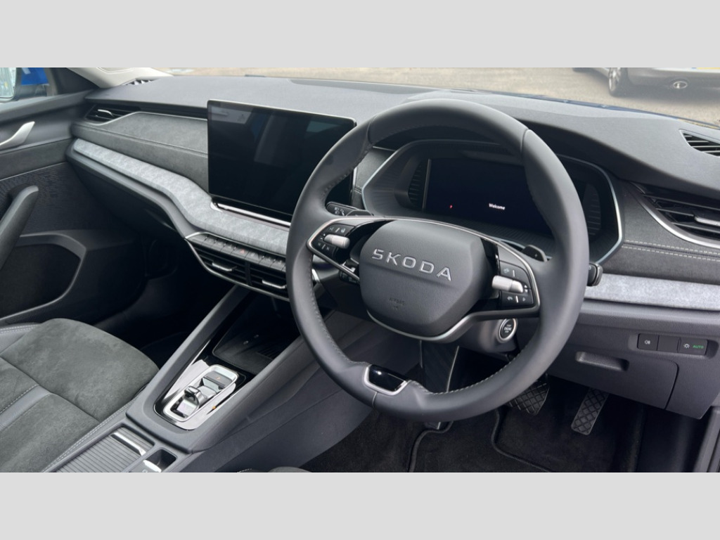 Skoda Octavia 1.5 TSI 150 e-TEC SE L 5dr DSG 1x USB Typc C port in rear view mirror, 4x USB Type C ports - 2x in front centre console and 2x in rear (45W), Drive mode selection, Driver fatigue sensor, eCall emergency system, Electro-mechanical power steering, Front assist system, Traffic jam assist, Traffic sign recognition, Turn Assist, Virtual Cockpit - 10.25" digital display, Voice control system, Wireless charging (15W) with cooling function, Wireless SmartLink for Apple CarPlay and Android Auto, 13" touchscreen display with navigation, DAB Digital radio, Aero front windscreen wipers with intermittent function, Auto dimming rear view mirror, Body colour bumpers, Body colour door mirrors and handles, Chrome grille surround, Chrome roof rails, Chrome strip in lower front bumper, Chrome window surrounds, Electric front and rear windows, Heated rear windscreen, High level third brake light, Ice scraper in fuel cap, LED daytime running lights, LED Headlights, Logo projection in front doors, Rain and light sensors, Rear fog light on one side, Rear privacy glass, Rear side wing doors, Rear spoiler, Rear window wiper, 12 volt socket in boot, 3 rear headrests, 3 seat bench in 2nd row, 4 foldable roof handles, Front head restraints, Heated front seats, Illuminated glovebox, Interior door handles in dark chrome, Jumbo Box storage, Luggage compartment lighting x2 lights, Mechanical rear seat release from boot, Single front passenger seat, Steering wheel in black leather with black stitching, Storage compartments in left and right of boot, Sun visors with mirrors, Sunglasses storage, Ticket holder, Umbrella in door panel, Unsplit rear bench seat, split folding backrest with centre armrest with cupholder, Comfort package - Octavia Estate, Simply clever package premium - Octavia, 3x3 point rear seat belts, Alarm with interior monitoring, tilt sensor and back up horn, Curtain airbags and front side airbags, Driver and front passenger airbags, Drivers knee airbag, Electronic parking brake, ESC including ABS, EBV, MSR, ASR, EDS, HBA, DSR, Front central airbag, Hill hold assist, ISOFIX on front passenger seat and outer rear seats, Passenger airbag deactivate switch, Three point seat belts in front and rear, Two tone horn, Tyre pressure monitor, Visual and acoustic seat belt reminder, Warning reflectors in front door, Anti-theft wheel bolts, Keyless start/stop, Remote central locking, Chrome air vent surrounds