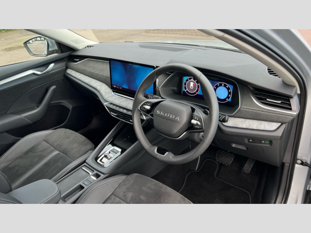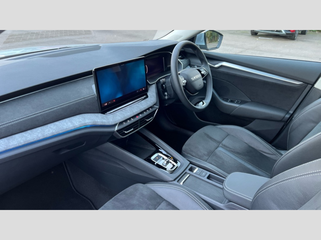 Skoda Octavia 1.5 TSI 150 e-TEC SE L 5dr DSG 1x USB Typc C port in rear view mirror, 4x USB Type C ports - 2x in front centre console and 2x in rear (45W), Drive mode selection, Driver fatigue sensor, eCall emergency system, Electro-mechanical power steering, Front assist system, Traffic jam assist, Traffic sign recognition, Turn Assist, Virtual Cockpit - 10.25" digital display, Voice control system, Wireless charging (15W) with cooling function, Wireless SmartLink for Apple CarPlay and Android Auto, 13" touchscreen display with navigation, DAB Digital radio, Aero front windscreen wipers with intermittent function, Auto dimming rear view mirror, Body colour bumpers, Body colour door mirrors and handles, Chrome grille surround, Chrome roof rails, Chrome strip in lower front bumper, Chrome window surrounds, Electric front and rear windows, Heated rear windscreen, High level third brake light, Ice scraper in fuel cap, LED daytime running lights, LED Headlights, Logo projection in front doors, Rain and light sensors, Rear fog light on one side, Rear privacy glass, Rear side wing doors, Rear spoiler, Rear window wiper, 12 volt socket in boot, 3 rear headrests, 3 seat bench in 2nd row, 4 foldable roof handles, Front head restraints, Heated front seats, Illuminated glovebox, Interior door handles in dark chrome, Jumbo Box storage, Luggage compartment lighting x2 lights, Mechanical rear seat release from boot, Single front passenger seat, Steering wheel in black leather with black stitching, Storage compartments in left and right of boot, Sun visors with mirrors, Sunglasses storage, Ticket holder, Umbrella in door panel, Unsplit rear bench seat, split folding backrest with centre armrest with cupholder, Comfort package - Octavia Estate, Simply clever package premium - Octavia, 3x3 point rear seat belts, Alarm with interior monitoring, tilt sensor and back up horn, Curtain airbags and front side airbags, Driver and front passenger airbags, Drivers knee airbag, Electronic parking brake, ESC including ABS, EBV, MSR, ASR, EDS, HBA, DSR, Front central airbag, Hill hold assist, ISOFIX on front passenger seat and outer rear seats, Passenger airbag deactivate switch, Three point seat belts in front and rear, Two tone horn, Tyre pressure monitor, Visual and acoustic seat belt reminder, Warning reflectors in front door, Anti-theft wheel bolts, Keyless start/stop, Remote central locking, Chrome air vent surrounds