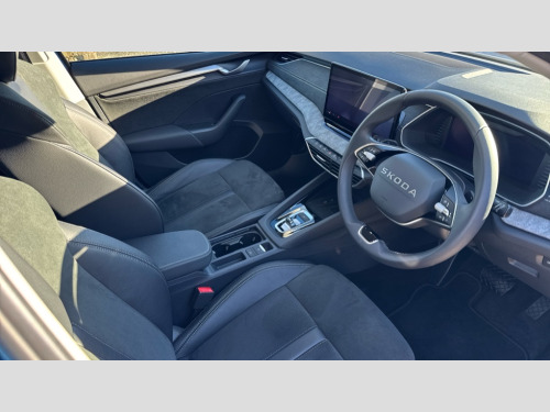Skoda Octavia 1.5 TSI 150 e-TEC SE L 5dr DSG 1x USB Typc C port in rear view mirror, 4x USB Type C ports - 2x in front centre console and 2x in rear (45W), Drive mode selection, Driver fatigue sensor, eCall emergency system, Electro-mechanical power steering, Front assist system, Traffic jam assist, Traffic sign recognition, Turn Assist, Virtual Cockpit - 10.25" digital display, Voice control system, Wireless charging (15W) with cooling function, Wireless SmartLink for Apple CarPlay and Android Auto, 13" touchscreen display with navigation, DAB Digital radio, Aero front windscreen wipers with intermittent function, Auto dimming rear view mirror, Body colour bumpers, Body colour door mirrors and handles, Chrome grille surround, Chrome roof rails, Chrome strip in lower front bumper, Chrome window surrounds, Electric front and rear windows, Heated rear windscreen, High level third brake light, Ice scraper in fuel cap, LED daytime running lights, LED Headlights, Logo projection in front doors, Rain and light sensors, Rear fog light on one side, Rear privacy glass, Rear side wing doors, Rear spoiler, Rear window wiper, 12 volt socket in boot, 3 rear headrests, 3 seat bench in 2nd row, 4 foldable roof handles, Front head restraints, Heated front seats, Illuminated glovebox, Interior door handles in dark chrome, Jumbo Box storage, Luggage compartment lighting x2 lights, Mechanical rear seat release from boot, Single front passenger seat, Steering wheel in black leather with black stitching, Storage compartments in left and right of boot, Sun visors with mirrors, Sunglasses storage, Ticket holder, Umbrella in door panel, Unsplit rear bench seat, split folding backrest with centre armrest with cupholder, Comfort package - Octavia Estate, Simply clever package premium - Octavia, 3x3 point rear seat belts, Alarm with interior monitoring, tilt sensor and back up horn, Curtain airbags and front side airbags, Driver and front passenger airbags, Drivers knee airbag, Electronic parking brake, ESC including ABS, EBV, MSR, ASR, EDS, HBA, DSR, Front central airbag, Hill hold assist, ISOFIX on front passenger seat and outer rear seats, Passenger airbag deactivate switch, Three point seat belts in front and rear, Two tone horn, Tyre pressure monitor, Visual and acoustic seat belt reminder, Warning reflectors in front door, Anti-theft wheel bolts, Keyless start/stop, Remote central locking, Chrome air vent surrounds