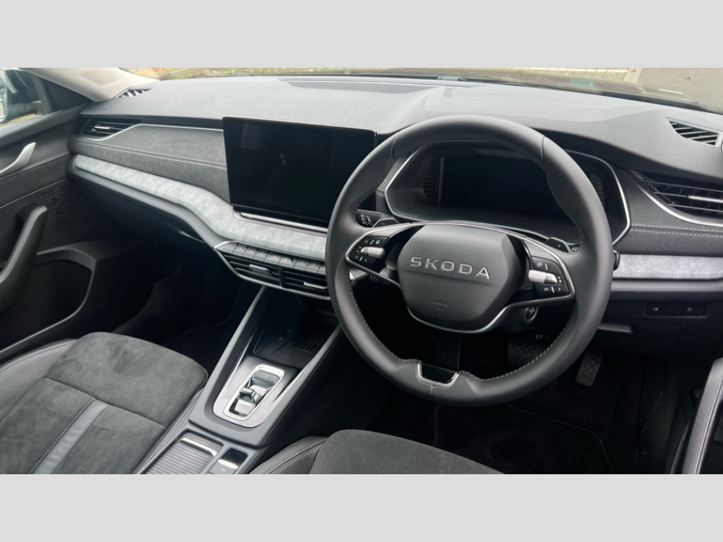 Skoda Octavia 1.5 TSI 150 e-TEC SE L 5dr DSG 1x USB Typc C port in rear view mirror, 4x USB Type C ports - 2x in front centre console and 2x in rear (45W), Drive mode selection, Driver fatigue sensor, eCall emergency system, Electro-mechanical power steering, Front assist system, Traffic jam assist, Traffic sign recognition, Turn Assist, Virtual Cockpit - 10.25" digital display, Voice control system, Wireless charging (15W) with cooling function, Wireless SmartLink for Apple CarPlay and Android Auto, 13" touchscreen display with navigation, DAB Digital radio, Aero front windscreen wipers with intermittent function, Auto dimming rear view mirror, Body colour bumpers, Body colour door mirrors and handles, Chrome grille surround, Chrome roof rails, Chrome strip in lower front bumper, Chrome window surrounds, Electric front and rear windows, Heated rear windscreen, High level third brake light, Ice scraper in fuel cap, LED daytime running lights, LED Headlights, Logo projection in front doors, Rain and light sensors, Rear fog light on one side, Rear privacy glass, Rear side wing doors, Rear spoiler, Rear window wiper, 12 volt socket in boot, 3 rear headrests, 3 seat bench in 2nd row, 4 foldable roof handles, Front head restraints, Heated front seats, Illuminated glovebox, Interior door handles in dark chrome, Jumbo Box storage, Luggage compartment lighting x2 lights, Mechanical rear seat release from boot, Single front passenger seat, Steering wheel in black leather with black stitching, Storage compartments in left and right of boot, Sun visors with mirrors, Sunglasses storage, Ticket holder, Umbrella in door panel, Unsplit rear bench seat, split folding backrest with centre armrest with cupholder, Comfort package - Octavia Estate, Simply clever package premium - Octavia, 3x3 point rear seat belts, Alarm with interior monitoring, tilt sensor and back up horn, Curtain airbags and front side airbags, Driver and front passenger airbags, Drivers knee airbag, Electronic parking brake, ESC including ABS, EBV, MSR, ASR, EDS, HBA, DSR, Front central airbag, Hill hold assist, ISOFIX on front passenger seat and outer rear seats, Passenger airbag deactivate switch, Three point seat belts in front and rear, Two tone horn, Tyre pressure monitor, Visual and acoustic seat belt reminder, Warning reflectors in front door, Anti-theft wheel bolts, Keyless start/stop, Remote central locking, Chrome air vent surrounds
