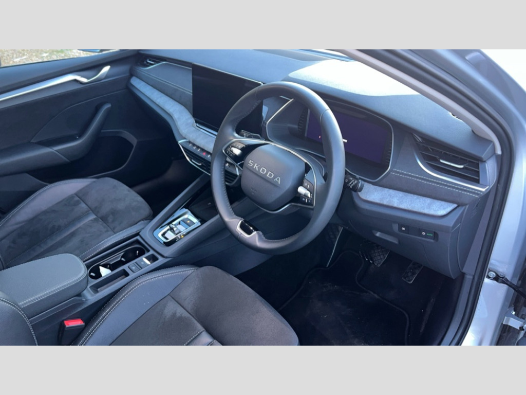 Skoda Octavia 1.5 TSI 150 e-TEC SE L 5dr DSG 1x USB Typc C port in rear view mirror, 4x USB Type C ports - 2x in front centre console and 2x in rear (45W), Drive mode selection, Driver fatigue sensor, eCall emergency system, Electro-mechanical power steering, Front assist system, Traffic jam assist, Traffic sign recognition, Turn Assist, Virtual Cockpit - 10.25" digital display, Voice control system, Wireless charging (15W) with cooling function, Wireless SmartLink for Apple CarPlay and Android Auto, 13" touchscreen display with navigation, DAB Digital radio, Aero front windscreen wipers with intermittent function, Auto dimming rear view mirror, Body colour bumpers, Body colour door mirrors and handles, Chrome grille surround, Chrome roof rails, Chrome strip in lower front bumper, Chrome window surrounds, Electric front and rear windows, Heated rear windscreen, High level third brake light, Ice scraper in fuel cap, LED daytime running lights, LED Headlights, Logo projection in front doors, Rain and light sensors, Rear fog light on one side, Rear privacy glass, Rear side wing doors, Rear spoiler, Rear window wiper, 12 volt socket in boot, 3 rear headrests, 3 seat bench in 2nd row, 4 foldable roof handles, Front head restraints, Heated front seats, Illuminated glovebox, Interior door handles in dark chrome, Jumbo Box storage, Luggage compartment lighting x2 lights, Mechanical rear seat release from boot, Single front passenger seat, Steering wheel in black leather with black stitching, Storage compartments in left and right of boot, Sun visors with mirrors, Sunglasses storage, Ticket holder, Umbrella in door panel, Unsplit rear bench seat, split folding backrest with centre armrest with cupholder, Comfort package - Octavia Estate, Simply clever package premium - Octavia, 3x3 point rear seat belts, Alarm with interior monitoring, tilt sensor and back up horn, Curtain airbags and front side airbags, Driver and front passenger airbags, Drivers knee airbag, Electronic parking brake, ESC including ABS, EBV, MSR, ASR, EDS, HBA, DSR, Front central airbag, Hill hold assist, ISOFIX on front passenger seat and outer rear seats, Passenger airbag deactivate switch, Three point seat belts in front and rear, Two tone horn, Tyre pressure monitor, Visual and acoustic seat belt reminder, Warning reflectors in front door, Anti-theft wheel bolts, Keyless start/stop, Remote central locking, Chrome air vent surrounds