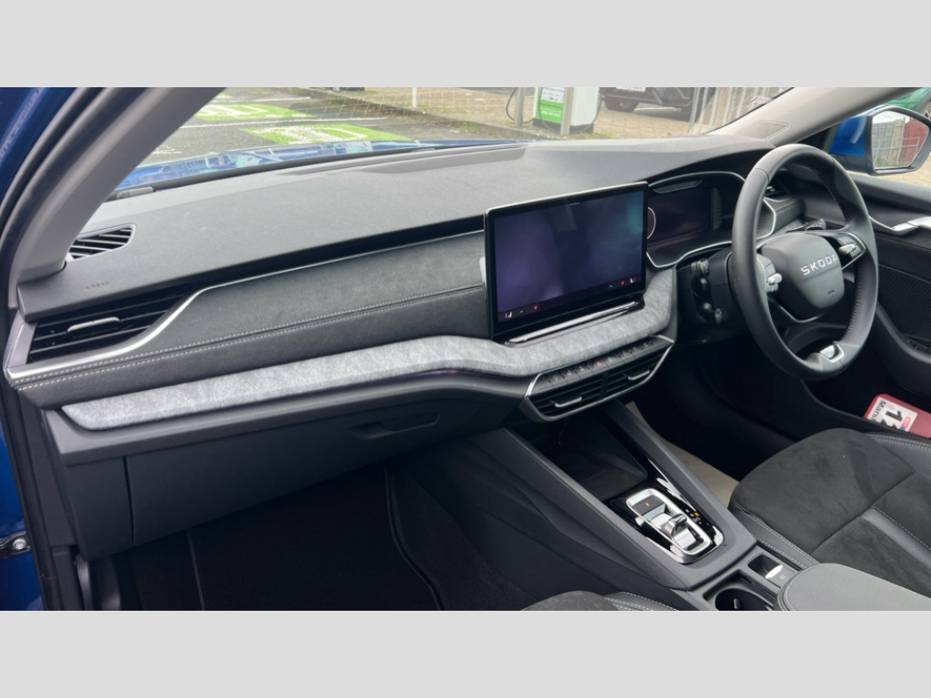 Skoda Octavia 1.5 TSI 150 e-TEC SE L 5dr DSG 1x USB Typc C port in rear view mirror, 4x USB Type C ports - 2x in front centre console and 2x in rear (45W), Drive mode selection, Driver fatigue sensor, eCall emergency system, Electro-mechanical power steering, Front assist system, Traffic sign recognition, Turn Assist, Virtual Cockpit - 10.25" digital display, Voice control system, Wireless charging (15W) with cooling function, Wireless SmartLink for Apple CarPlay and Android Auto, 13" touchscreen display with navigation, DAB Digital radio, Aero front windscreen wipers with intermittent function, Auto dimming rear view mirror, Body colour bumpers, Body colour door mirrors and handles, Chrome grille surround, Chrome roof rails, Chrome strip in lower front bumper, Chrome window surrounds, Electric front and rear windows, Electrically adjustable, heated, folding and driver side auto-dimming door mirrors, Heated rear windscreen, High level third brake light, Ice scraper in fuel cap, LED daytime running lights, LED Headlights, Logo projection in front doors, Rain and light sensors, Rear fog light on one side and reversing lights on both sides, Rear privacy glass, Rear side wing doors, Rear spoiler, Rear window wiper, 12 volt socket in boot, 3 rear headrests, 3 seat bench in 2nd row, 4 foldable roof handles, Front head restraints, Heated front seats, Illuminated glovebox, Interior door handles in dark chrome, Jumbo Box storage, Luggage compartment lighting x2 lights, Mechanical rear seat release from boot, Single front passenger seat, Steering wheel in black leather with black stitching, Storage compartments in left and right of boot, Sun visors with mirrors, Sunglasses storage, Ticket holder, Two-spoke leather multi function steering wheel with paddles, Umbrella in door panel, Unsplit rear bench seat, split folding backrest with centre armrest with cupholder, Comfort package - Octavia Estate, Simply clever package premium - Octavia, 3x3 point rear seat belts, Alarm with interior monitoring, tilt sensor and back up horn, Curtain airbags and front side airbags, Driver and front passenger airbags, Drivers knee airbag, Electronic parking brake, ESC including ABS, EBV, MSR, ASR, EDS, HBA, DSR, Front central airbag, Hill hold assist, ISOFIX on front passenger seat and outer rear seats, Passenger airbag deactivate switch, Three point seat belts in front and rear, Two tone horn, Tyre pressure monitor, Visual and acoustic seat belt reminder, Warning reflectors in front door, Anti-theft wheel bolts, Keyless entry and start/stop, Remote central locking, Chrome air vent surrounds
