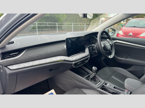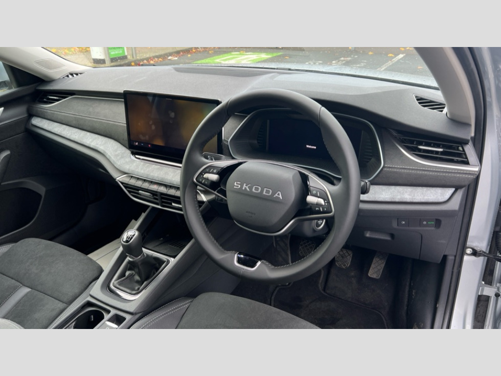 Skoda Octavia 1.5 TSI 150 SE L 5dr 1x USB Typc C port in rear view mirror, 4x USB Type C ports - 2x in front centre console and 2x in rear (45W), Drive mode selection, Driver fatigue sensor, eCall emergency system, Electro-mechanical power steering, Front and rear parking sensors with manoeuvre assist, Front assist system, Traffic jam assist, Traffic sign recognition, Turn Assist, Virtual Cockpit - 10.25" digital display, Voice control system, Wireless charging (15W) with cooling function, Wireless SmartLink for Apple CarPlay and Android Auto, 13" touchscreen display with navigation, DAB Digital radio, Aero front windscreen wipers with intermittent function, Auto dimming rear view mirror, Body colour bumpers, Body colour door mirrors and handles, Chrome grille surround, Chrome roof rails, Chrome strip in lower front bumper, Chrome window surrounds, Electric front and rear windows, Heated rear windscreen, High level third brake light, Ice scraper in fuel cap, LED daytime running lights, LED Headlights, Logo projection in front doors, Rain and light sensors, Rear fog light on one side, Rear privacy glass, Rear side wing doors, Rear spoiler, Rear window wiper, 12 volt socket in boot, 3 rear headrests, 3 seat bench in 2nd row, 4 foldable roof handles, Front head restraints, Heated front seats, Illuminated glovebox, Interior door handles in dark chrome, Jumbo Box storage, Luggage compartment lighting x2 lights, Mechanical rear seat release from boot, Single front passenger seat, Steering wheel in black leather with black stitching, Storage compartments in left and right of boot, Sun visors with mirrors, Sunglasses storage, Ticket holder, Umbrella in door panel, Unsplit rear bench seat, split folding backrest with centre armrest with cupholder, Comfort package - Octavia Estate, Simply clever package premium with Storage compartment under passenger seat - Octavia, 3x3 point rear seat belts, Alarm with interior monitoring, tilt sensor and back up horn, Curtain airbags and front side airbags, Driver and front passenger airbags, Drivers knee airbag, Electronic parking brake, ESC including ABS, EBV, MSR, ASR, EDS, HBA, DSR, Front central airbag, Hill hold assist, ISOFIX on front passenger seat and outer rear seats, Passenger airbag deactivate switch, Three point seat belts in front and rear, Two tone horn, Tyre pressure monitor, Visual and acoustic seat belt reminder, Warning reflectors in front door, Anti-theft wheel bolts, Keyless start/stop, Remote central locking, Chrome air vent surrounds