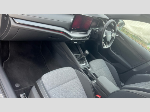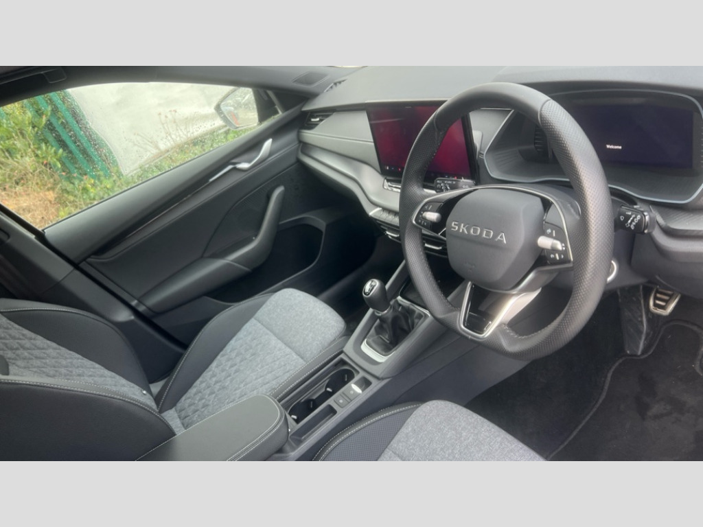 Skoda Octavia 1.5 TSI 150 Sportline 5dr 1x USB Typc C port in rear view mirror, 4x USB Type C ports - 2x in front centre console and 2x in rear (45W), Drive mode selection, Driver fatigue sensor, eCall emergency system, Front and rear parking sensors with manoeuvre assist, Front assist system, Progressive dynamic steering, Traffic sign recognition, Turn Assist, Virtual Cockpit - 10.25" digital display, Voice control system, Wireless charging (15W) with cooling function, Wireless SmartLink for Apple CarPlay and Android Auto, Sports suspension with 15mm lower, 13" touchscreen display with navigation, DAB Digital radio, Aero front windscreen wipers with intermittent function, Auto dimming rear view mirror, Body colour bumpers, Body colour door handles, Electric front and rear windows, Exterior gloss black sports styling including front grille, window surrounds, door mirrors and badging, Gloss black diffuser, Gloss black roof rails, Gloss black spoiler, Heated rear windscreen, High beam control, High level third brake light, Ice scraper in fuel cap, LED daytime running lights, Logo projection in front doors, Rain and light sensors, Rear fog light on one side, Rear privacy glass, Rear side wing doors, Rear window wiper, 12 volt socket in boot, 3 rear headrests, 3 seat bench in 2nd row, 4 foldable roof handles, Aluminium pedals, Front head restraints, Front sport seats, Heated front seats, Illuminated glovebox, Interior door handles in dark chrome, Jumbo Box storage, Luggage compartment lighting x2 lights, Mechanical rear seat release from boot, Single front passenger seat, Steering wheel in black leather with black stitching, Storage compartments in left and right of boot, Sun visors with mirrors, Sunglasses storage, Ticket holder, Umbrella in door panel, Unsplit rear bench seat, split folding backrest with centre armrest with cupholder, SportLine Design Selection pack - Octavia, 3x3 point rear seat belts, Alarm with interior monitoring, tilt sensor and back up horn, Curtain airbags and front side airbags, Driver and front passenger airbags, Drivers knee airbag, Electronic parking brake, ESC including ABS, EBV, MSR, ASR, EDS, HBA, DSR, Front central airbag, Hill hold assist, ISOFIX on front passenger seat and outer rear seats, Passenger airbag deactivate switch, Three point seat belts in front and rear, Two tone horn, Tyre pressure monitor, Visual and acoustic seat belt reminder, Warning reflectors in front door, Anti-theft wheel bolts, Keyless start/stop, Remote central locking, Gloss black air vent surrounds
