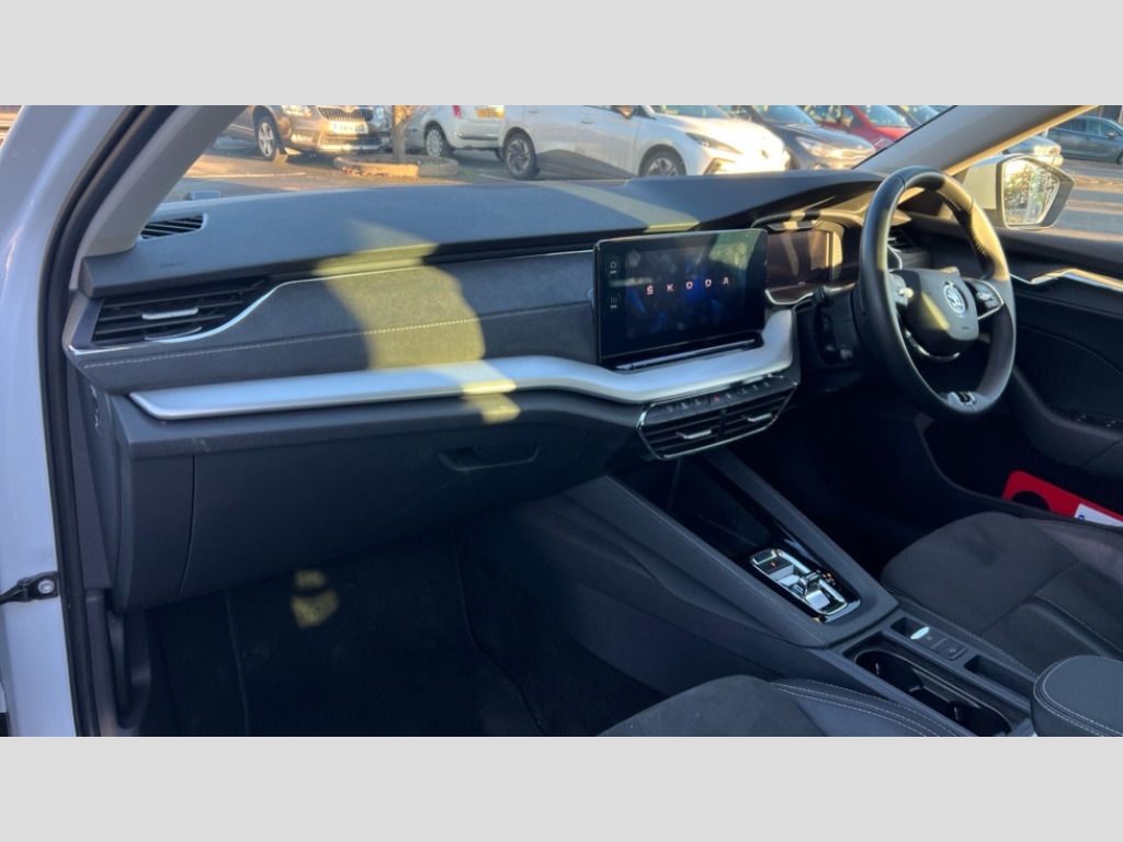 Skoda Octavia 1.5 TSI e-TEC SE L 5dr DSG 1x USB Type C port in rear view mirror (charging only), 2x USB Type C ports in rear of front centre armrest (charging only), Bluetooth system, Boot lid release from inside vehicle (electrically), Columbus satellite navigation with 10" touchscreen display, Driver fatigue sensor, eCall emergency system, Electro-mechanical power steering, Front and rear parking sensors with manoeuvre assist, Front assist system, Speed limiter, Turn Assist, Virtual Cockpit - 10.25" digital display, Voice control system, Wireless SmartLink for Apple Car Play, 2x USB Type C ports (for charging and data transfer), 8 Speakers, DAB Digital radio, Aero front windscreen wipers with intermittent function, Auto dimming rear view mirror, Body colour door mirrors and handles, Chrome grille surround, Chrome roof rails, Chrome strip in lower front bumper, Chrome window surround, Electric front and rear windows, Headlight washers, Heated rear windscreen, High level third brake light, Ice scraper in fuel cap, Rain and light sensors, Rear fog light on one side, Rear privacy glass, Rear side wing doors, Rear spoiler, Rear window wiper, 3 seat bench in 2nd row, 4 foldable roof handles, Chrome inner door handles, Front centre armrest, Front head restraints, Grey headlining, Heated front seats, Illuminated glovebox, Leather trimmed gearshift lever, Luggage compartment lighting with two side lamps, Microsuede cloth upholstery, Parcel shelf - rolling, Satin black microsuede with grey stitching in padded dash panel, Single front passenger seat, Sunglasses storage, Textile floor mat set, Ticket holder, Two-spoke leather multi function steering wheel with paddles, Umbrella in door panel, Unsplit rear bench seat and split folding backrest, Variable boot floor, 3 point front/outer rear seatbelts+pre-tensioners, Alarm with interior monitoring, tilt sensor and back up horn, Automatic door unlocking in case of crash, Automatic fuel cut off in case of crash, Automatic warning lights in case of emergency braking, Curtain airbags and front side airbags, Driver and front passenger airbags, Drivers knee airbag, Electronic parking brake, ESC including ABS, EBV, MSR, ASR, EDS, HBA, DSR, Front central airbag, Hill hold control, Hill start assist, ISOFIX on front passenger seat and outer rear seats, Manual rear child locks, Passenger airbag deactivate switch, Pro active services, Rear disc brakes, Two tone horn, Tyre pressure monitor, Visual and acoustic seat belt reminder, Warning reflectors in front door, Door locks with immobiliser, Keyless entry and start/stop including rear doors, Remote central locking, Chrome air vent surrounds, Silver squares haptik decorative inserts