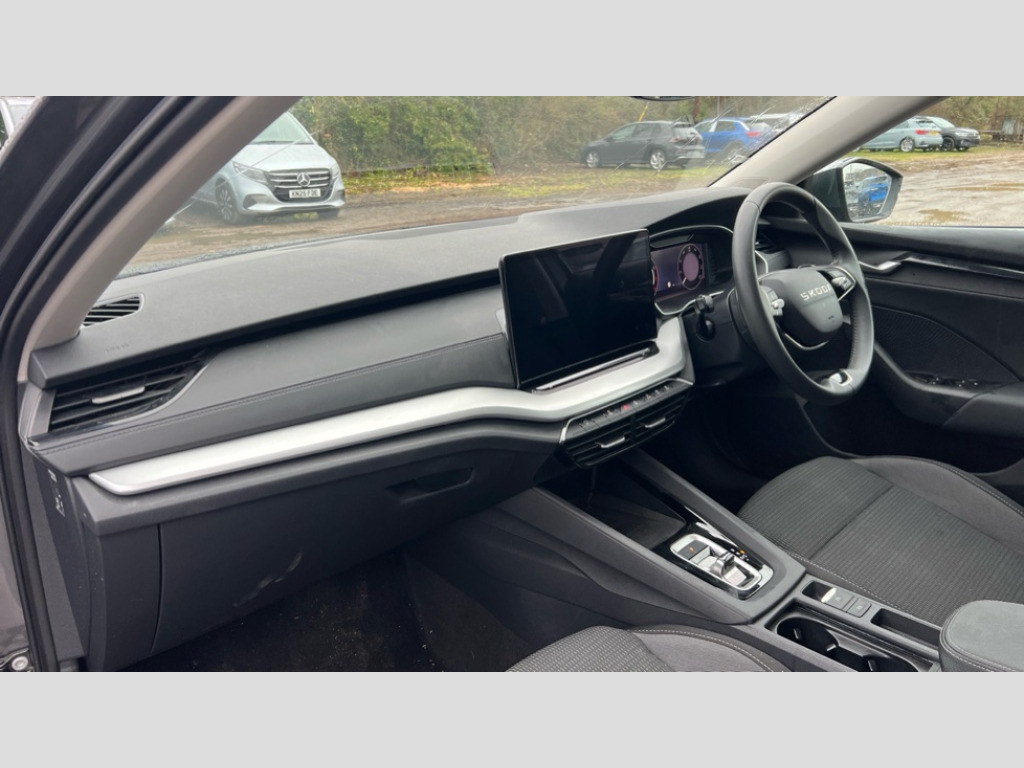 Skoda Octavia 1.5 TSI e-TEC SE Technology 5dr DSG 1x USB Typc C port in rear view mirror, 4x USB Type C ports - 2x in front centre console and 2x in rear (45W), Driver fatigue sensor, eCall emergency system, Electro-mechanical power steering, Front and rear parking sensors with manoeuvre assist, Front assist system, Traffic sign recognition, Turn Assist, Virtual Cockpit - 10.25" digital display, Voice control system, Wireless charging (15W) with cooling function, Wireless SmartLink for Apple CarPlay and Android Auto, 13" touchscreen display with navigation, 8 Speakers, DAB Digital radio, Aero front windscreen wipers with intermittent function, Auto dimming rear view mirror, Black window surrounds, Body colour bumpers, Body colour door mirrors and handles, Chrome grille surround, Chrome strip in lower front bumper, Electric front and rear windows, Heated rear windscreen, High level third brake light, Ice scraper in fuel cap, LED daytime running lights, LED Headlights, Manually operated boot, Matte black roof rails, Rain and light sensors, Rear fog light on one side, Rear side wing doors, Rear spoiler, Rear window wiper, 12 volt socket in boot, 3 rear headrests, 3 seat bench in 2nd row, 4 foldable roof handles, Dual zone air conditioning, Front head restraints, Heated front seats, Illuminated glovebox, Interior door handles in dark chrome, Jumbo Box storage, Luggage compartment lighting x2 lights, Single front passenger seat, Sliding parcel shelf, Steering wheel in black leather with black stitching, Storage compartments in left and right of boot, Sun visors with mirror for driver, Sunglasses storage, Ticket holder, Umbrella in door panel, Unsplit rear bench seat, split folding backrest with centre armrest with cupholder, 3x3 point rear seat belts, Alarm with interior monitoring, tilt sensor and back up horn, Curtain airbags and front side airbags, Driver and front passenger airbags, Drivers knee airbag, Electronic parking brake, ESC including ABS, EBV, MSR, ASR, EDS, HBA, DSR, Front central airbag, Hill hold assist, ISOFIX on front passenger seat and outer rear seats, Manual rear child locks, Passenger airbag deactivate switch, Three point seat belts in front and rear, Two tone horn, Tyre pressure monitor, Visual and acoustic seat belt reminder, Warning reflectors in front door, Anti-theft wheel bolts, Keyless start/stop, Remote central locking