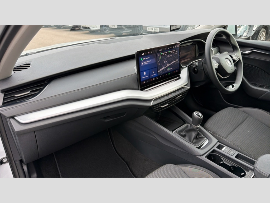 Skoda Octavia 1.5 TSI SE Technology 5dr 1x USB Typc C port in rear view mirror, 4x USB Type C ports - 2x in front centre console and 2x in rear (45W), Driver fatigue sensor, eCall emergency system, Electro-mechanical power steering, Front and rear parking sensors with manoeuvre assist, Front assist system, Traffic sign recognition, Turn Assist, Virtual Cockpit - 10.25" digital display, Voice control system, Wireless charging (15W) with cooling function, Wireless SmartLink for Apple CarPlay and Android Auto, 13" touchscreen display with navigation, 8 Speakers, DAB Digital radio, Aero front windscreen wipers with intermittent function, Auto dimming rear view mirror, Black window surrounds, Body colour bumpers, Body colour door mirrors and handles, Chrome grille surround, Chrome strip in lower front bumper, Electric front and rear windows, Heated rear windscreen, High level third brake light, Ice scraper in fuel cap, LED daytime running lights, LED Headlights, Manually operated boot, Rain and light sensors, Rear fog light on one side, Rear side wing doors, 12 volt socket in boot, 3 rear headrests, 3 seat bench in 2nd row, 4 foldable roof handles, Dual zone air conditioning, Front head restraints, Heated front seats, Illuminated glovebox, Interior door handles in dark chrome, Jumbo Box storage, Luggage compartment lighting x2 lights, Parcel shelf - folding, Single front passenger seat, Steering wheel in black leather with black stitching, Storage compartments in left and right of boot, Sun visors with mirror for driver, Sunglasses storage, Ticket holder, Umbrella in door panel, Unsplit rear bench seat, split folding backrest with centre armrest with cupholder, 3x3 point rear seat belts, Alarm with interior monitoring, tilt sensor and back up horn, Curtain airbags and front side airbags, Driver and front passenger airbags, Drivers knee airbag, Electronic parking brake, ESC including ABS, EBV, MSR, ASR, EDS, HBA, DSR, Front central airbag, Hill hold assist, ISOFIX on front passenger seat and outer rear seats, Manual rear child locks, Passenger airbag deactivate switch, Three point seat belts in front and rear, Two tone horn, Tyre pressure monitor, Visual and acoustic seat belt reminder, Warning reflectors in front door, Anti-theft wheel bolts, Keyless start/stop, Remote central locking