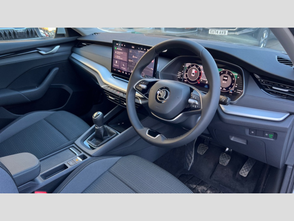 Skoda Octavia 1.5 TSI SE Technology 5dr 1x USB Typc C port in rear view mirror, 4x USB Type C ports - 2x in front centre console and 2x in rear (45W), Driver fatigue sensor, eCall emergency system, Electro-mechanical power steering, Front and rear parking sensors with manoeuvre assist, Front assist system, Traffic sign recognition, Turn Assist, Virtual Cockpit - 10.25" digital display, Voice control system, Wireless charging (15W) with cooling function, Wireless SmartLink for Apple CarPlay and Android Auto, 13" touchscreen display with navigation, 8 Speakers, DAB Digital radio, Aero front windscreen wipers with intermittent function, Auto dimming rear view mirror, Black window surrounds, Body colour bumpers, Body colour door mirrors and handles, Chrome grille surround, Chrome strip in lower front bumper, Electric front and rear windows, Heated rear windscreen, High level third brake light, Ice scraper in fuel cap, LED daytime running lights, LED Headlights, Manually operated boot, Rain and light sensors, Rear fog light on one side, Rear side wing doors, 12 volt socket in boot, 3 rear headrests, 3 seat bench in 2nd row, 4 foldable roof handles, Dual zone air conditioning, Front head restraints, Heated front seats, Illuminated glovebox, Interior door handles in dark chrome, Jumbo Box storage, Luggage compartment lighting x2 lights, Parcel shelf - folding, Single front passenger seat, Steering wheel in black leather with black stitching, Storage compartments in left and right of boot, Sun visors with mirror for driver, Sunglasses storage, Ticket holder, Umbrella in door panel, Unsplit rear bench seat, split folding backrest with centre armrest with cupholder, 3x3 point rear seat belts, Alarm with interior monitoring, tilt sensor and back up horn, Curtain airbags and front side airbags, Driver and front passenger airbags, Drivers knee airbag, Electronic parking brake, ESC including ABS, EBV, MSR, ASR, EDS, HBA, DSR, Front central airbag, Hill hold assist, ISOFIX on front passenger seat and outer rear seats, Manual rear child locks, Passenger airbag deactivate switch, Three point seat belts in front and rear, Two tone horn, Tyre pressure monitor, Visual and acoustic seat belt reminder, Warning reflectors in front door, Anti-theft wheel bolts, Keyless start/stop, Remote central locking