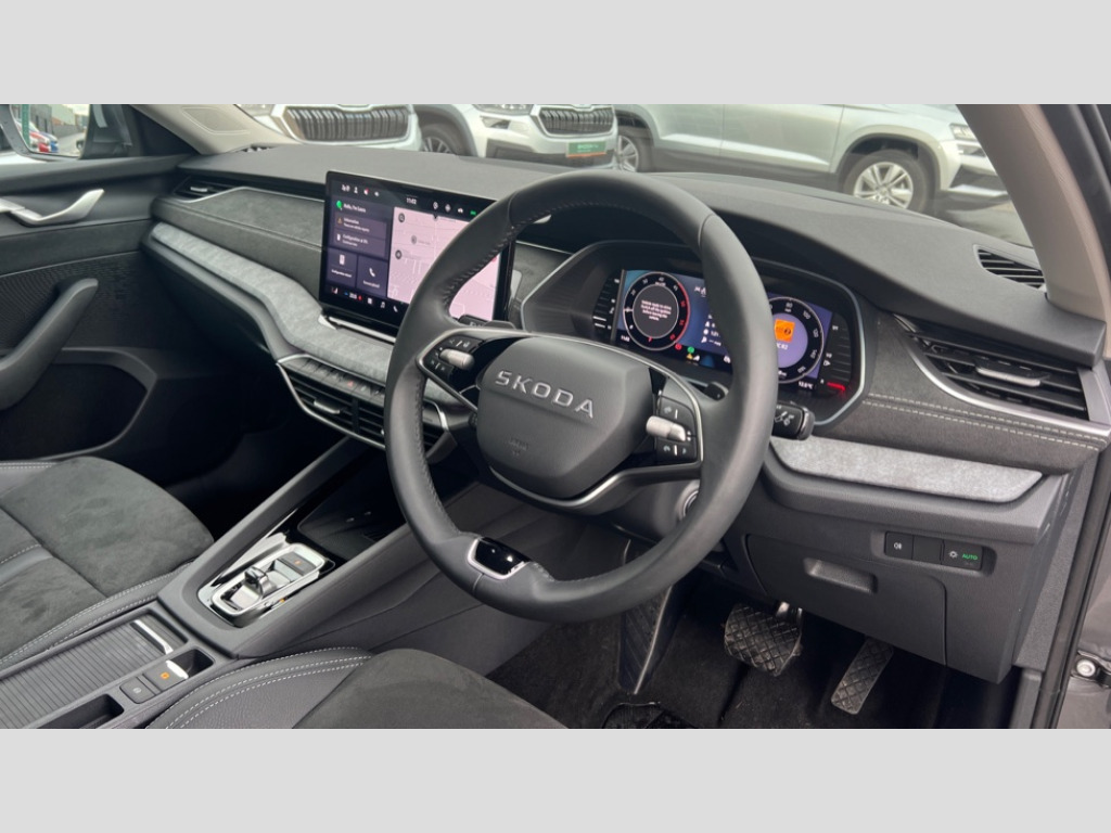 Skoda Octavia 2.0 TDI 150 SE L 5dr DSG 1x USB Typc C port in rear view mirror, 4x USB Type C ports - 2x in front centre console and 2x in rear (45W), Drive mode selection, Driver fatigue sensor, eCall emergency system, Electro-mechanical power steering, Front assist system, Traffic jam assist, Traffic sign recognition, Turn Assist, Virtual Cockpit - 10.25" digital display, Voice control system, Wireless charging (15W) with cooling function, Wireless SmartLink for Apple CarPlay and Android Auto, 13" touchscreen display with navigation, DAB Digital radio, Aero front windscreen wipers with intermittent function, Auto dimming rear view mirror, Body colour bumpers, Body colour door mirrors and handles, Chrome grille surround, Chrome strip in lower front bumper, Chrome window surrounds, Electric front and rear windows, Heated rear windscreen, High level third brake light, Ice scraper in fuel cap, LED daytime running lights, LED Headlights, Logo projection in front doors, Rain and light sensors, Rear fog light on one side, Rear privacy glass, Rear side wing doors, 12 volt socket in boot, 3 rear headrests, 3 seat bench in 2nd row, 4 foldable roof handles, Boot net programme, Electric auxiliary air heater, Front head restraints, Heated front seats, Illuminated glovebox, Interior door handles in dark chrome, Jumbo Box storage, Luggage compartment lighting x2 lights, Mechanical rear seat release from boot, Parcel shelf - folding, Single front passenger seat, Steering wheel in black leather with black stitching, Storage compartments in left and right of boot, Sun visors with mirrors, Sunglasses storage, Ticket holder, Umbrella in door panel, Unsplit rear bench seat, split folding backrest with centre armrest with cupholder, Comfort package - Octavia, 3x3 point rear seat belts, Alarm with interior monitoring, tilt sensor and back up horn, Curtain airbags and front side airbags, Driver and front passenger airbags, Drivers knee airbag, Electronic parking brake, ESC including ABS, EBV, MSR, ASR, EDS, HBA, DSR, Front central airbag, Hill hold assist, ISOFIX on front passenger seat and outer rear seats, Passenger airbag deactivate switch, Three point seat belts in front and rear, Two tone horn, Tyre pressure monitor, Visual and acoustic seat belt reminder, Warning reflectors in front door, Anti-theft wheel bolts, Keyless start/stop, Remote central locking, Chrome air vent surrounds
