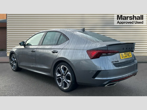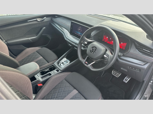 Skoda Octavia 2.0 TDI 200 vRS 5dr DSG 1x USB Type C port in rear view mirror (charging only), 2x USB Type C ports in rear of front centre armrest (charging only), Bluetooth system, Columbus satellite navigation with 10" touchscreen display, Driver fatigue sensor, eCall emergency system, Front and rear parking sensors with manoeuvre assist, Front assist system, Progressive dynamic steering, Speed limiter, Turn Assist, Virtual Cockpit - 10.25" digital display, Virtual pedal with electrically operated boot door (Rear LED lights (high functionality), dynamic indicators, Voice control system, Wireless SmartLink for Apple Car Play, Front and rear stabilizers, 2x USB Type C ports (for charging and data transfer), 8 Speakers, DAB Digital radio, Aero front windscreen wipers with intermittent function, Auto dimming rear view mirror, Body colour door handles, Chrome exhaust tailpipes, Door sills with vRS logo, Electric front and rear windows, Exterior gloss black sports styling including front grille, side strip, window surrounds, door mirror and badging, Full LED Matrix headlights with AFS, rear LED lights (high functionality) and dynamic indicators and cornering front fog lights, Headlight washers, Heated rear windscreen, High level third brake light, Ice scraper in fuel cap, LED daytime running lights, Rain and light sensors, Rear fog light on one side, Rear privacy glass, Rear side wing doors, vRS bumpers and lip spoiler, 3 rear headrests, 3 seat bench in 2nd row, 4 foldable roof handles, Aluminium pedals, Black headlining, Black microsuede padded dash panel with red contrast stitching, Chrome inner door handles, Front centre armrest, Front head restraints, Heated front seats, Illuminated glovebox, Leather trimmed gearshift lever, Luggage compartment lighting x1 light, Mechanical rear seat release, Parcel shelf - folding, Single front passenger seat, Sunglasses storage, Textile floor mat set, Three spoke leather sports multifunction steering wheel with paddles, Ticket holder, Umbrella in door panel, Unsplit rear bench seat and split folding backrest, LED interior light pack - Octavia, 3 point front/outer rear seatbelts+pre-tensioners, Alarm with interior monitoring, tilt sensor and back up horn, Automatic door unlocking in case of crash, Automatic fuel cut off in case of crash, Automatic warning lights in case of emergency braking, Curtain airbags and front side airbags, Driver and front passenger airbags, Drivers knee airbag, Electronic parking brake, ESC including ABS, EBV, MSR, ASR, EDS, HBA, DSR, Front and rear disc brakes, Front central airbag, Hill hold control, Hill start assist, ISOFIX on front passenger seat and outer rear seats, Manual rear child locks, Passenger airbag deactivate switch, Pro active services, Red brake calipers, Two tone horn, Tyre pressure monitor, Visual and acoustic seat belt reminder, Warning reflectors in front door, Door locks with immobiliser, Keyless entry and start/stop including rear doors, Remote central locking, Carbon optic decorative inserts, Gloss black air vent surrounds, 19" Altair anthracite alloy wheels